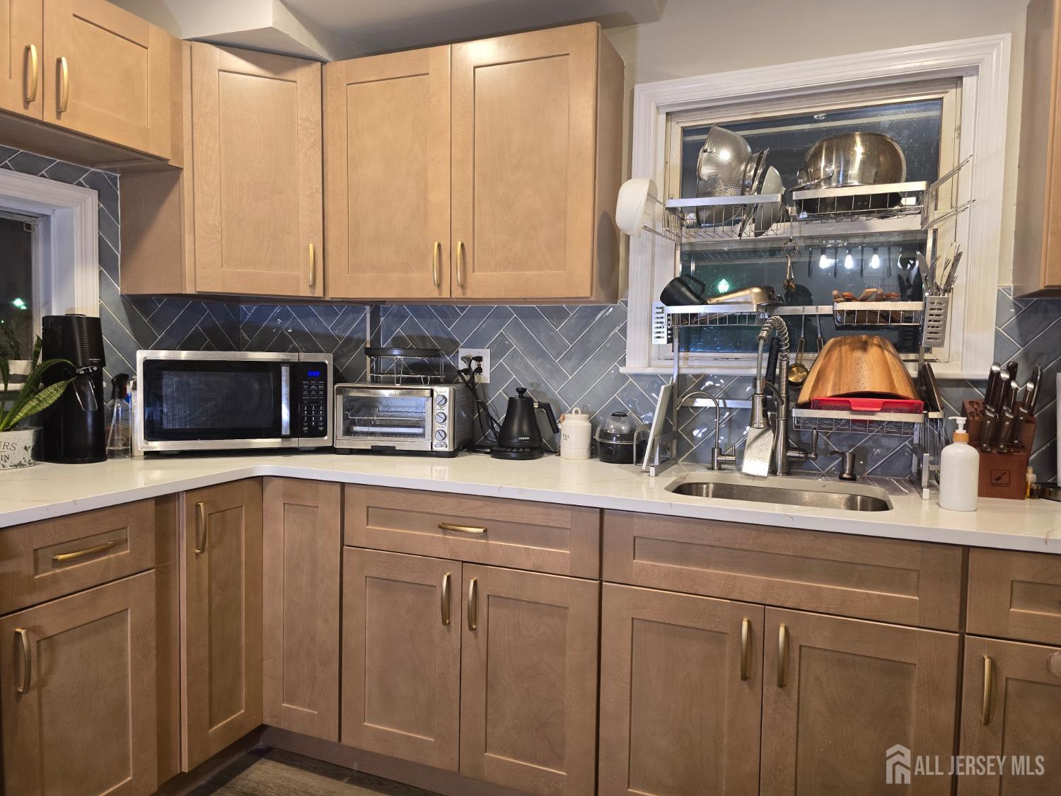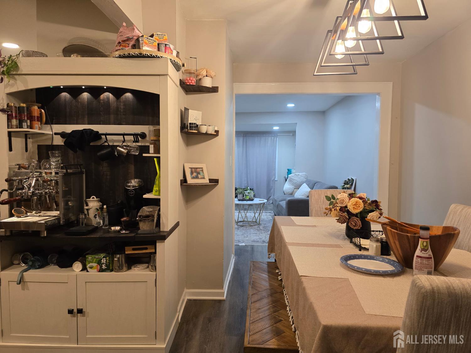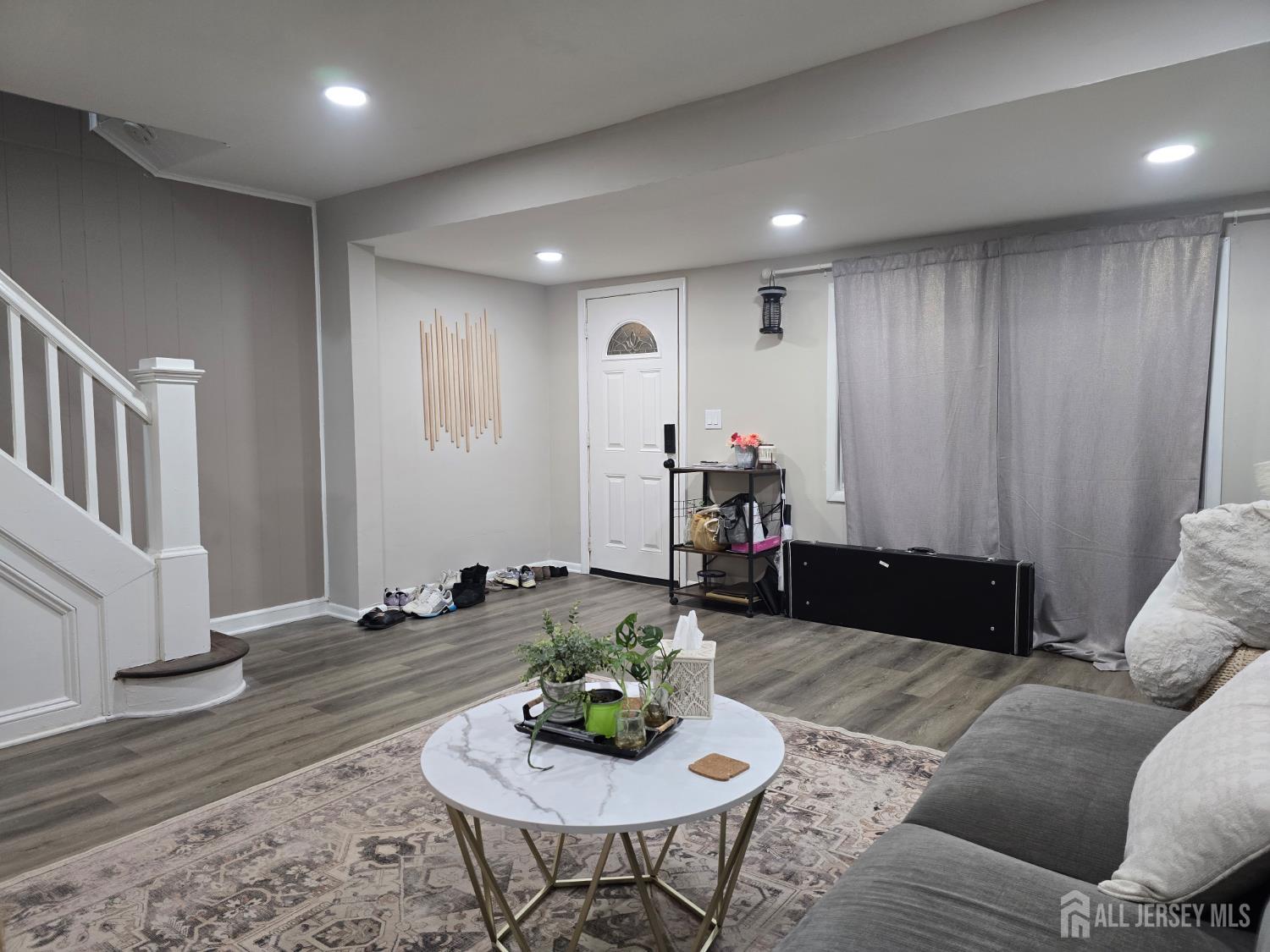 Beautiful, renovated, whole home on a corner lot for rent! Very close to NJtransit bus to NY. This property's 1st floor features: a large LR upon entry perfect for entertaining, and relaxing. The open floor plan continues into either: the formal DR, or brand new kitchen with all new cabinetry, quartz countertops, gas oven, newer refrigerator and *reverse osmosis filtration for nice, clean water. Convenient half bathroom as you enter the kitchen. The dining room features a back door to a small deck leading down to the backyard for all your BBQing and outside enjoyment. The 2nd floor features an incredible full bathroom with stand-up shower, and 2 bedrooms w/ hardwood floors; the larger is a nice size with ample closet space. As you take the stairs from the 2nd floor up to the 3rd, there are 2 newly renovated rooms which you may use as a separate, private 3rd bedroom, and an additional finished space/room for storage etc. The basement is unfinished and also may be used for some storage space. CJMLS 2607997R