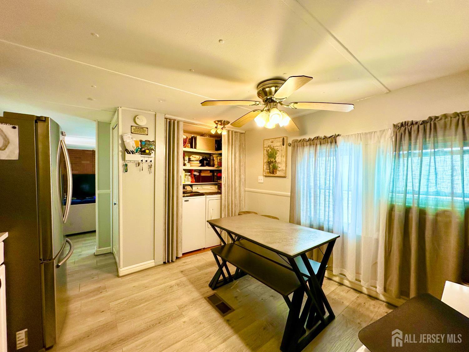 Row P,TrLr 6. Charming & well maintained 2b,1b mobile home, featuring modern updates & move in-ready comfort. Updated kitchen w/EIK & functional layout, newer stainless steel refrigerator(1 y/old). Newer laminate wood fl adds warmth & style throughout. Central Air plus 2/newer WiFi enabled window units w/ dehumidifier, & smart WiFi thermostat for efficient climate control. Both beds feature wall to wall closets for generous storage, plus a coat closet at the entrance & a wall to wall closet in the bathroom. Laundry in unit, washer & dryer inc. Enjoy outdoor living in the enclosed porch with newer ceiling & side panels(2025). Affordable, updated living, convenient location, shopping, schools, transportation, major highways. Exit 12 of the Turnpike,& an EZ commute to NYC w/Bus #16 stop nearby. Buyer subject to park approval. Monthly HOA$795 incl: water/sewer/trash/taxes/community maintenance. Applicants must have a minimum 650 credit score & verifiable income equal to at least 3x the monthly HOA.Tower Trailer:(609) 267-7750 for more info! CJMLS 2610413R