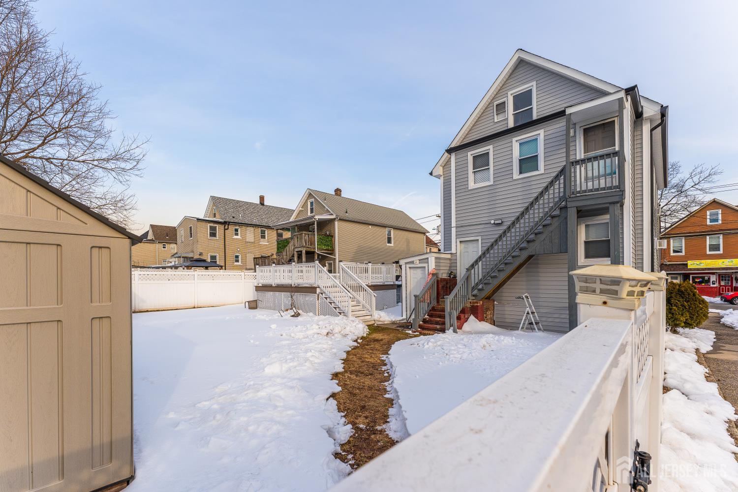 Well maintained multi family home in a desirable Carteret location, situated on a fenced corner lot with generous outdoor space and approximately 2025 minutes to NYC. Roof and siding replaced in 2025. Unit 1 offers 1 bedroom, 1 bath, living and dining areas with backyard access; Unit 2 features 2 bedrooms, 1 bath, living and dining areas, porch, and backyard access. The home also includes a finished basement with walkout access and a finished attic, providing additional finished areas. Spacious backyard with deck and above-ground pool, ideal for entertaining. Great opportunity for owner occupants or investors. CJMLS 2610954R