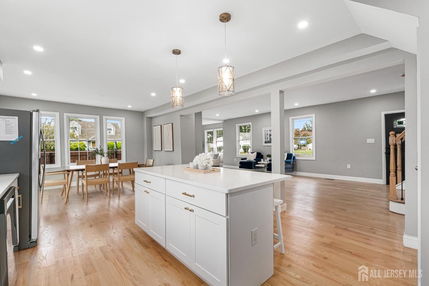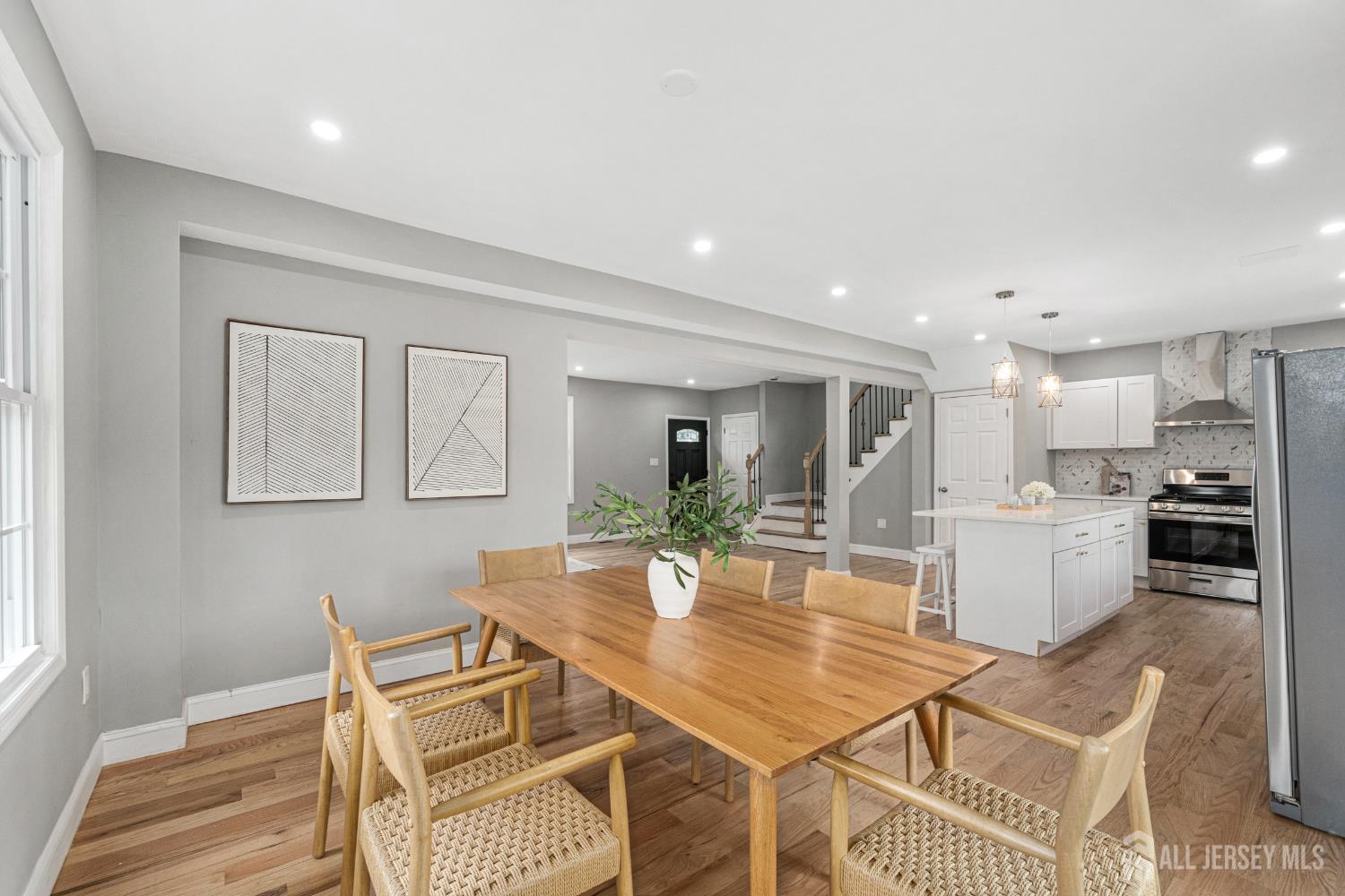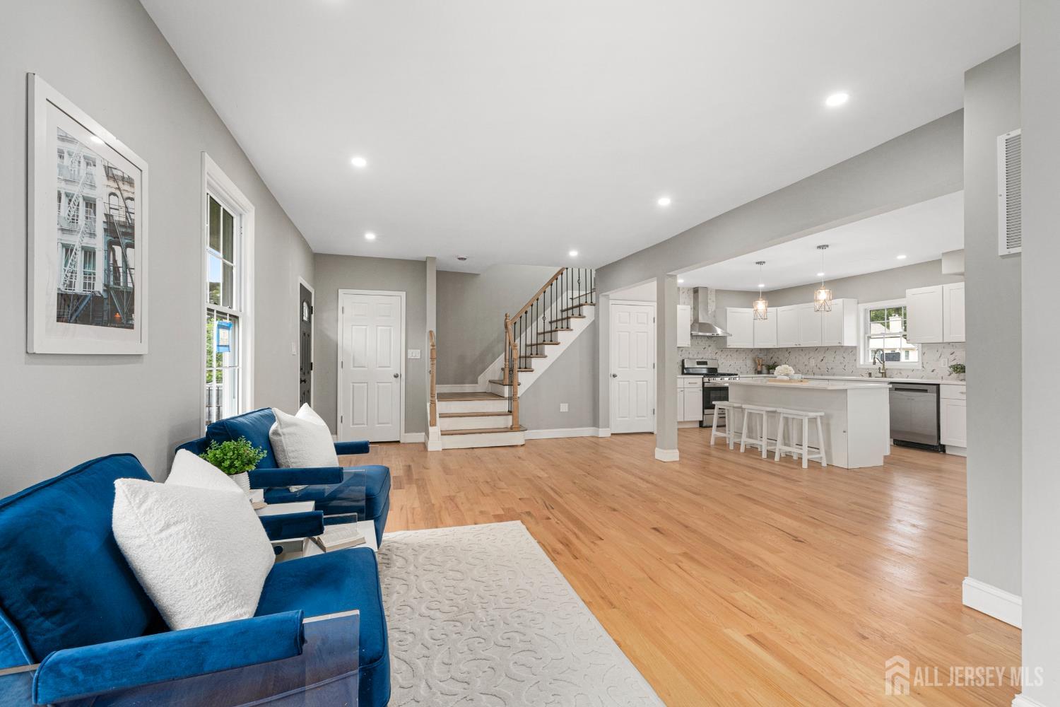 Stunningly redesigned 4-bedroom, 2.5-bath home in Colonia showcasing modern elegance and timeless style. The open-concept main level impresses with wide-plank hardwood floors, designer lighting, and a chef's kitchen featuring quartz counters, custom cabinetry, and premium stainless appliances. The sunlit dining area flows seamlessly for entertaining. A serene primary suite with vaulted ceilings and spa-inspired bath creates a true retreat. Additional bedrooms offer flexible use for office, guest, or creative spaces. Sleek baths, curated finishes, and thoughtful details elevate every room. Outside, enjoy a detached two-car garage, manicured corner lot, and private fenced yard perfect for gatherings. A rare turnkey opportunity blending sophistication with everyday comfort. CJMLS 2604960R