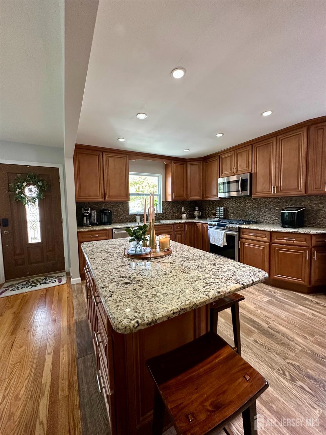 A must-see! Welcome home to this move-in ready 3-bedroom, 2-bath ranch, recently renovated and located in the heart of Colonia. As soon as you walk in, you'll love the open-concept layout and the natural light that fills the spacious living room. This home features hardwood floors throughout, a newer kitchen with granite countertops, a beautiful center island, plenty of cabinet space, and ample storage throughout. Three generously sized bedrooms and a full bathroom complete the first floor. The fully finished basement offers a second kitchen, a large family or recreation room, a full bathroom, a laundry area, and a storage room. Step outside to a large fenced backyard that feels like your own private park. The paved driveway accommodates up to four cars. Ideally located near shopping, NYC transportation, and major highways, this home truly has it all. Come see everything it has to offer! CJMLS 2606257R