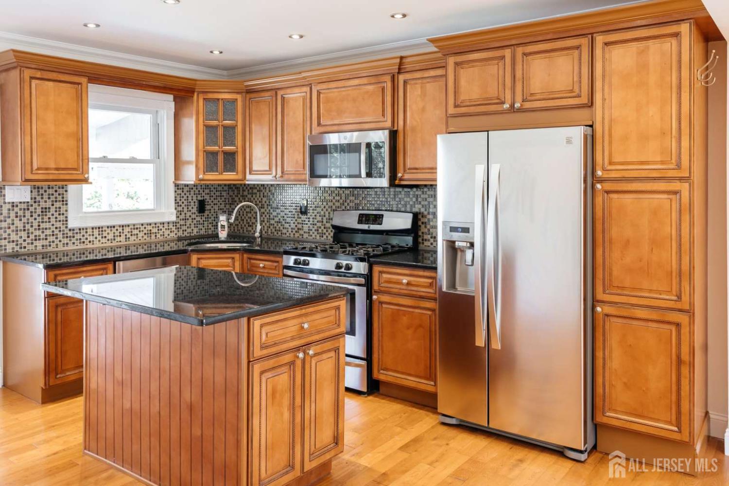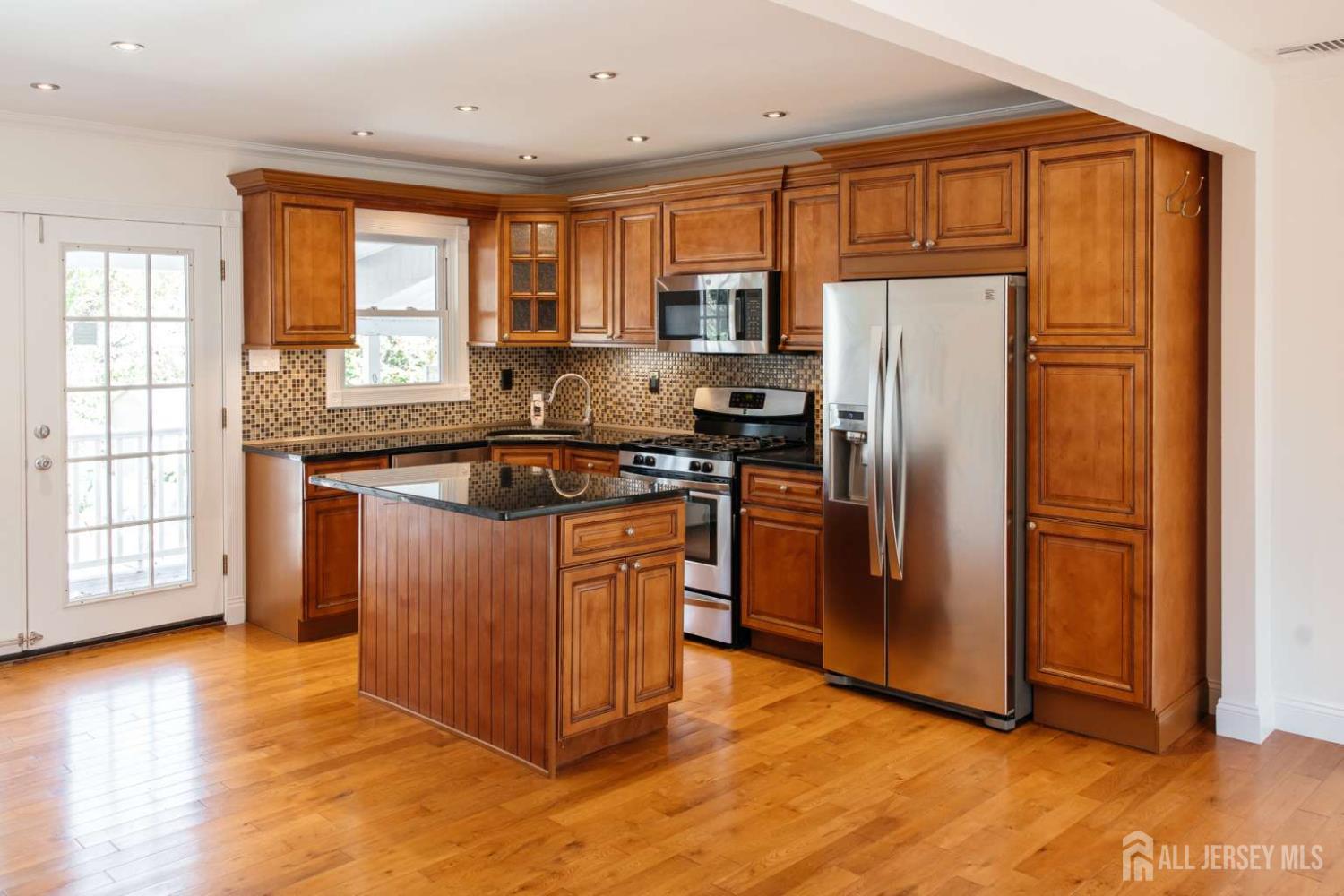 Welcome to this stunning 4-bedroom, 3-bathroom ranch home situated on a private, level 0.22-acre lot in a highly desirable neighborhood. This meticulously maintained residence offers one level living at its finest, with thoughtful updates throughout that blend modern convenience with timeless appeal. Step inside to discover beautiful wood flooring that flows seamlessly through the main living spaces, complemented by an abundance of natural light that creates a warm and inviting atmosphere. The updated kitchen is a true highlight, featuring sleek granite countertops and modern finishes that make meal preparation a pleasure. Strategically placed artificial lighting enhances the home's bright and airy feel throughout the day and evening. The bathrooms have been beautifully renovated with contemporary fixtures and stylish finishes, providing spa-like comfort. Open floor plan. The finished wlk-out basement provides versatile space, ideal for recreation, a home office, or additional living quarters. With direct access to the backyard and tons of storage throughout, you'll never run short on space for all your belongings and hobbies. The private, level lot provides excellent outdoor potential for entertaining, gardening, or simply enjoying the peaceful surroundings. With its desirable location, move-in ready condition, and thoughtful updates, this ranch home offers the perfect combination of style, functionality, and comfort. Don't miss this opportunity to make it yours. Multilevel deck, and new stone, patio Detach garage in the backyard. CJMLS 2606570R