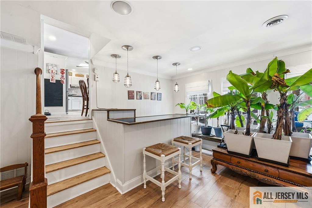 Welcome to 15 New Dover Avenue, a bright, stylish, and impressively spacious split- colonial home offering 4 bedrooms, a modern home office, 3 full baths, and over 2,500 sq ft of thoughtfully updated living space. Designed for comfort, flexibility, and effortless entertaining, this home blends modern upgrades with a warm, functional layout ideal for today's lifestyle. The main level features a large family room with wet bar, surround sound wiring and a wood-burning fireplace, a private bedroom and a dedicated modern home office, creating the perfect setup for guests, multigenerational living, or remote work. Upstairs, you'll find three additional bedrooms, including a serene primary suite with an updated ensuite bathroom and a large walk-in closet outfitted with custom cabinetry. All bathrooms throughout the home feature sleek LED mirrors for a clean, contemporary finish. Sunlight fills every room, highlighting refinished hardwood floors, generous storage, and recessed lighting that enhance the home's open, airy atmosphere. The updated kitchen offers stainless steel appliances, a large pantry, and abundant cabinetry. The basement provides excellent storage, laundry space, a workshop area, and built-in cabinetry for organization. Comfort and efficiency shine with a new HVAC system, owned solar panels, and a whole-house water filtration system. The solar system generates approximately 10 SRECs per year, providing an estimated $2,400 in annual value. Additional upgrades include a new bathroom vanity, new washer and dryer, and two fireplacesone wood- burning and one electricfor year-round enjoyment. Step outside to your private backyard retreat, designed for relaxation and entertaining. Enjoy an in-ground saltwater pool with all-new equipment, including a new pump and extensive new pavers surrounding the pool deck. Built-in umbrella anchors make it easy to create shaded lounging zones, and the expansive layout comfortably fits eight loungers plus additional outdoor furniture. Off the deck, unwind in your jacuzzi/hot tub beneath a pergola, creating a true spa-like escape. A deck with a gazebo overlooking the tranquil yard completes this outdoor oasis. A one-car attached garage includes built-in storage cabinets, and a deep driveway adds everyday convenience for 4 vehicles. Located in a peaceful neighborhood just minutes from Metropark, Rahway, and Woodbridge train stations, major highways, shopping and public transportation, this home offers exceptional commuter access without sacrificing tranquility. Beautifully maintained and thoughtfully upgraded, this Colonia home delivers the perfect balance of space, comfort, efficiency, and modern living. CJMLS 2661287M