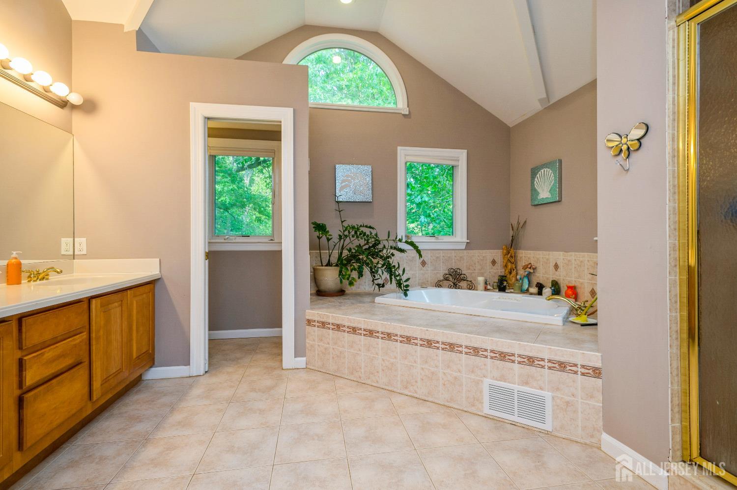 Immaculate 5 bed 4.5 bath east facing center hall colonial on a culdesac, bright & spacious floor plan, two story family room with gas fireplace, upgraded eatin kitchen with center island, granite countertops, tile backsplash, stainless steel appliances, inlaw suite on 1st floor, 3 car garage, great room above garage, luxurious master suite, master bath w double sink, jacuzzi tub and sauna, hallway overlooking family room, hardwood floors, skylight, recessed lights, 3zone AC & heat, full basement, deck, huge backyard, 13.5 acre lot. Close to major highways. CJMLS 2610309R