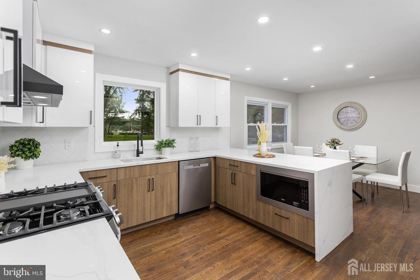 Available for short term 4-6 months. Renovated split with gorgeous finishes, new kitchen, baths, refinished and new flooring and lighting, public water and sewer, 2 car garage. Will consider option to buy. CJMLS 2605683R
