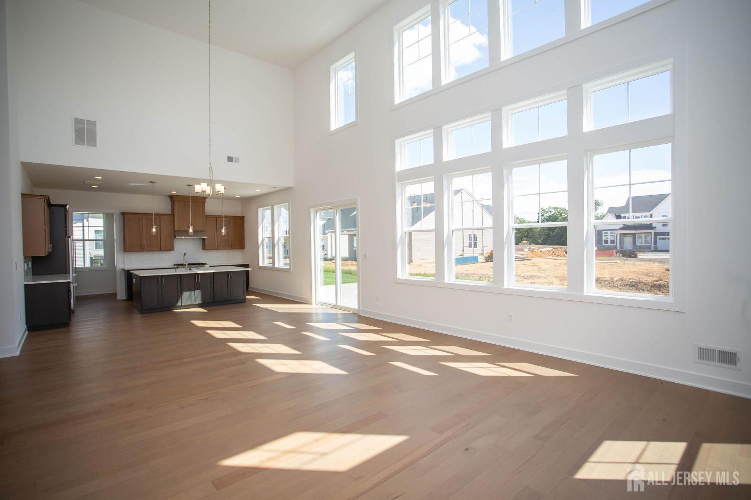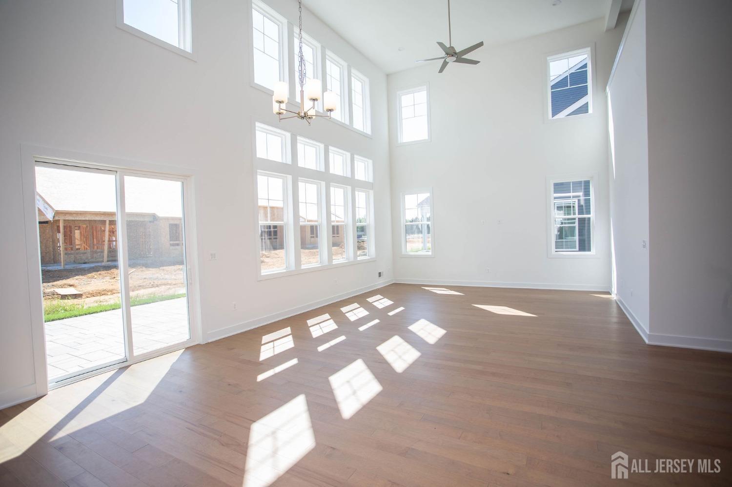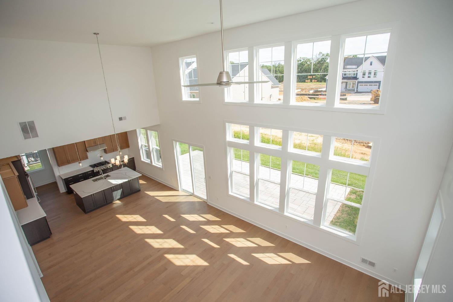 Upon entering, the extended foyer guides you towards the impressive two-story great room, seamlessly connecting to a bright casual dining area with access to the rear yard. The kitchen is a focal point of the home, expertly designed with a spacious center island including a breakfast bar, ample counter and cabinet space, a sizable pantry, and a versatile workspace to accommodate all your culinary needs. The primary bedroom suite exudes elegance and comfort, boasting an expansive closet and a charming primary bath complete with a dual-sink vanity, a luxurious shower with a seat, linen storage, and a private water closet. Secondary bedrooms, conveniently located off the foyer, feature roomy closets and share a hall full bath for added convenience. Also located off the extended foyer is a spacious flex room with double doors that could be used as a Library/Office. The first floor is rounded out with easily accessible laundry facilities and a convenient powder room. Upstairs, the expansive loft space offers flexibility to create additional living space tailored to your lifestyle, along with an additional bedroom and a full bath to accommodate guests or family members. Residents of this community will have access to an array of amenities, including a clubhouse with an outdoor pool and fitness center, as well as services such as snow removal and lawn care. Experience the epitome of luxury living by scheduling a tour of this beautiful home and discover the true meaning of upscale living in a vibrant 55+ community. CJMLS 2610593R