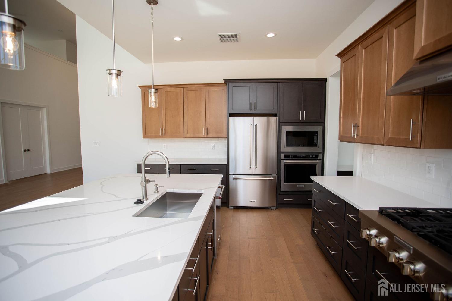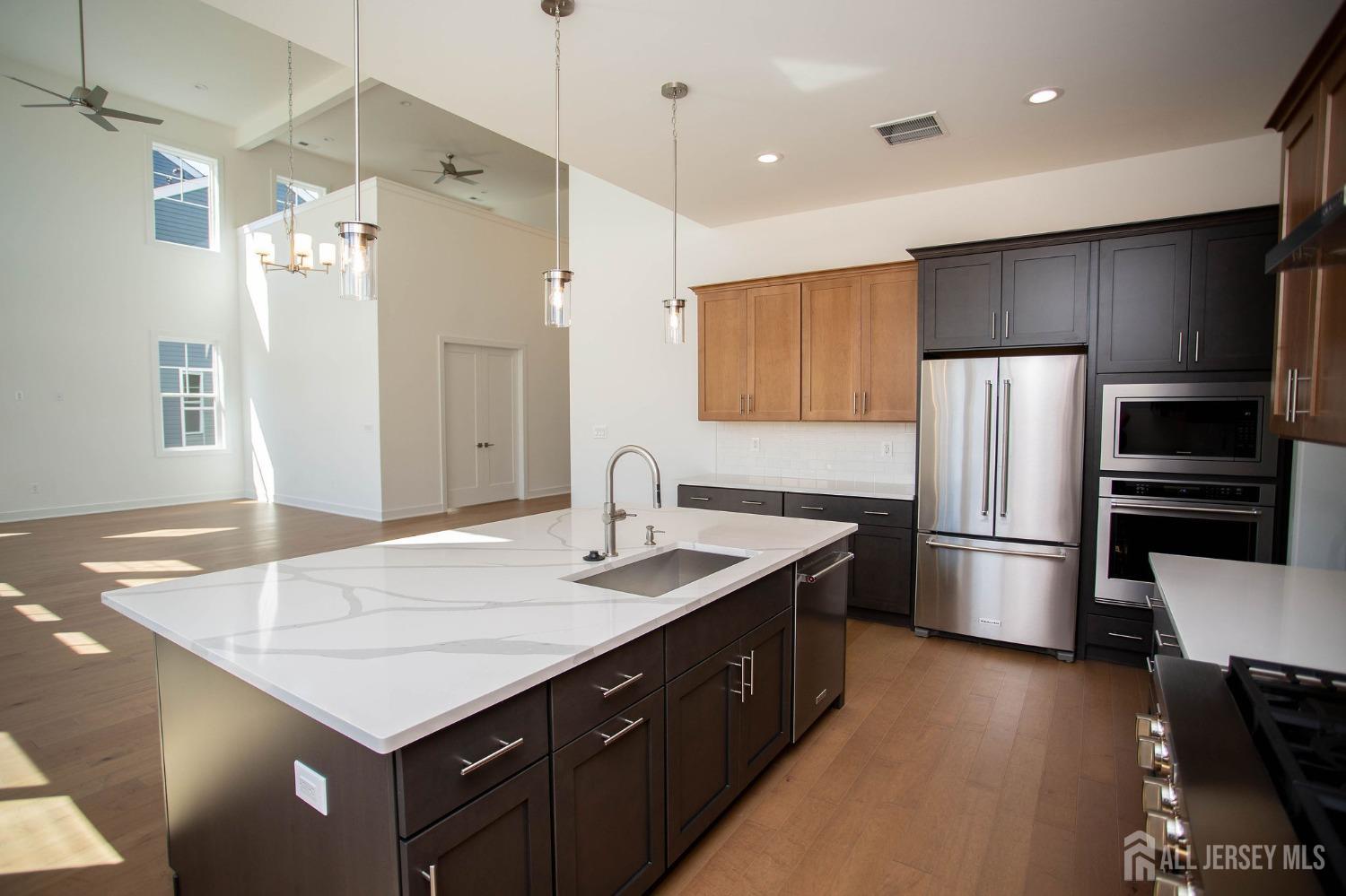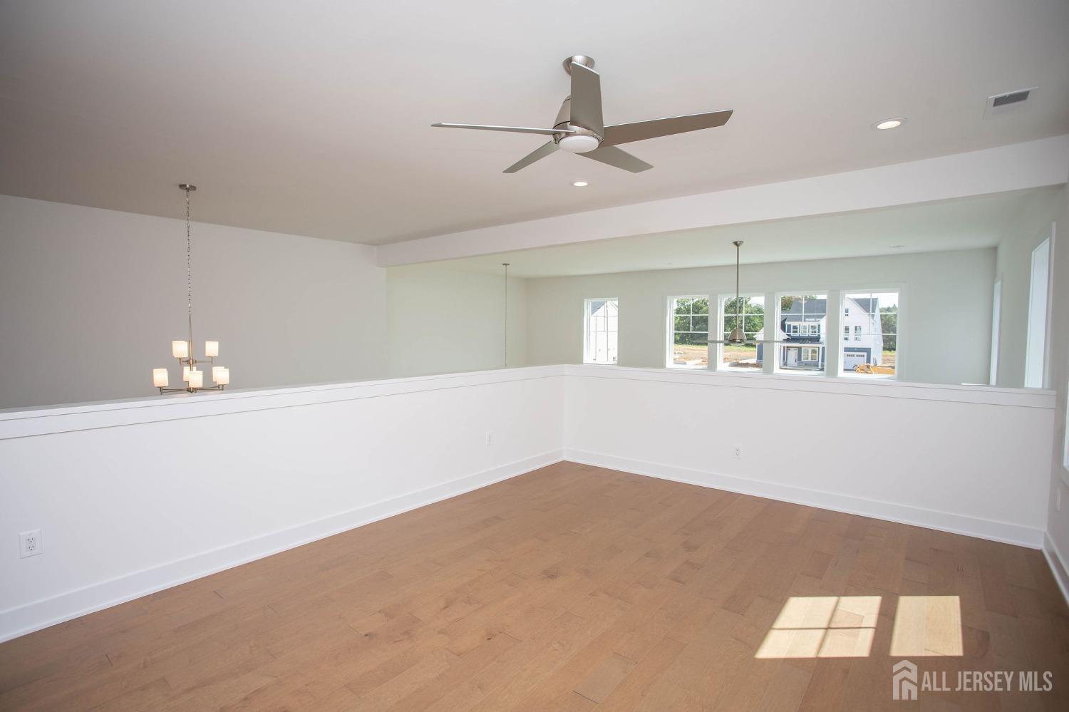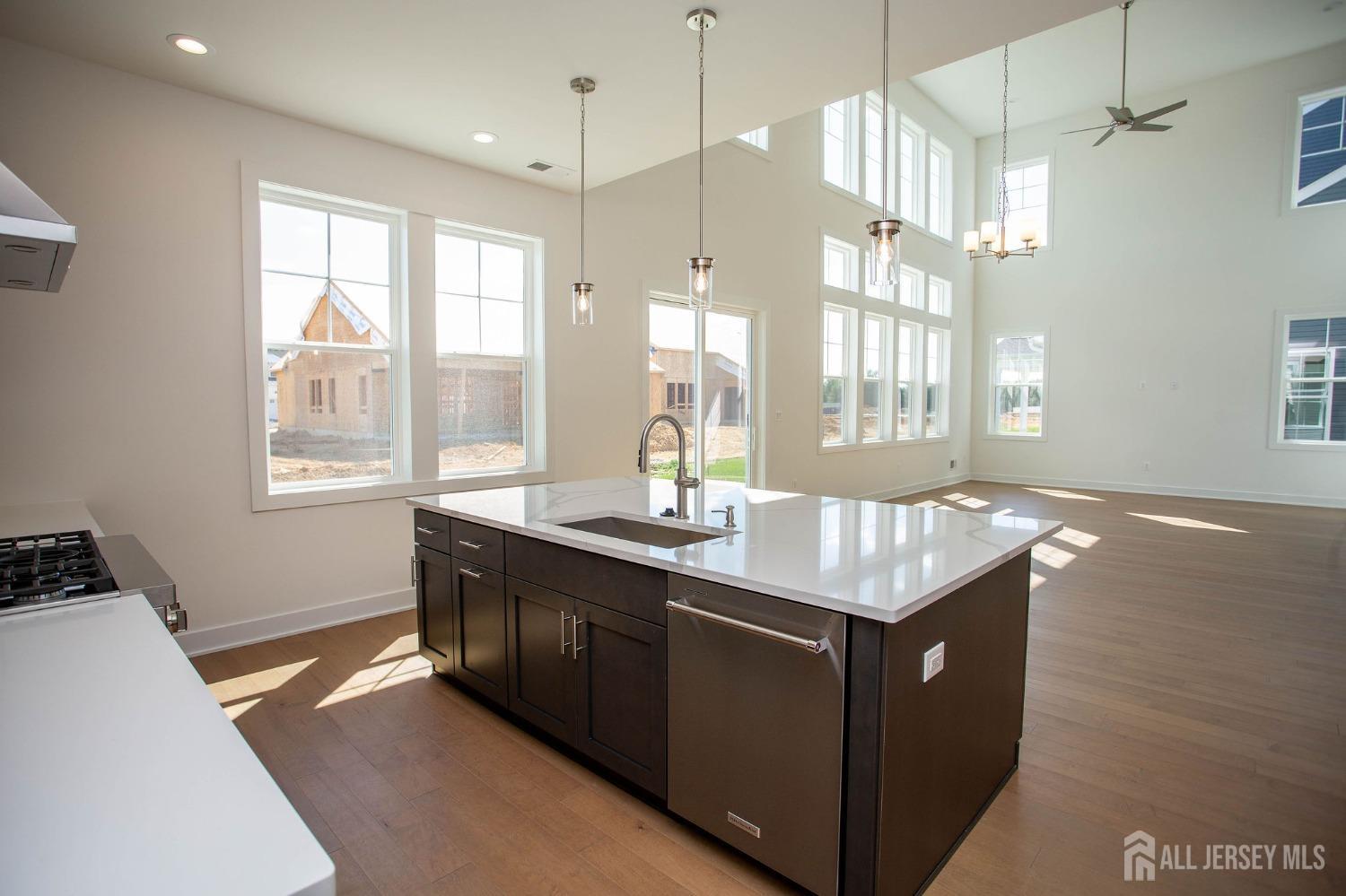 Upon entering, the extended foyer guides you towards the impressive two-story great room, seamlessly connecting to a bright casual dining area with access to the rear yard. The kitchen is a focal point of the home, expertly designed with a spacious center island including a breakfast bar, ample counter and cabinet space, a sizable pantry, and a versatile workspace to accommodate all your culinary needs. The primary bedroom suite exudes elegance and comfort, boasting an expansive closet and a charming primary bath complete with a dual-sink vanity, a luxurious shower with a seat, linen storage, and a private water closet. Secondary bedrooms, conveniently located off the foyer, feature roomy closets and share a hall full bath for added convenience. Also located off the extended foyer is a spacious flex room with double doors that could be used as a Library/Office. The first floor is rounded out with easily accessible laundry facilities and a convenient powder room. Upstairs, the expansive loft space offers flexibility to create additional living space tailored to your lifestyle, along with an additional bedroom and a full bath to accommodate guests or family members. Residents of this community will have access to an array of amenities, including a clubhouse with an outdoor pool and fitness center, as well as services such as snow removal and lawn care. Experience the epitome of luxury living by scheduling a tour of this beautiful home and discover the true meaning of upscale living in a vibrant 55+ community. CJMLS 2610593R
