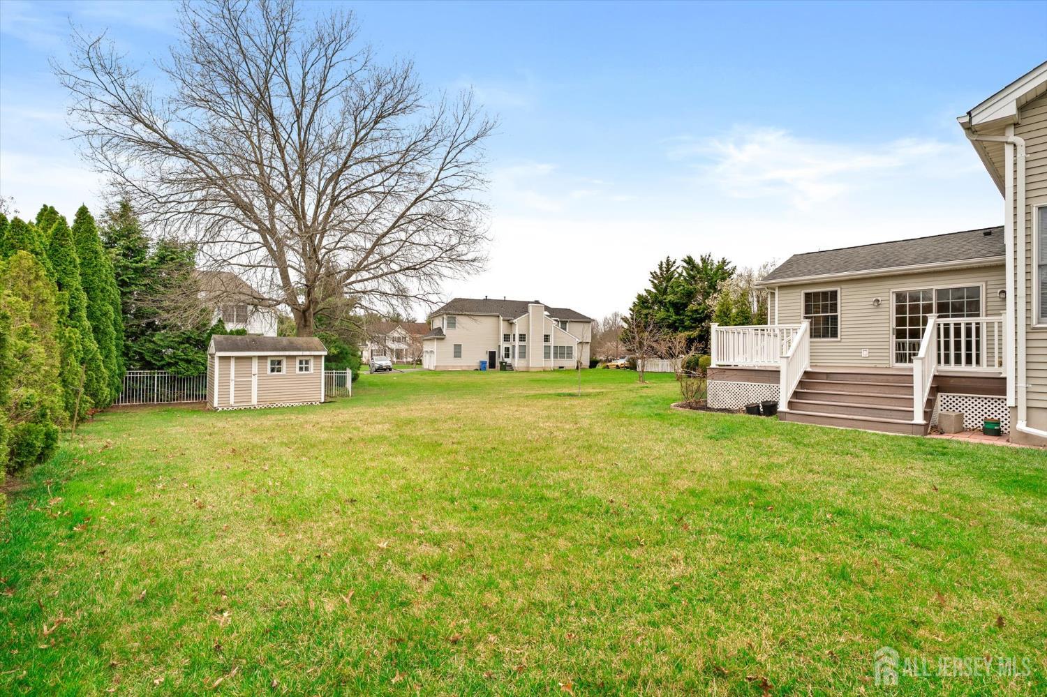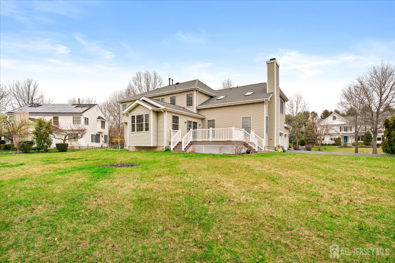 Welcome to this 5-bedroom, 3 full bath Center Hall Colonial in the heart of Cranbury. Upon entering you are greeted by a two-story foyer and immediately notice the functional layout of this home. There's a first-floor bedroom and full bath with shower stall, which works well for guests, a home office, or flexible living. To the right you will find an open concept living and dining rooms, as well as an oversized kitchen and family room that span the rear of the home. The 14x18ft bonus room in the back is a huge plus and can easily serve as a family room, playroom, or whatever fits your needs. The first floor boasts hardwood floors throughout, with ample windows and natural light. The kitchen has been updated with new quartz countertops, a double bowl sink, new cooktop, and dishwasher. Upstairs you will find a large primary suite with 2 walk-in closets and attached ensuite featuring double vanity, private room with walk-in shower and toilet, as well as a large soaking tub. The is floor is complete with 3 additional bedrooms with ample space, as well as a second full bathroom. The roof is roughly 1 year old and both the main level and upstairs hallway bathrooms were recently updated. There's a full unfinished basement with high ceilings, so plenty of potential if you want to finish it down the line or just keep it for storage. Out back, you'll find a nicely sized composite deck that's perfect for entertaining or relaxing. The home is also directly across from Heritage Park, which is a great bonus. Location is hard to beat, walkable to Cranbury School (K-8) and districting to Princeton High School, and just minutes from downtown Cranbury's shops and restaurants. Overall, it's a well-maintained home in a great location with meaningful updates and extra space that really sets it apart. Don't miss an opportunity to see it today! CJMLS 2613139R