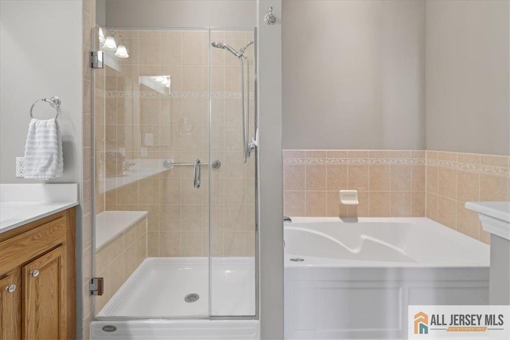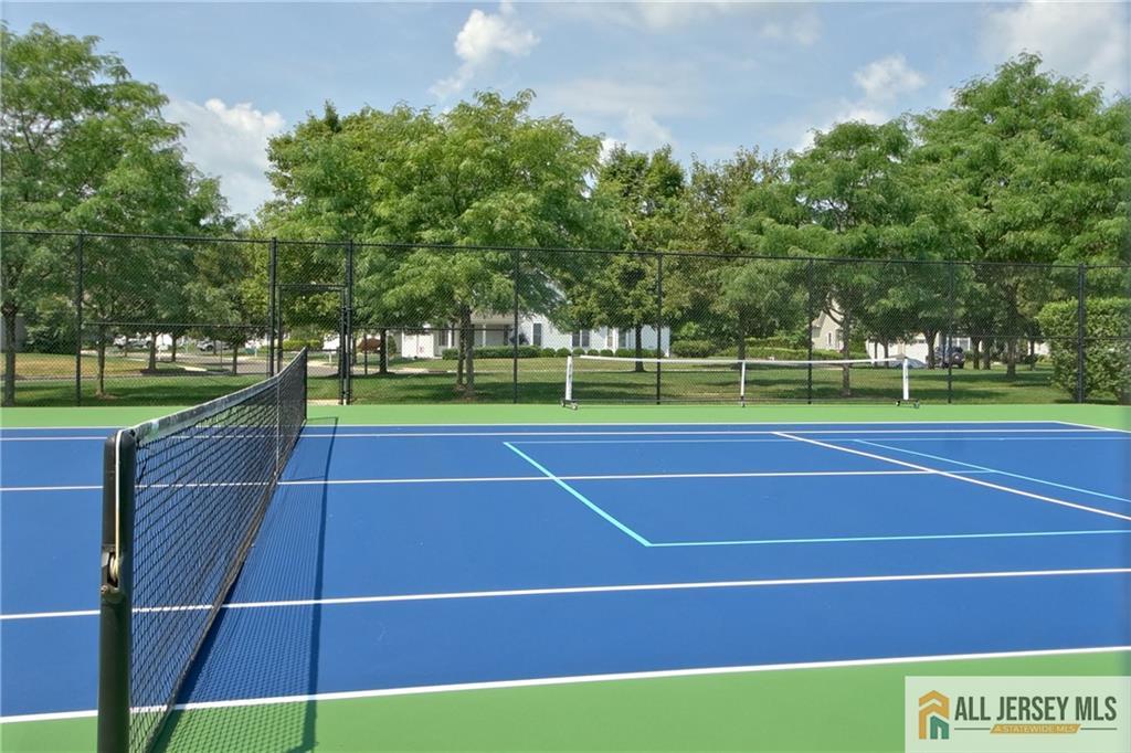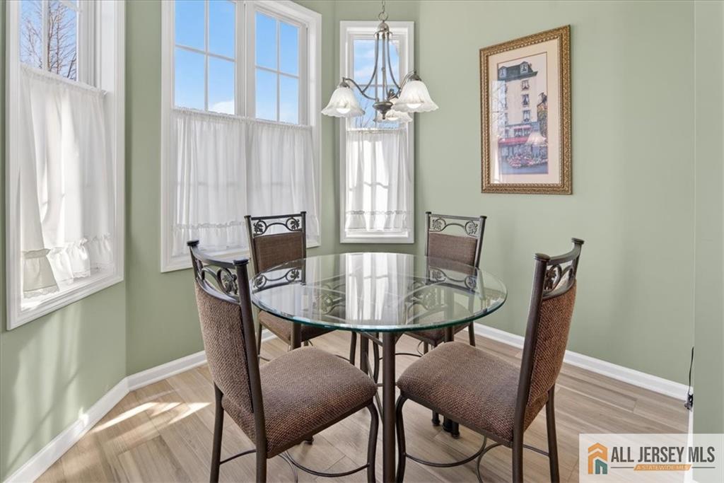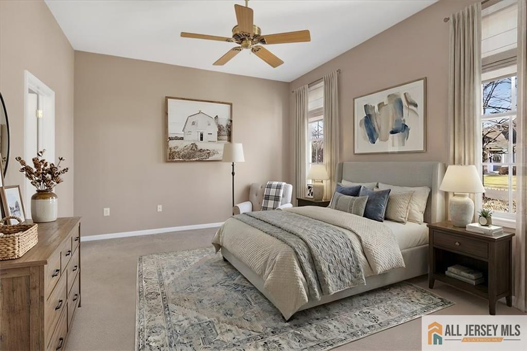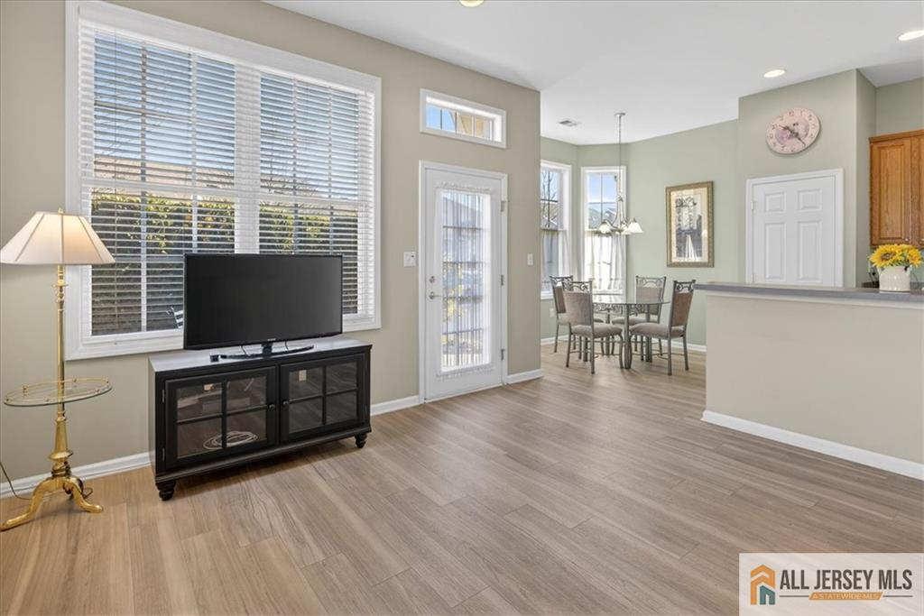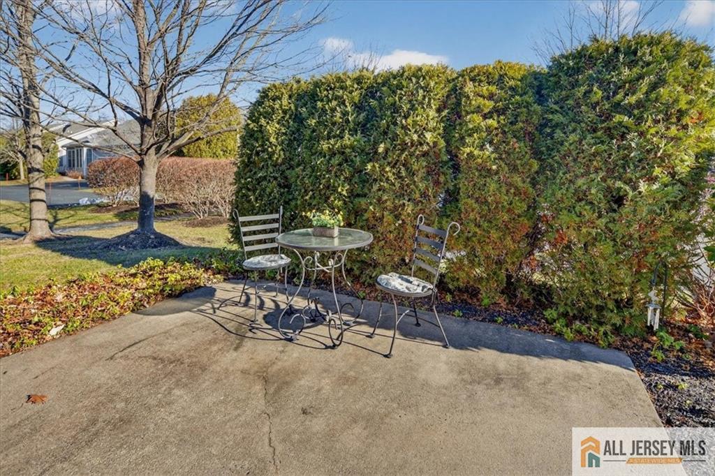 Welcome to this charming, well-maintained Drake model home in the desirable Four Seasons at Historic Cranbury adult community. Enjoy the inviting front porch and bright, open ranch layout with over 9-foot ceilings and a thoughtfully designed floor plan. This home features two bedrooms and two full baths, including a spacious primary suite with a walk-in closet and a private bath with double sinks, Corian countertops, a soaking tub, and a separate shower (with a frameless door). A second full bath, a dedicated laundry room with a utility sink, and an attached two-car garage add convenience. The eat-in kitchen boasts stainless steel appliances, a sunlit bay window, ample cabinetry, a pantry, generous counter space, a breakfast bar, and a kitchen nook. Hardwood floors highlight the dining room and foyer, while Pergo Extreme vinyl flooring (2024) enhances the kitchen, living room, and second bedroom. The primary suite is carpeted for comfort. Recent updates include a Bradford White hot water heater (2022), GE stove (2025), GE microwave oven (2025), GE refrigerator (2024), and LG washer and dryer (2022). Enjoy the backyard patio and outstanding community amenities, including a clubhouse, outdoor pool, fitness center, and tennis and pickleball courts. Conveniently located near Cranbury's historic downtown, parks, Brainerd Lake, dining, major highways, and public transportation. Schedule your private showing today and experience the Four Seasons at Cranbury lifestyle. CJMLS 2661004M