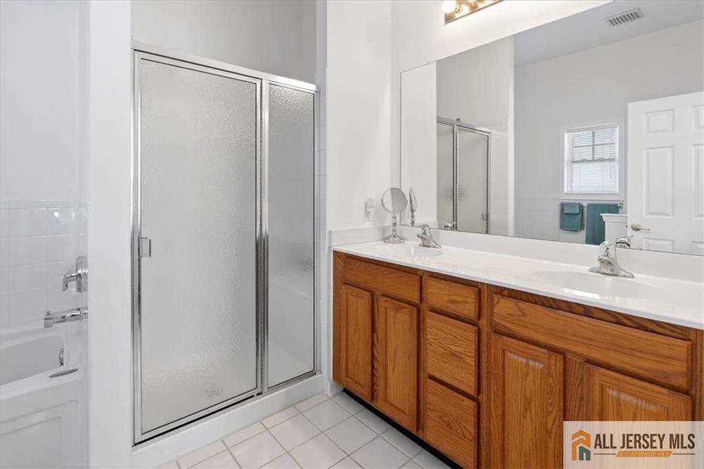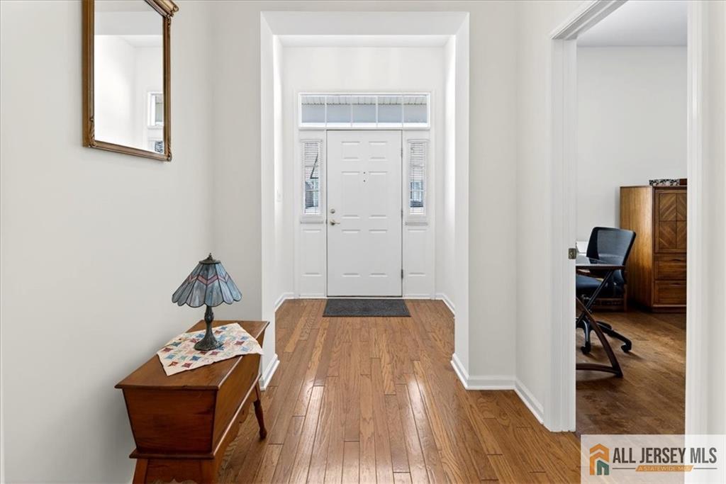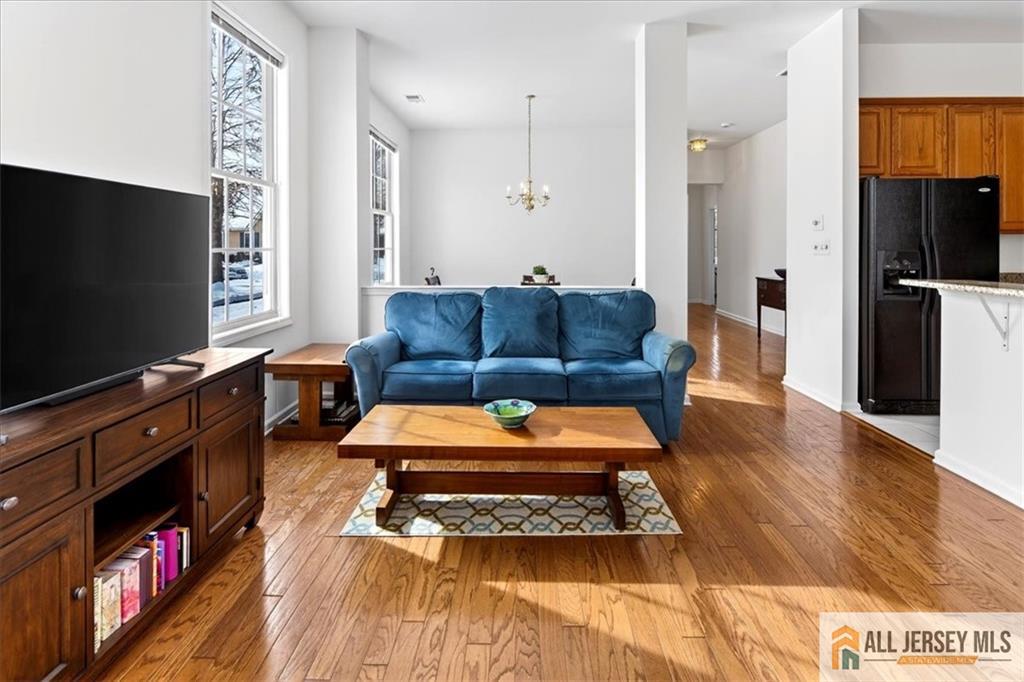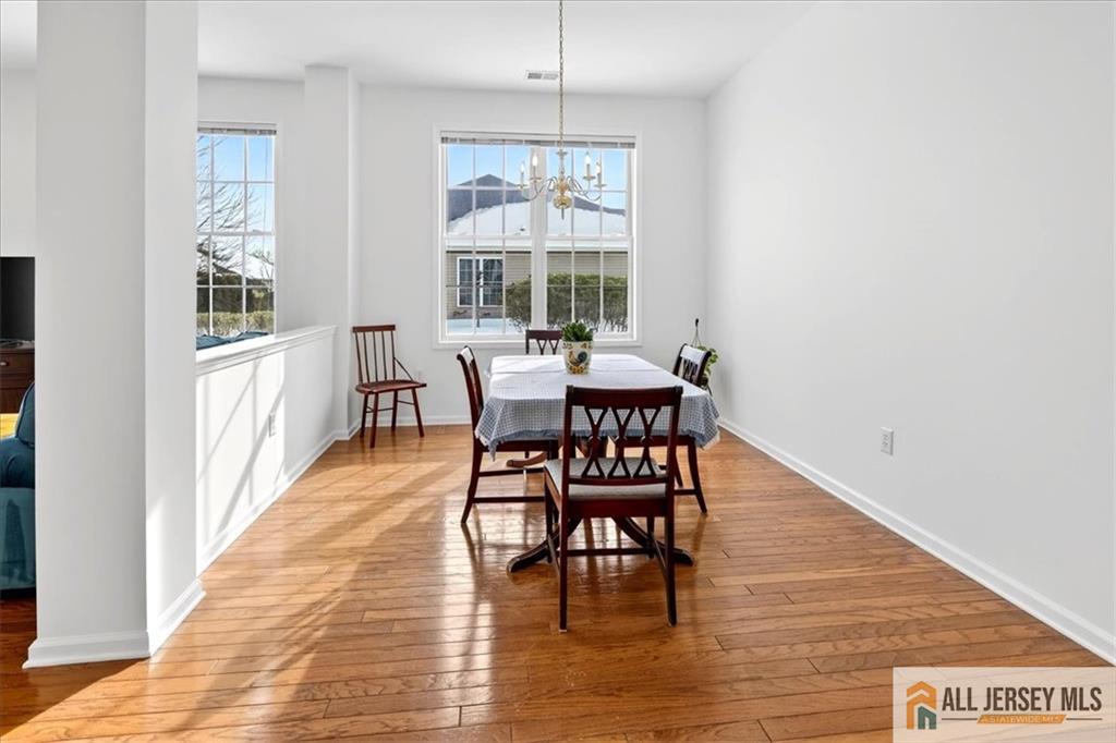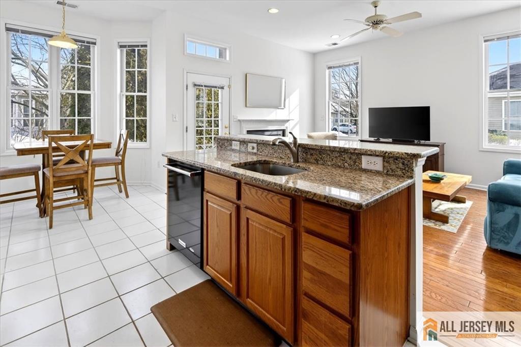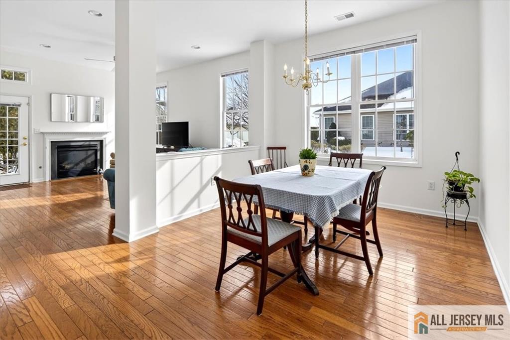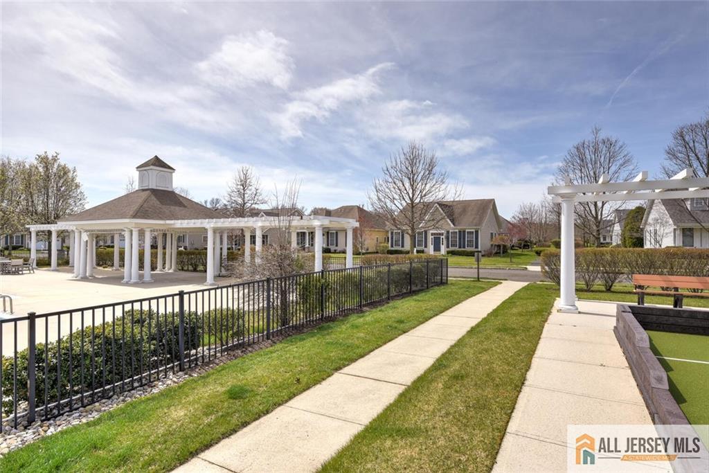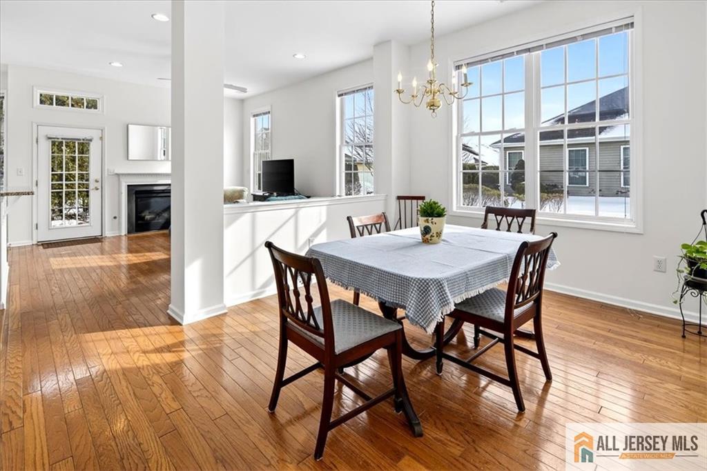 Discover easy, comfortable living in this beautifully cared-for Drake model home, located in the desirable Four Seasons at Historic Cranbury, a premier active adult community. This inviting ranch-style residence offers two generously sized bedrooms and two full bathrooms, along with an eat-in kitchen, formal dining area, and a warm, inviting living room with a gas fireplace. An open, light-filled layout with soaring ceilings over 9 feet creates a bright, airy atmosphere throughout. Recently painted, the home is truly move-in ready. Enjoy peaceful moments on the charming front porch or relax on the private backyard patio. The eat-in kitchen is designed for both function and style, featuring granite countertops, ample cabinetry, a pantry, a breakfast bar ideal for casual entertaining, and a sunlit bay window. Engineered hardwood flooring enhances the living room, dining room, foyer, and both bedrooms. Additional features include a two-car garage with an automatic opener and a new roof installed in 2023. Residents of the Four Seasons community enjoy outstanding amenities, including a clubhouse, outdoor swimming pool, fitness center, and tennis and pickleball court. Perfectly situated near Cranbury's historic downtown, scenic parks, Brainerd Lake, popular dining spots, major highways, and public transportation, this home offers the perfect blend of comfort, convenience, and lifestyle. Schedule a private tour today and experience all that Four Seasons at Cranbury has to offer. CJMLS 2661186M