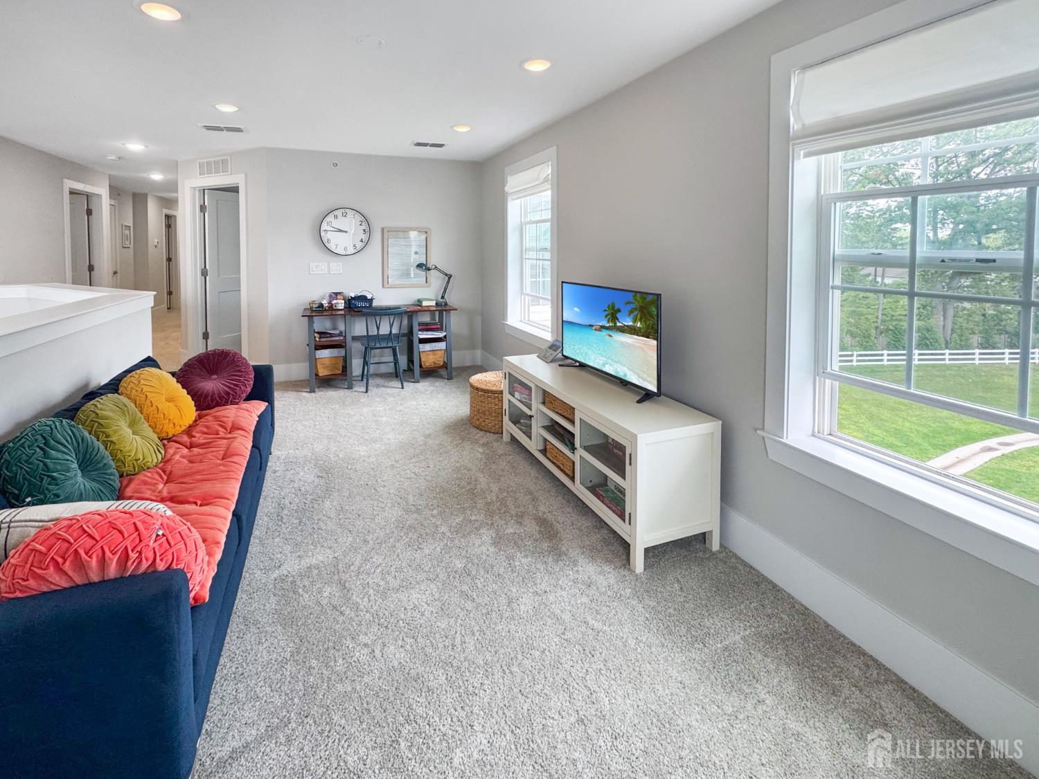 Welcome to this amazing end-unit builder model home in the sought-after The Crossing at Dunellen! Featuring 3 bedrooms, 2.5 baths, this home offers total open concept with a spacious kitchen with a breakfast bar, a bright great room with 2-story ceiling, casual dining room and sliding doors leading to a private balcony. The first floor also includes a half bath, and coffee bar. While the second floor boasts a primary suite with a private bath and two additional bedrooms , a shared full bathroom, You will also find an open living space over looking the first floor great room, a home office and laundry room. 1 car attached garage. Located conveniently in the heart of Dunellen, this home offers easy access to NYC transportation, major highways, and shopping. Perfect private access to Columbia Park for your morning and evening exercise. Enjoy all the home has to offer, including a clubhouse and in-ground pool. Don't miss this opportunity. Schedule your showing today! Furniture could be included for an additional fee. NO PETS! Minimum credit score 700. CJMLS 2603941R