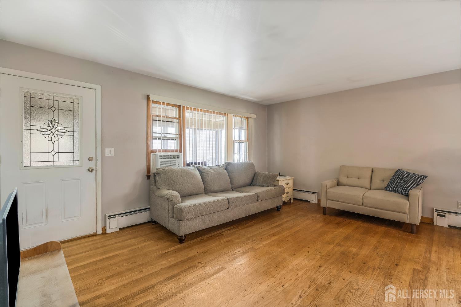 Multiple offers received, final offers due Weds Oct 8, at 9 PM. One PDF file Please! Well maintained ranch home on the north side of Dunellen. Enter into an enclosed porch, what a perfect spot to sit and relax! Hardwood floors adding warmth through out the living space. Spacious living room with Picture window bringing in lots of natural light, formal dining room, eat in kitchen, 3 bedrooms all with ceiling fans, and a full bath complete this cozy ranch. Full basement ready to be finished to ddouble your entaining space. Large back yard with a patio and shed. Most windows are thermopane, some original. Hot water baseboard heat, 150 amp electric, this home is waiting for you to put your personal touches and call it home! one ceiling fan has a broken switch - seller looking to to sell in as is condition with no known issues. CJMLS 2605409R