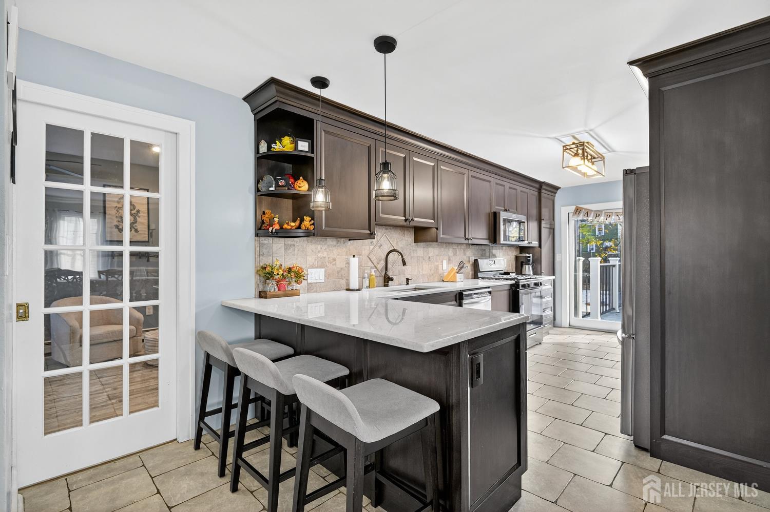 This Classic Brick-front Colonial has been beautifully updated and expanded with a generous addition, offering 4 Bedrooms, 2.5 Baths, and over 3000 SF of Living Space! The main level offers rich hardwood floors, classic trim work, wainscoting, and an inviting living room with wood-burning stove. The impressive formal dining room was made for entertaining, comfortably accommodating large gatherings (15+ people). The updated chef's kitchenfeatures stylish cabinetry, stainless steel appliances, generous counter space, a breakfast bar, and sliding doors to the rear deck.Additional living space includes an oversized FR with cathedral ceiling, recessed lighting, skylights, and french doors that open to a cozy home office. Upstairs offers four generously sized bedrooms, the main bath, and a full finished attic offering bonus living space and half bath. There is also a full basement providing ample storage and laundry facilities. Outside, enjoy your own private oasis with fully fenced in backyard, deck, and a sprawling paver patio surrounding the in-ground gunite pool and hot tub. A detached 2 car garage further enhances this standout property. Excellent location, only a few blocks from downtown shopping, dining, and the train station. This home truly has it all! CJMLS 2608906R