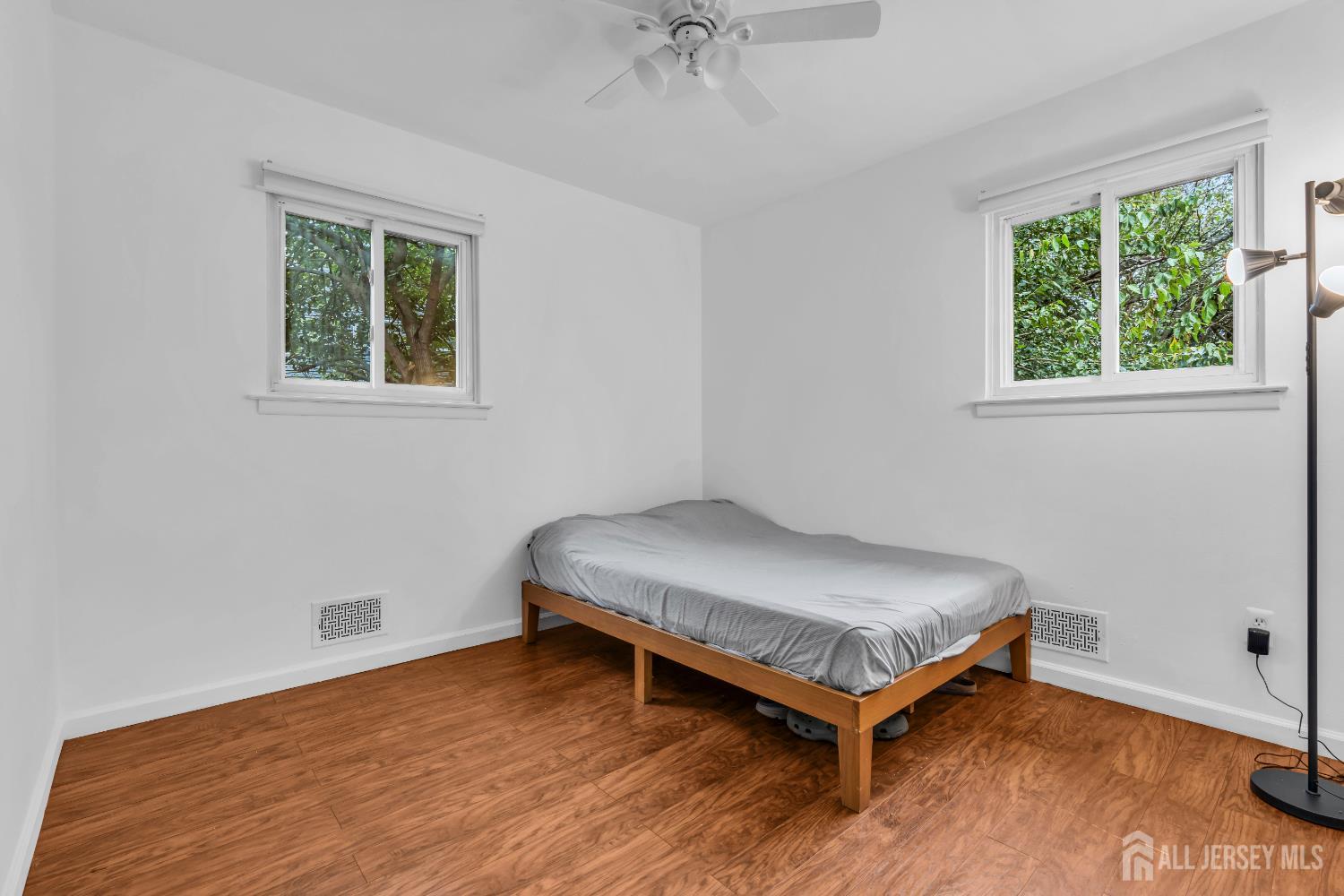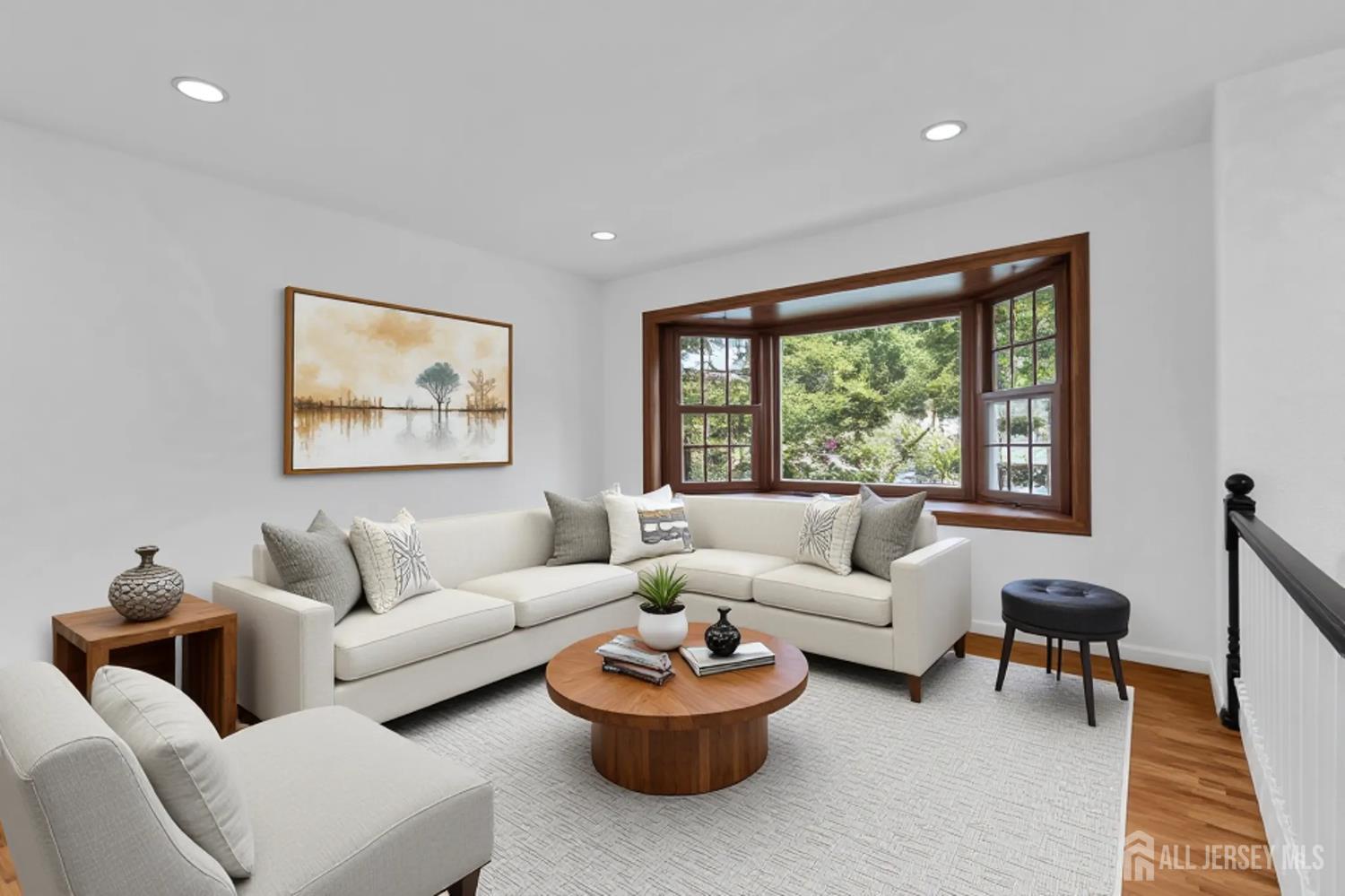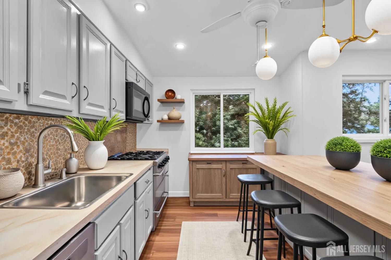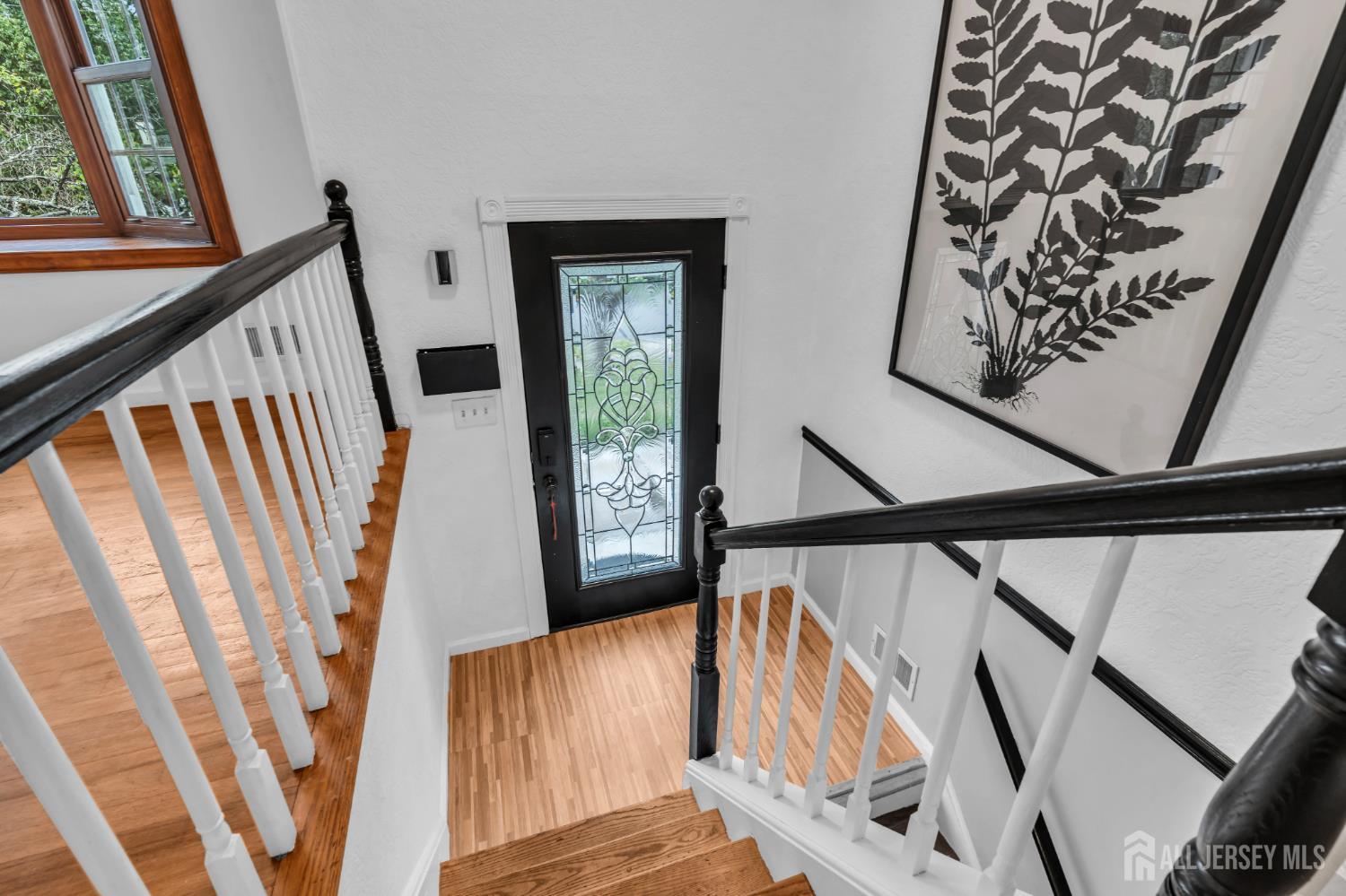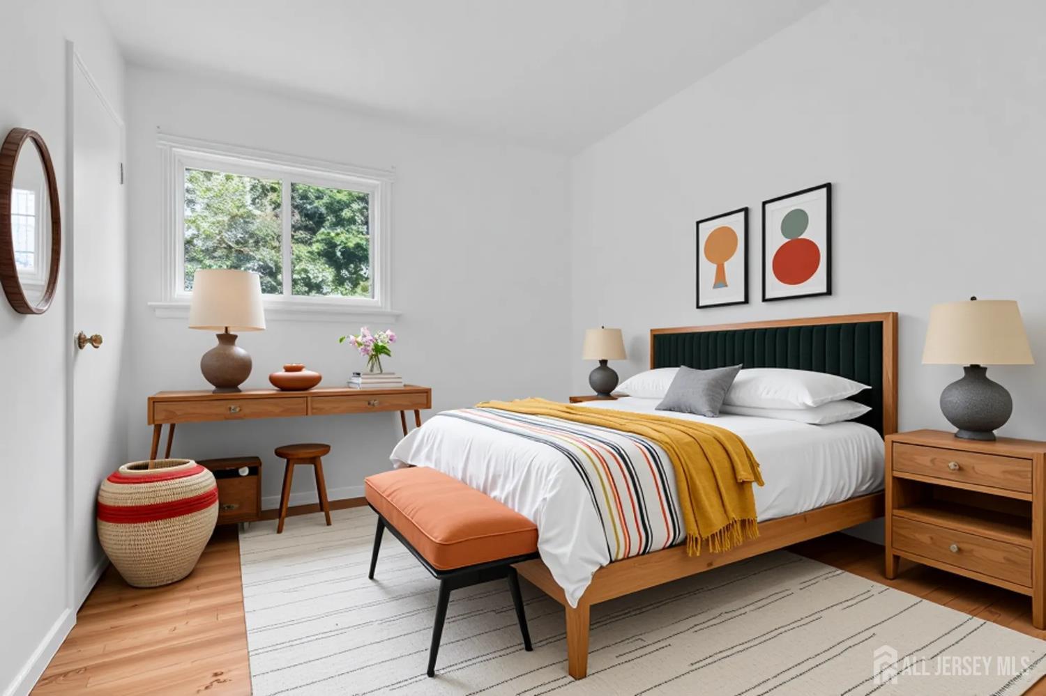 Welcome to this well-maintained 4-bedroom, 1.5-bath, 2-level home situated on a fenced, nearly one-third-acre lot, featuring a spacious deck ideal for entertaining or simply relaxing in your own private outdoor retreat. A dramatic 2-story entrance with a striking beveled-glass door and updated flooring sets the tone, opening to sun-filled spaces with hardwood floors. The interior has been freshly painted throughout, creating a bright, move-in-ready feel. Upstairs, the updated kitchen features stainless steel appliances, painted wood cabinets with new hardware, and new flooring. Thoughtfully open to the dining room, it flows seamlessly into the living room, which features a whole wall bay window, making it an ideal setup for gatherings. Three bedrooms and a refreshed full bath, featuring new flooring and a mirror, are complemented by 2-paneled doors with custom hardware, recessed lighting, fans, and pull-down attic stairs, making this level complete. The lower level is designed with flexibility in mind ideal for extended families or for enjoying entirely on your own. This level features an additional bedroom, a half bath, a spacious family room with French door sliders that open to the deck and great yard, a den, a laundry room, garage access, recessed lighting, and 6-panelled doors with custom hardware. With separate entrances and living areas, this home is ideal for extended family living. Added highlights include a 2022 new roof with all-new plywood and a 50-year warranty, a maintenance-free vinyl exterior, numerous recessed lights throughout, a spacious deck, and a beautiful property setting. Conveniently located near NY transportation, this home also enjoys East Brunswick's highly rated schools, shopping, fine dining, local theatre, nearby Princeton and Rutgers, and all the amenities that make East Brunswick such a desirable community. Virtually enhanced. CJMLS 2605093R