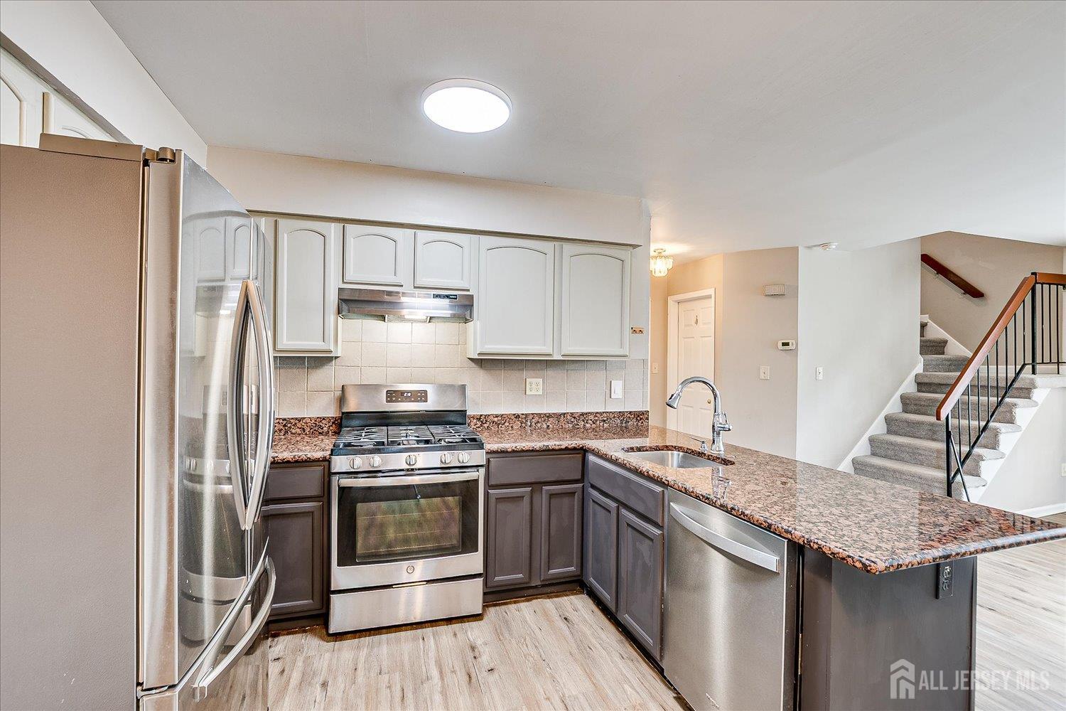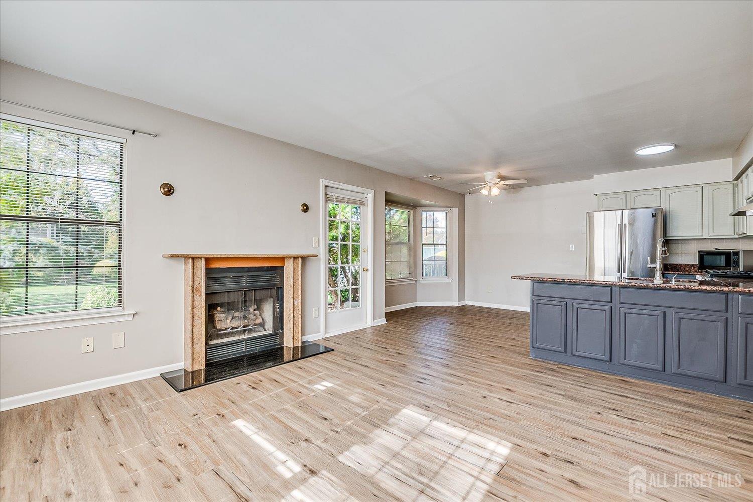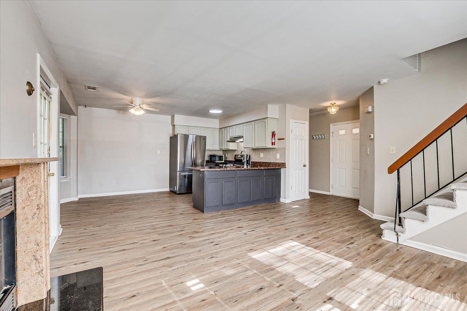 Welcome to 23 Lear Court, a beautiful end-unit townhome in the desirable Crosspointe community of East Brunswick. This bright and airy 2-bedroom, 1.5-bath home features an open-concept living and dining area with hardwood floors, a cozy fireplace, and plenty of natural light. The kitchen is equipped with a stainless steel refrigerator, microwave, and dishwasher, all just a few years old, along with a newer washer, dryer, and water heater for added convenience. The master bedroom offers a spacious closet, and the second bedroom is perfect for guests or a home office. Enjoy resort-style amenities including a swimming pool, tennis courts, and BBQ areas, all in a beautifully maintained community. Ideally located near major highways, NYC bus service, and local shopping and dining, this home also belongs to East Brunswick's top-rated school district. A perfect place to call home, ready for you to move in and enjoy. CJMLS 2606383R