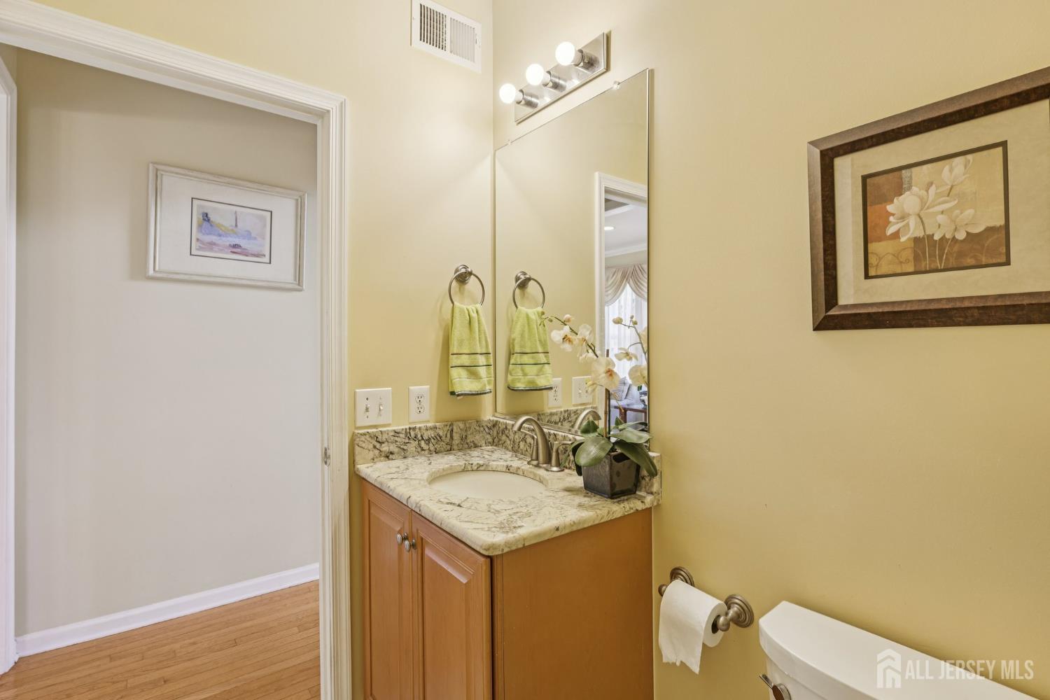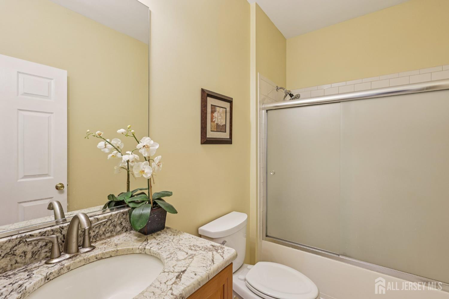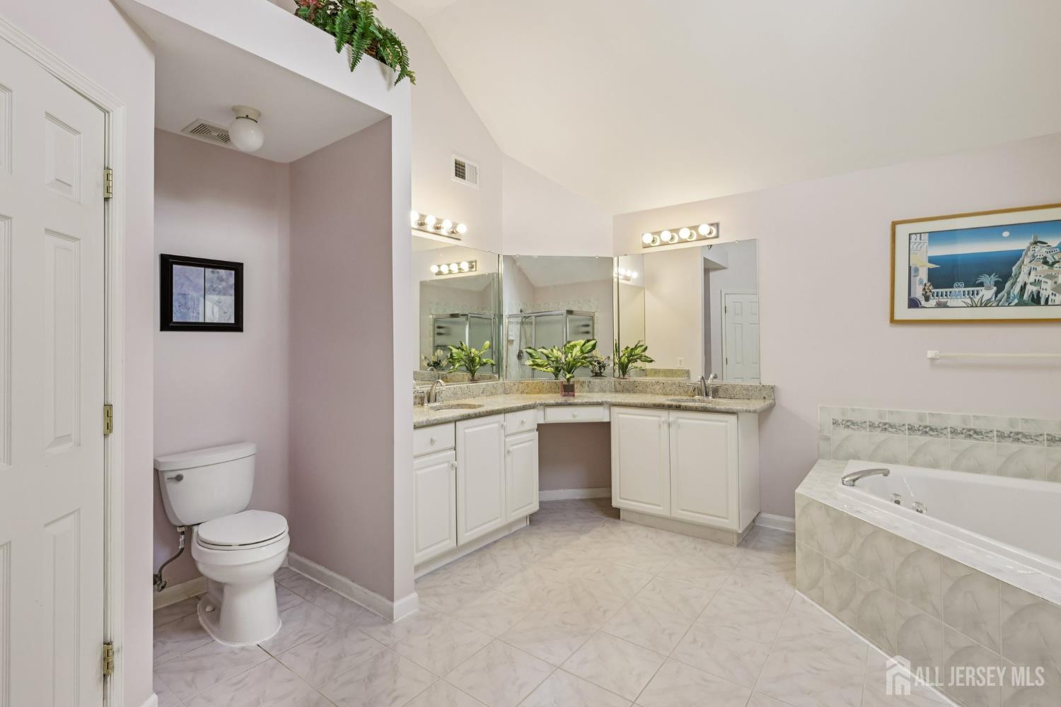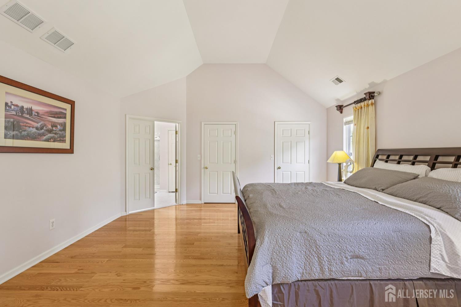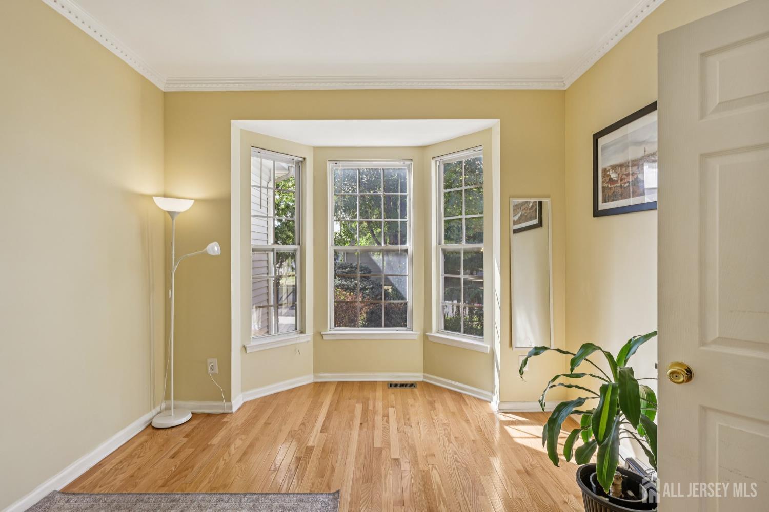 In the prestigious Apple Ridge Estates, discover an exceptional East Brunswick colonial boasting nearly 3,300 square feet of luxury living on a premium lot backing to tranquil conservation land. This estate features four spacious bedrooms upstairs along with a fifth bedroom option or office on the main level, complete with a full bath, ideal for multi-generational living or guest accommodations. The grand two-story foyer, illuminated by an elegant chandelier, opens to a spectacular great room with cathedral ceilings that overlook the formal dining area. Beautiful custom wall niches with accent lighting, crown molding, and hardwood flooring throughout showcase the home's craftsmanship and attention to detail. The gourmet kitchen is appointed with granite countertops, 42-inch cabinets, and sliders that open to a park-like backyard featuring a deck and gazebo perfect for outdoor entertaining or quiet evenings surrounded by nature. Recent upgrades add tremendous value, including a brand-new HVAC system,furnace, and tankless hot water heater (2024), a new hardwood staircase(2024),new garage doors, and a 10-year-young roof. Additional features include a smart sprinkler system controller, an electric vehicle charging station with a Level 2 charger, and professionally designed landscaping that enhances the property's curb appeal. Upstairs, the expansive primary suite impresses with double walk-in closets and a sun-filled ensuite bath with a skylight. The full basement with upgraded high ceilings offers endless possibilities for future customization. Commuters will love the home's prime location with easy access to express buses to New York City and Jersey City, Route 18, Route 1, and the NJ Turnpike, this home is also close to Downtown New Brunswick, Rutgers University, major hospitals, shopping, and dining. Zoned for acclaimed East Brunswick Blue Ribbon School District. This luxurious home combines size, style, and location, offering unmatched value in one of East Brunswick's most desirable neighborhoods that will not last! CJMLS 2607015R