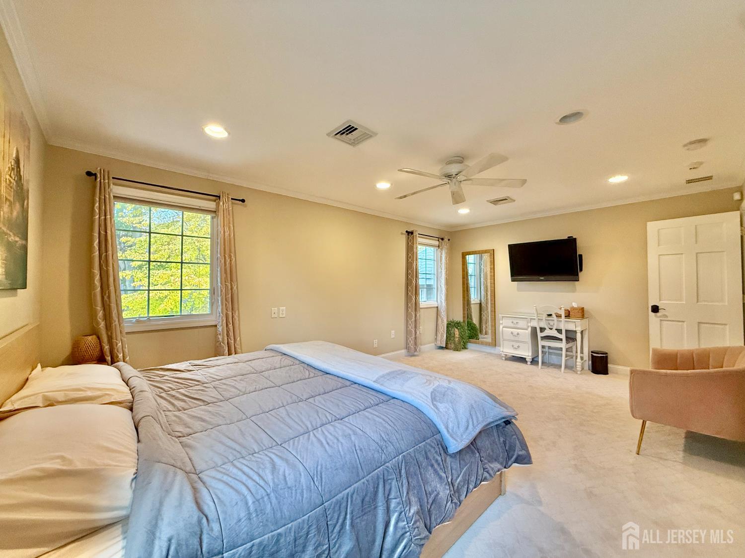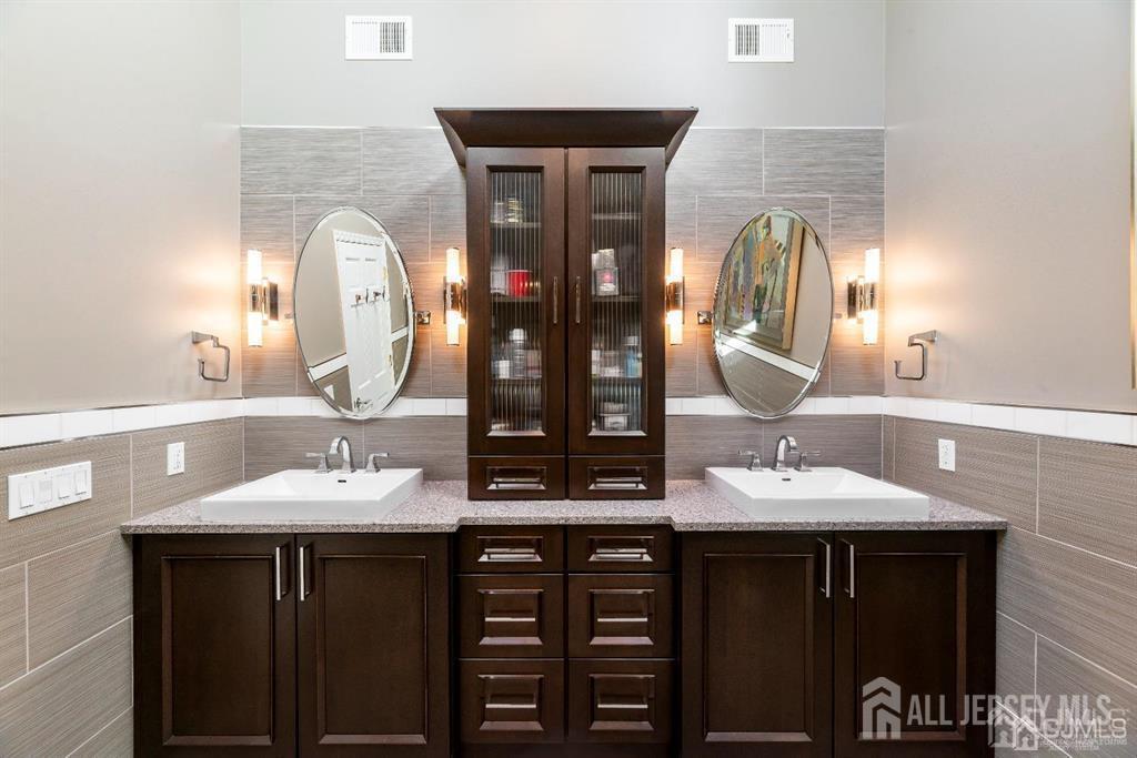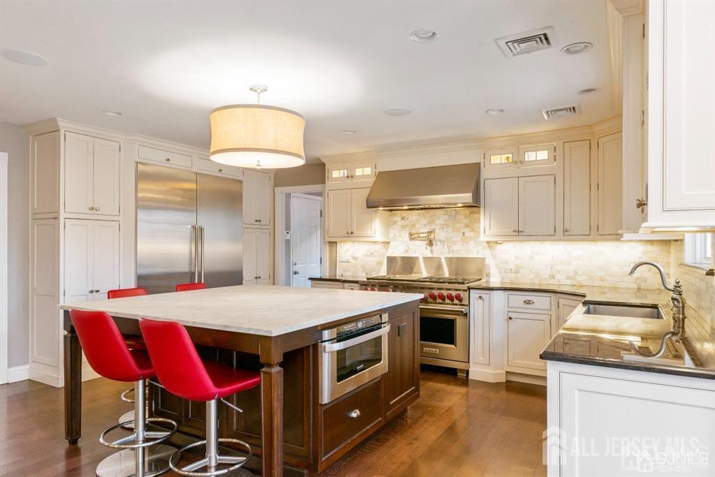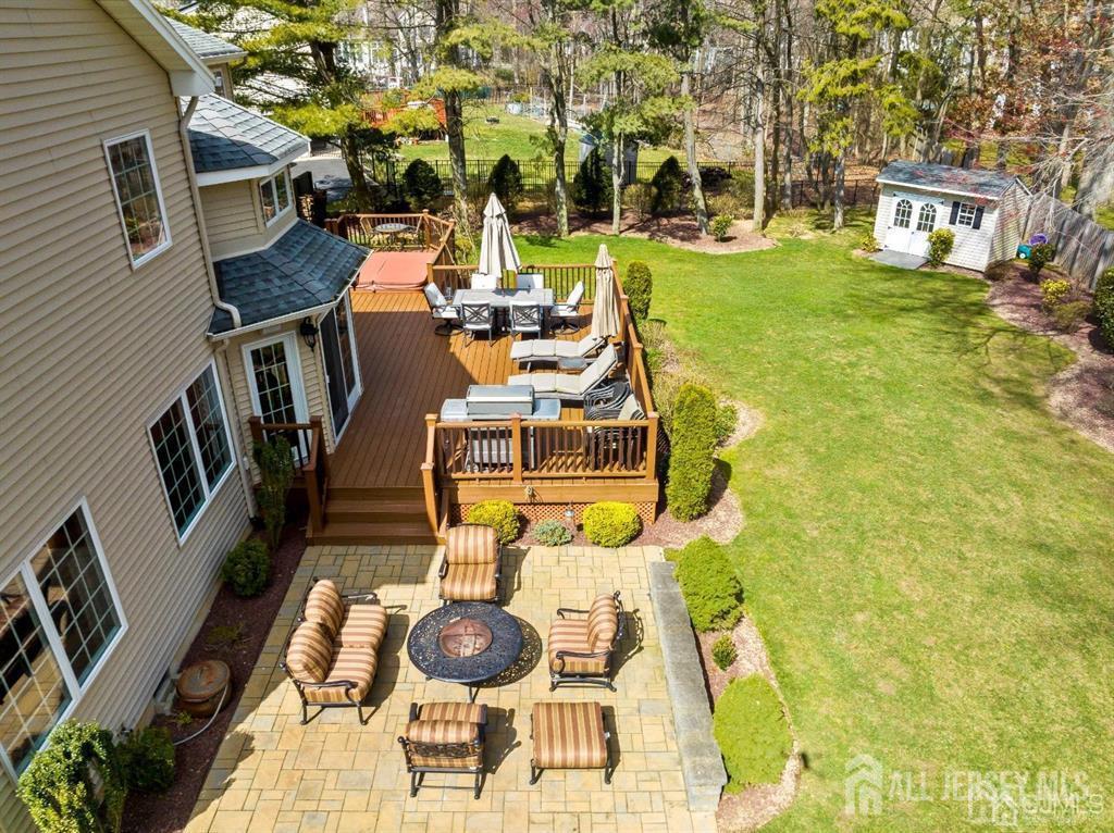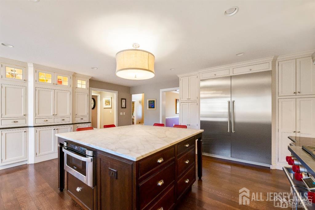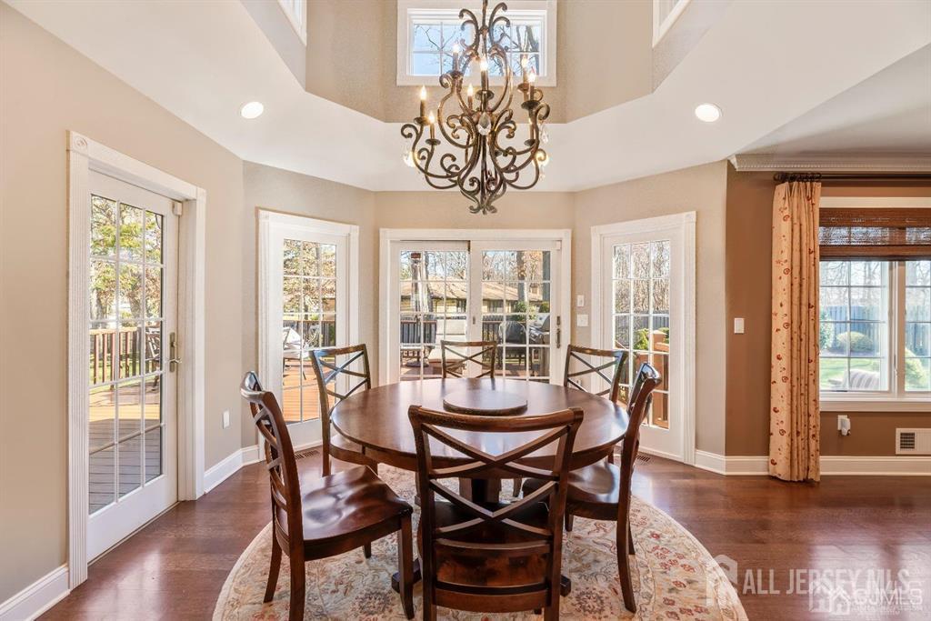 Magnificent luxury-built custom home located in a quiet neighborhood in the most desirable Colonial Oaks community. Beautiful hardwood & tile floors, elegant decorative crown molding & skirt board panels & an abundance of windows letting in lots of natural light are just a few delights. When you enter through the striking foyer, you can visualize entertaining in the cozy living room with overflow to the spectacular family room with a built-in entertainment center & a wood-burning fireplace with a gorgeous floor-to-ceiling stone mantle. A dry bar & wine cellar are located between these rooms so you can easily create that special drink for everyone. Cook your favorite foods in the designer's delight gourmet kitchen with high-end s/s appliances, a convenient pot filler, a farmer's sink & a huge center island. The 2-story charming breakfast nook with outdoor views is a great place to enjoy your morning beverage. The banquet-sized dining room is ideal for gathering for dinner. The fifth bedroom on the first floor can also be an office or den. The mud room with wonderful built-in cabinets & a powder room completes this floor. Nestled on the upper floor, you will find the spacious master ensuite with vaulted ceilings, a walk-in closet, & a stylish private bath with 2 sinks & skylights. Another well-size bedroom also with vaulted ceilings & a walk-in closet, along with two additional bedrooms, the main bath with 2 sinks & the conveniently placed laundry room, complete this level. The finished basement is a great place for a recreation room or home theater. A second good-sized room with a full bath can be used as an exercise room. The professionally landscaped, fenced-in backyard has a stone patio with a fire pit. Relax in the hot tub that can be found on the enormous Trex deck with Trex railing. This home also has a whole house generator. Easy access to Rt 18, Rt 1, NJ Tpk, Downtown New Brunswick, Rutgers University, & Hospitals. Close to houses of worship. Very close to NYC buses, shopping, dining & recreation. Warnsdorfer Elementary School & East Brunswick Award-Winning Blue Ribbon School District! Available January 1, 2026. CJMLS 2607031R