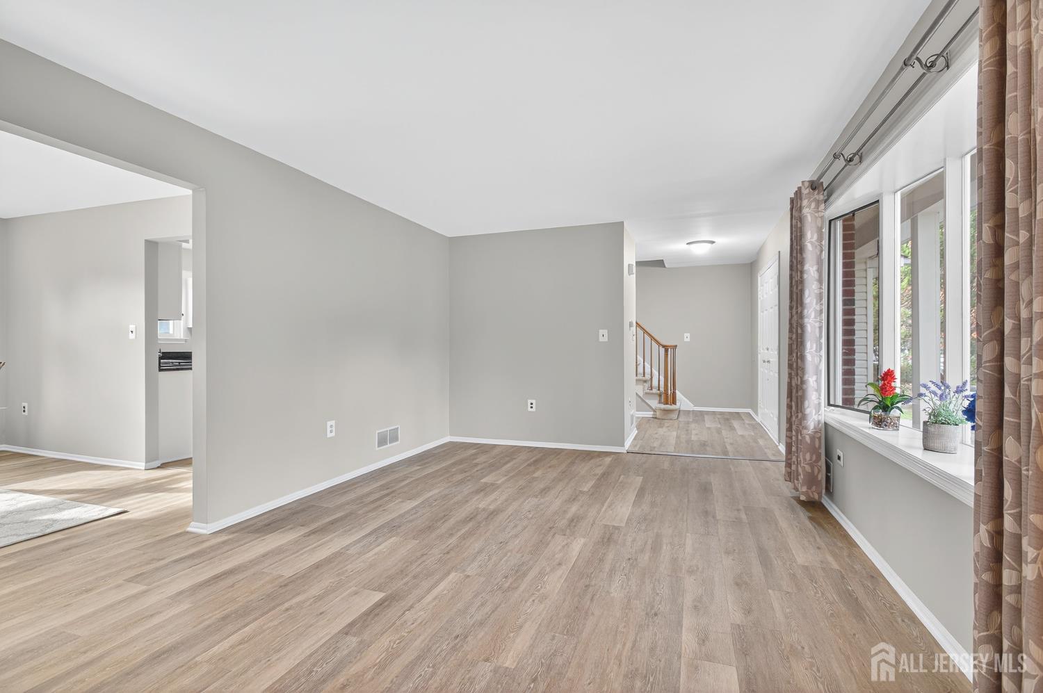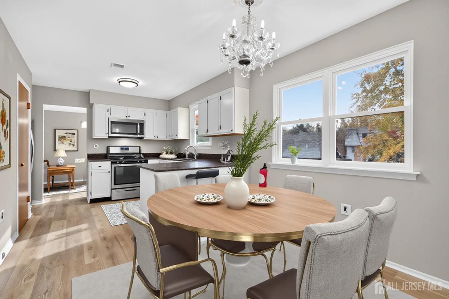 Going! Going! Gone! This spacious, beautifully remodeled 3-bedroom, 2.5-bath Colonial on a quiet cul-de-sac in sought-after Colonial Oaks Village will make you feel right at home Check this Matterport on homes.com https://www.homes.com/property/8-wright-ct-east-brunswick-nj/xph89z8d3y8kz/?tab=1&dk=6t9pc0b913wj3 Lovingly maintained and thoughtfully updated, it boasts a charming portico with double-door entry, low-maintenance vinyl and brick exterior, and fresh custom paint throughout the first and second floors, basement, and garage, including a newly speckled epoxy garage floor. The main level features new laminate flooring, a foyer with a roomy WI coat closet, and a remodeled hall bath. To the left of the entrance is a large living room with a bow window, and a dining room featuring a modern fixture that overlooks the spacious yard. The sunny, updated kitchen offers granite U-shaped counters, stainless steel appliances, a breakfast bar, and a separate breakfast room with a chandelier and a large WI pantry. The sunken family room provides generous space with sliders to the deck and backyard. Upstairs, three well-sized bedrooms all include ceiling fans and ample closets, with two refreshed baths featuring granite countertops and undermount sinks. The en-suite has a separate sitting area, abundant closets, and a remodeled full bath. The full basement, painted in a chic gray, whit, and black palette, is ready for use as a rec room, playroom, or gym, with plenty of storage space. Notable updates include: 2019-2023 laminate floors on the main level; 2025 deck repaint and driveway seal coat; 2024 Whirlpool gas dryer; 2019 remodeled kitchen and baths; 2019 garage door; 2014 AC and furnace; 2012 roof; and 2007 siding and windows. Conveniently close to East Brunswick's top-rated schools, the East Brunswick library, shopping, parks, lake, boating, major highways, public transit, Rutgers, Princeton, Theatre and fine dining. Only 30 minutes to the jersey shore! CJMLS 2607230R