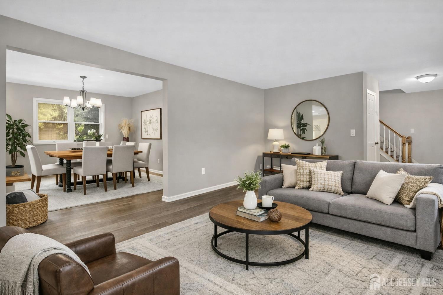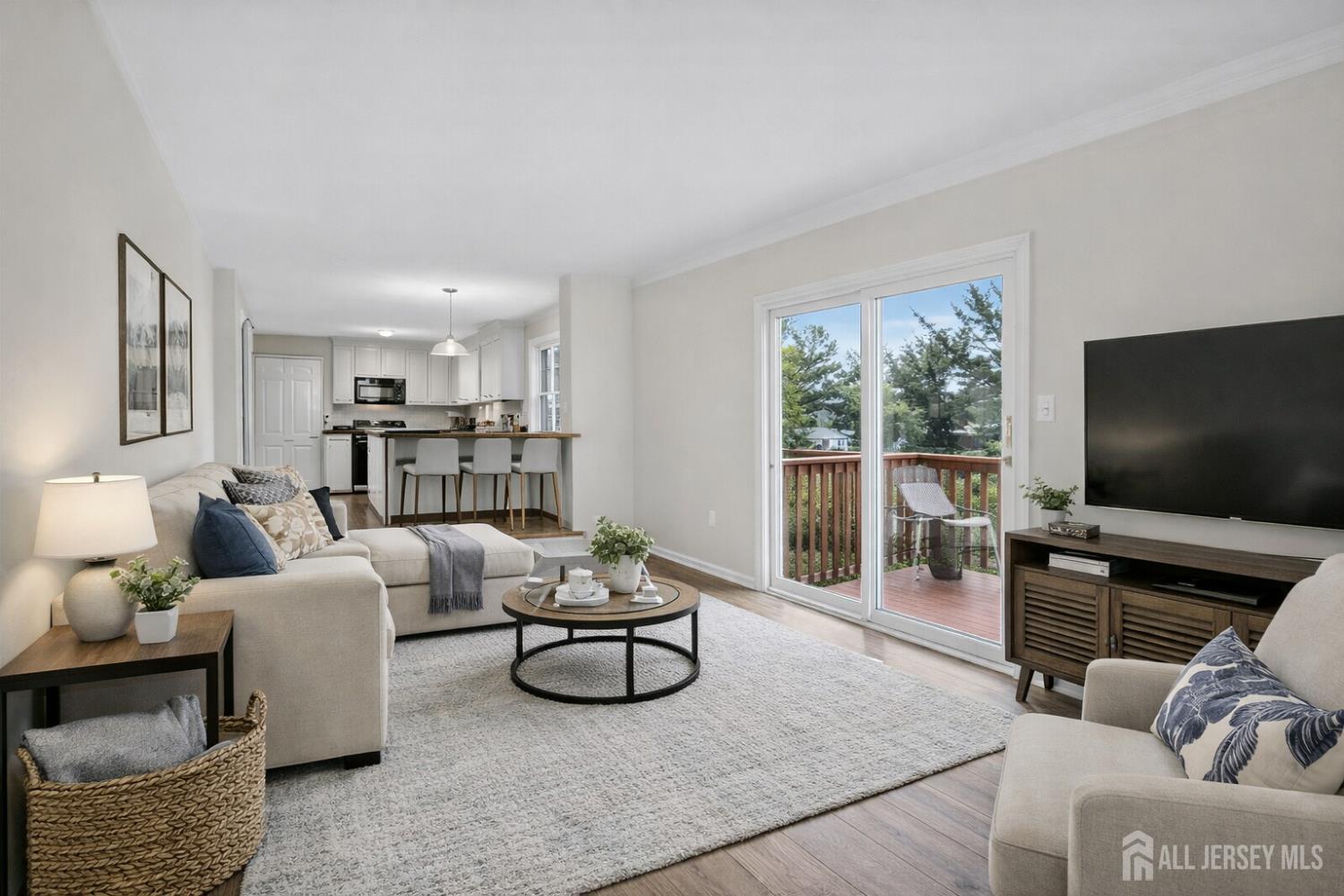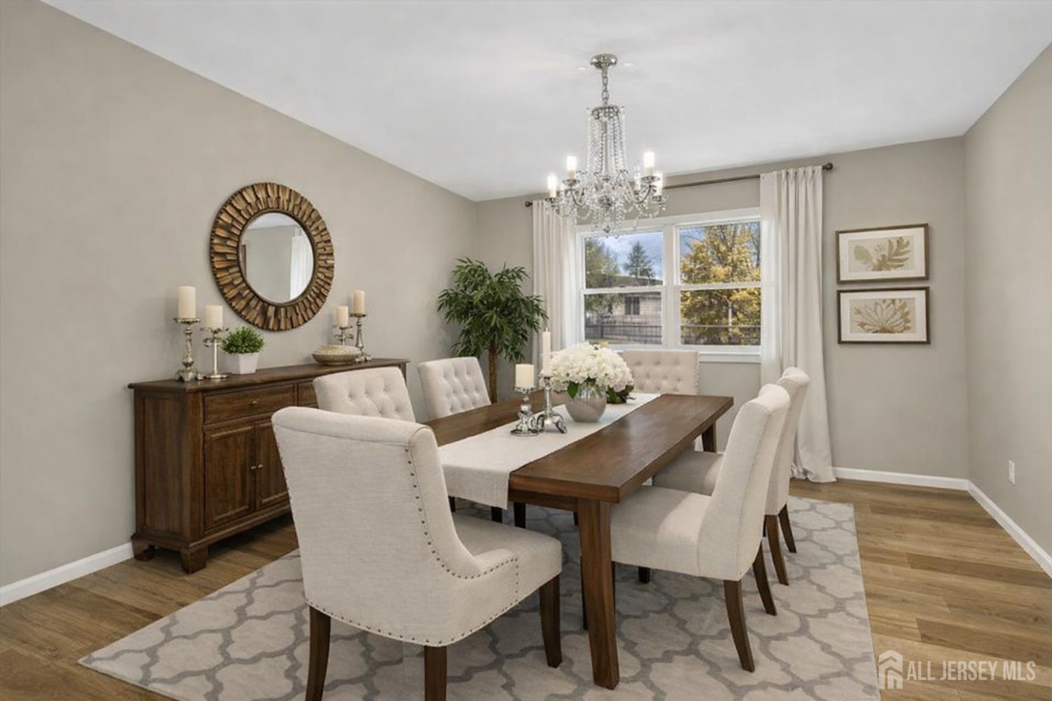 Updated and spacious 3-bed, 2.5-bath side-hall colonial with all the BIG-TICKET items, in sought-after Colonial Oaks Village. Updates include roof, siding, windows, leaders, gutters, columns, and garage door, INCLUDING 2019-2023 laminate floors on the main level, a 2025 deck repaint and driveway seal coat, 2024 Whirlpool gas dryer, 2019 UPDATED kitchen and baths, 2014 AC and furnace, 2012 roof, 2007 siding and Windows. This home is complemented by fresh custom paint throughout the first and second floors, the basement, and the garage, with a new speckled epoxy garage floor. The main level features new laminate flooring, a foyer with a large WI coat closet, and an updated half bath. The living room, with a large, rounded bow window, continues into the dining room, which features a modern fixture. The sunny, updated kitchen features granite U-shaped counters, stainless steel appliances, a breakfast bar, and a separate breakfast room with a chandelier and a large WI pantry. Continue to the 9-foot height ceiling family room with sliders to the yard. 2nd level:3 very large bedrooms with ceiling fans and generous closets, plus two refreshed baths with granite countertops and undermount sinks. The en-suite includes a sitting area, a separate linen closet, and an updated full bath. The full basement, painted in a chic gray, whte, and black palette, is ready for use as a rec room, playroom, or gym, with plenty of storage. Conveniently located and bused to award-winning East Brunswick schools. CJMLS 2607230R