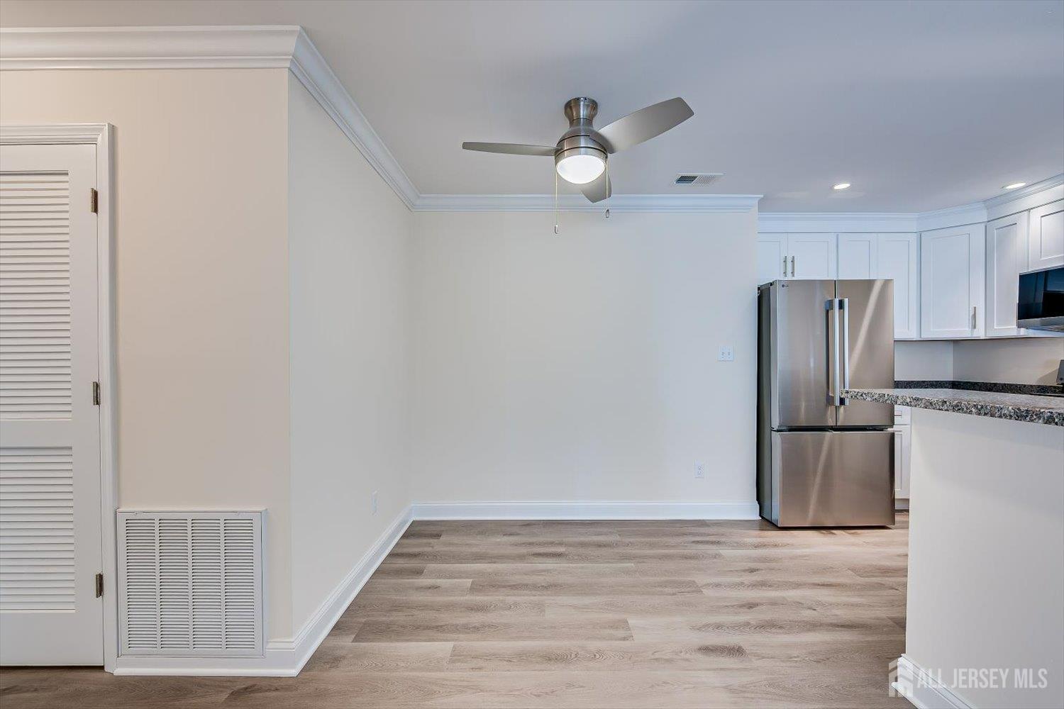 Experience a step up in quality in this 2-bedroom, 1-bath ground floor unit overlooking the pool. This unit has been fully renovated from top to bottom and feels every bit like brand-new construction. Everything new and upgraded: Elegant crown molding throughout, granite countertops, windows, HVAC, custom linen closet, and ceiling fans in every room. Every finish is crisp, modern, and thoughtfully designed. The unit also features brand new LG stainless steel appliances: self-cleaning oven with air-fryer, French Door refrigerator with ice-maker, microwave over the stove, full size washer and dryer, and a rare feature: a custom gas fireplace with remote. Also included is a convenient reserved parking spot in front of the building. CJMLS 2608547R