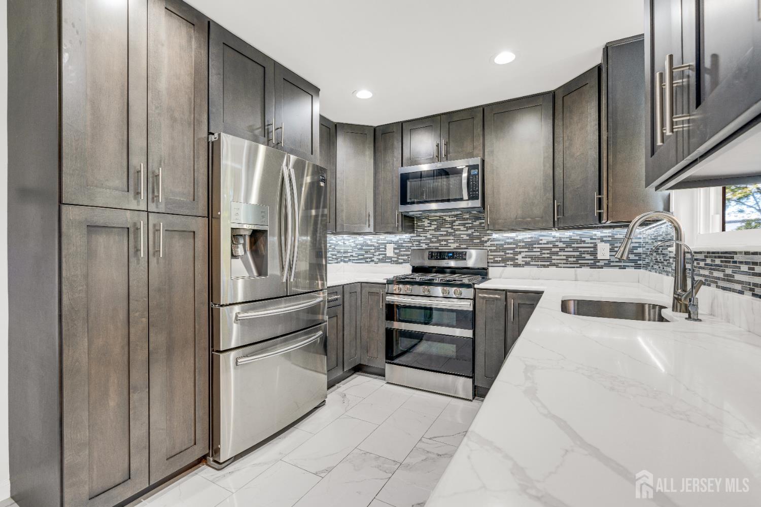 The owners are ready to pass the baton on this lucky home. They are moving to a bigger home in only one year!! Opportunities like this don't come by often! This turnkey, IMMACULATE, sun-soaked end units situated in the heart of highly desirable Pumptown Corners in North Edison. This gorgeous 3 BR 2.5 bath townhouse features upgrades galore. Completely renovated in 2019, this home offers an elegant & modern kitchen, fully updated bathrooms, beautiful flooring & recess lighting throughout. First floor features a sunlit living room, formal dining room, & updated powder room. Generously sized eat-in kitchen (2019) is a chef's dream! Featuring gorgeous shaker cabinets, quartz countertops, updated backsplash, newer SS appliances & sliding door to the deck, perfect for entertaining. Second floor offers three generously sized bedrooms, each featuring recess lighting w/ smart switches, modern ceiling fans, and custom-designed closet storage. Beautifully updated main bathroom & 2 linen closets in the hallway. Spacious master BR offers a custom walk-in closet as well as its very own updated full bathroom (2019). The partially finished basement is perfect for both entertainment & storage. New washer & state of the art ventless heat pump dryer (2024); whole house water softener & RO water filters & Lennox AC w/ two stage furnace (2020) and whole house humidifier! Brand new windows (2024) throughout the entire home! Brand new HWH 2025!! Close to shopping, trains and featuring North Edison schools, this absolute gem of a home is a must-see! CJMLS 2606409R