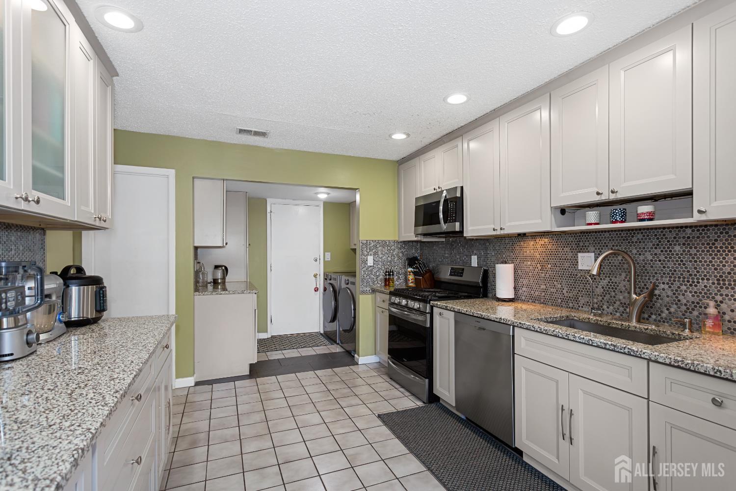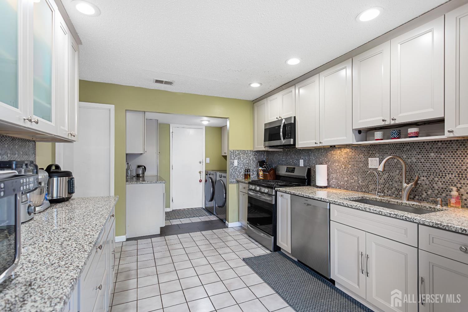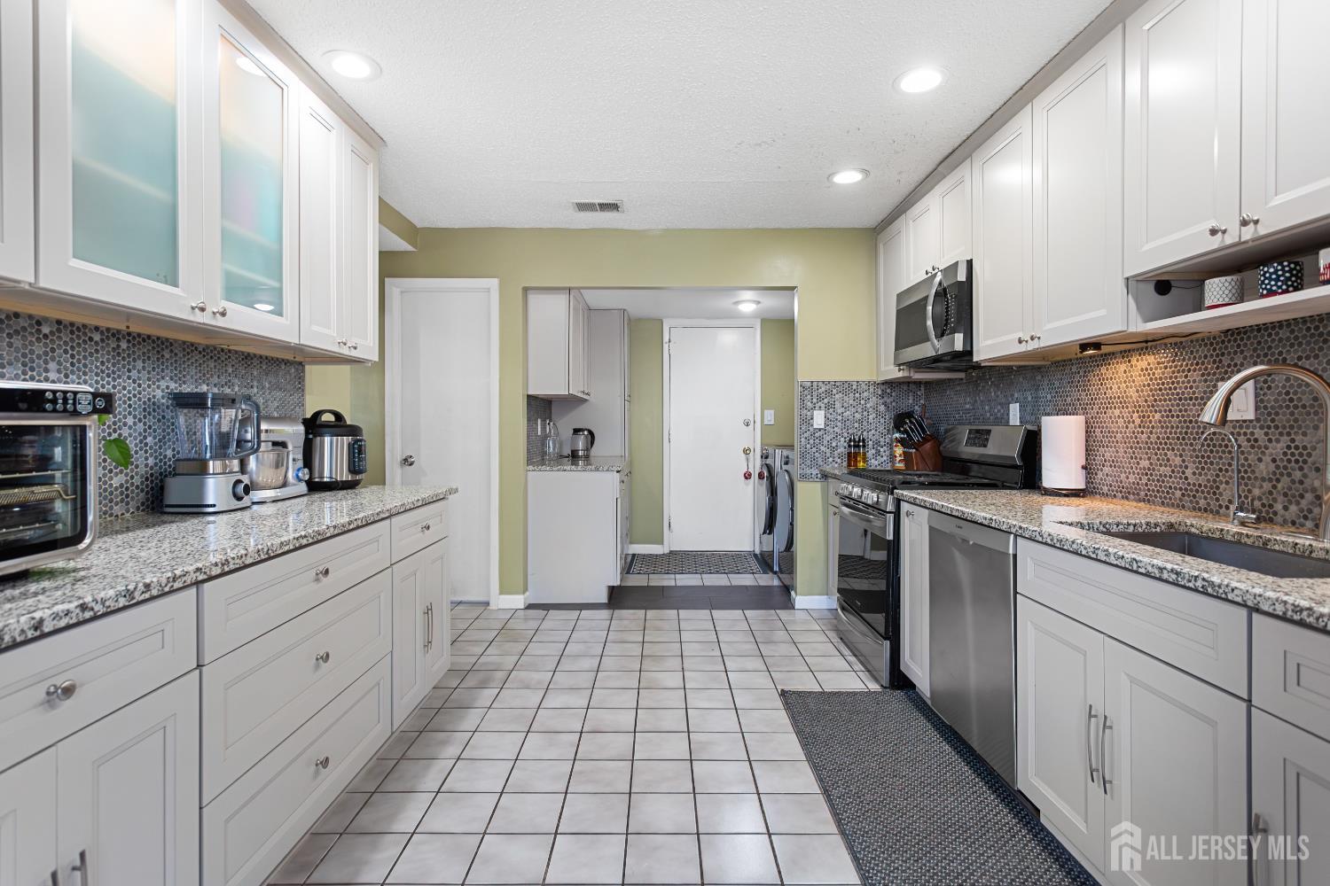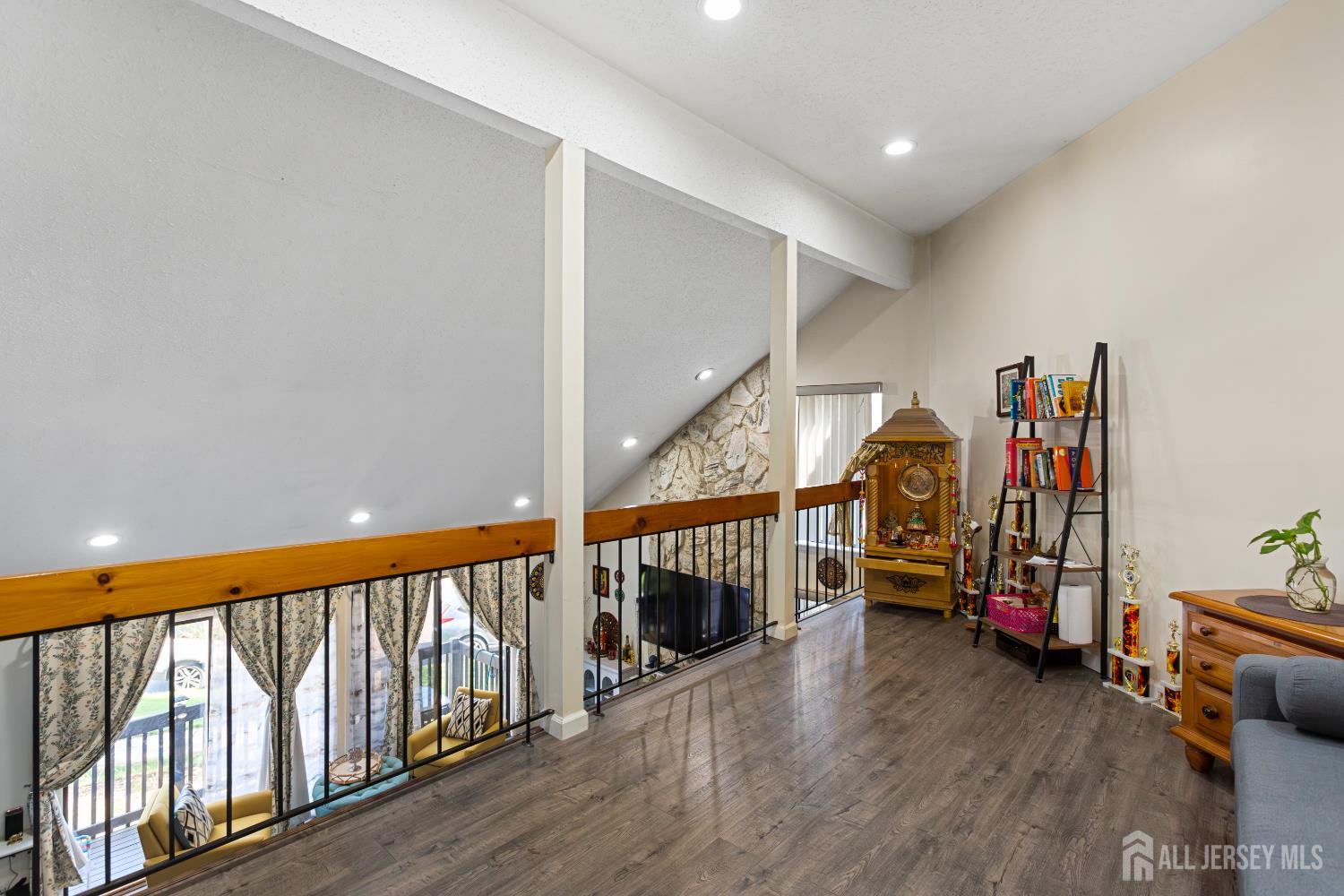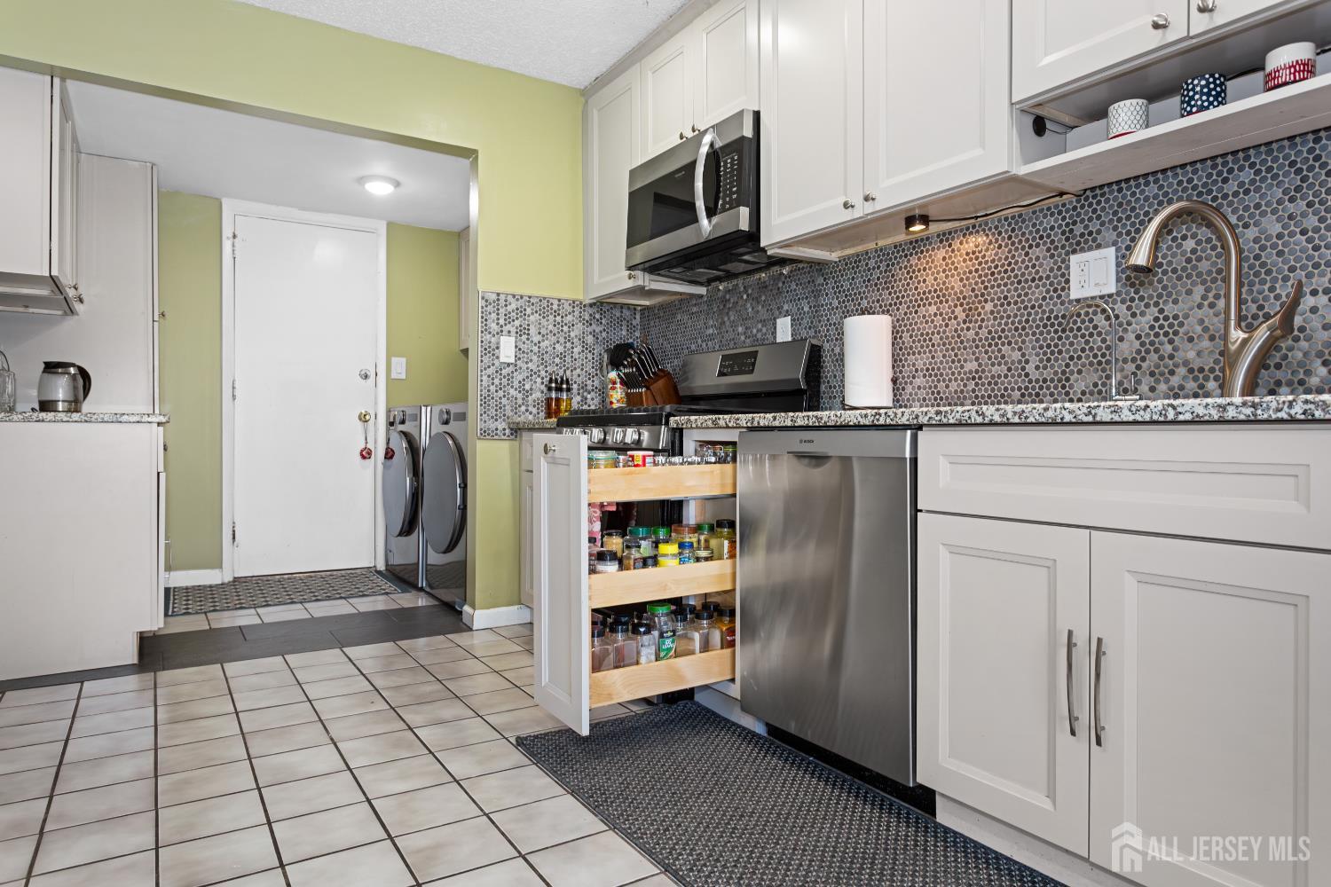 OPEN HOUSE - SUN April 12th, 11 am - 2 pm!! Think you've seen this floor plan before? Think again, this is the only unit in Westgate featuring a custom-expanded designer kitchen with an integrated pantry suite and superior storage. Welcome to this bright, North East facing, and Vastu-compliant contemporary townhome! Offering 2 bedrooms, 2.5 baths, a versatile loft, and a finished basement, this home is loaded with upgrades you simply won't find in neighboring units. The heart of the home is the reimagined kitchen, boasting extended granite counters, soft-close cabinetry with glass accents, a dedicated pantry closet with pull-out shelves, a custom spice rack, stainless steel appliances, and extra recessed lighting. The clever expansion seamlessly integrates the laundry area with a new LG washer and dryer for ultimate convenience. Natural light pours into the open-concept living and dining area through floor-to-ceiling windows and two sets of sliding glass doors. Enjoy vaulted ceilings, a stunning stone fireplace, and access to a welcoming front deckperfect for greeting neighbors in this highly social community. For more secluded relaxation, retreat to your private patio. Upstairs, the primary suite features a private balcony, custom closet organizers, and a beautifully renovated ensuite bath with a sleek walk-in shower and new vanity. The freshly painted second bedroom also enjoys its own balcony and features a rare two-closet layout, while the updated hall bath features modern tile work. A spacious, sunlit loft overlooks the living room, making it the perfect home office or reading nook. Need more space? The finished basement offers fantastic flex space for a gym or playroom, while a large attic with a new pull-down ladder provides massive storage. The garage even features a designated outlet ready for your EV charger! Major Updates: Enjoy absolute peace of mind with a newer roof, balconies, and patio (2020), a new electrical panel (2022), and new water heater. Ideally situated on a premium, elevated lot in a tranquil, deeply set-back section of the community, this highly desirable topographical position provides optimal grading for total peace of mind. Meanwhile, its distance from the perimeter ensures a quiet atmosphere far away from transit or traffic noise. The Westgate Lifestyle: This highly active, socially connected HOA offers a swimming pool, tennis, pickleball, basketball, and year-round community events (from wine nights to holiday parades). Located in a premier commuter location, you are just minutes from the Metropark and Edison stations for easy NYC access. Zoned for highly-rated North Edison schools (MLK Elementary, John Adams MS, JP Stevens HS) and located just moments from JFK Medical Center, Menlo Park Mall, Oak Tree Road dining, and the 196-acre Roosevelt Park. Don't settle for standard. Book your showing today! CJMLS 2613762R