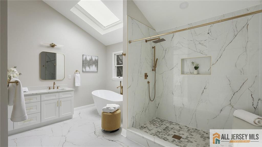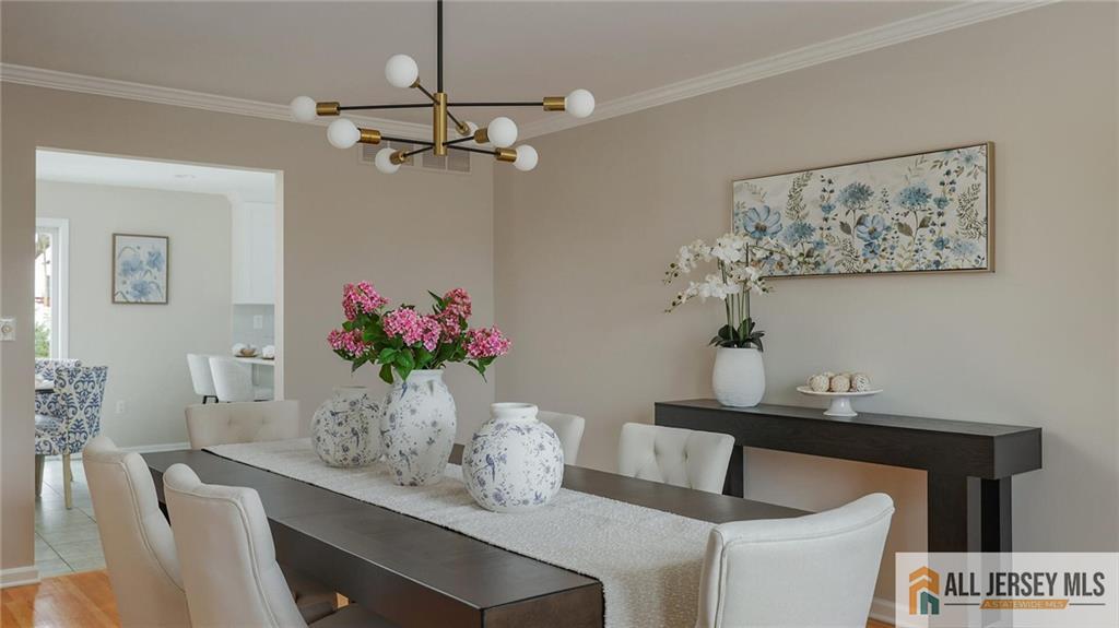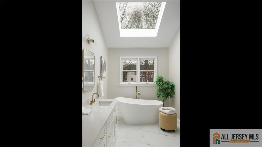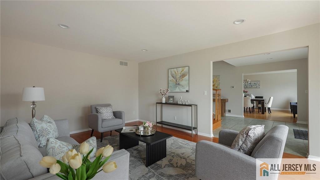 Location & Beauty - What a Combination! Welcome Home to this Large, Stunning 5-Bedroom, 3 Full Bath Center Hall Colonial, Beautifully Situated in a Gorgeous Cul-De-Sac Neighborhood in the Highly Sought-after North Edison School District - John P. Stevens High School. East Facing Exposure, Bright, Sunny And Airy, This Exquisite Designer Home Features Gleaming Hardwood Floors and Custom Details Throughout, an Updated White Kitchen, and Two Newly Renovated Full Baths Including a Luxury Primary Bathroom. Step Through the Grand Double-Panel Entry Doors into the Spacious Foyer, Where two Coat Closets Sit on Each Side of the Entryway. On Your Left is the Large Living Room with w/Distinctive Three-Window Layout Reminiscent of a Bay Window, While on Your Right is the Formal Dining Room with the Same Beautiful Window Design, Both Filling the Home with Abundant Natural Light. Moving Forward is the Expansive Family Room with Vaulted Ceiling, Skylights, and a Cozy Fireplace, Creating a Bright and Welcoming Gathering Space. The Open Floor Plan Flows Seamlessly to the Dining Area by the Double Sliding Doors to the Backyard and into the Beautifully Updated White Kitchen Featuring Quartz Countertops, Quartz Backsplash, Stainless Steel Appliances, Breakfast Peninsula and Pantry. To the Right of the Kitchen is the Convenient First-Floor Laundry Room with Access to a Full Bath with Stall Shower and the Oversized Two-Car Garage. Adjacent to the Left of the Family Room is the Spacious 5th Bedroom, and Together with the Full Bath On this Level, It Offers an Ideal Setup for Guests or Extended Living. Take the Elegant Turning Staircase to The Second Floor, Where You Arrive at the Impressive and Expansive Primary Bedroom Suite Featuring Multiple Large Windows, Two Deep Walk-In Closets and a Generous Sitting/Office Area Perfect for Relaxing or Working from Home. The Newly Renovated Luxury Primary Bath is Truly a Standout, Showcasing a Beautiful Freestanding Soaking Tub, Large Stall Shower, Double Vanity, and Modern Lighting. The Second and Third Bedrooms are also Generously Sized. Nearby is the Newly Updated Full Hallway Bath with Tub/Shower, Double Vanity, and Stylish Lighting. the Fourth Bedroom is Uniquely Designed with Vaulted Ceiling and a Large East-Facing Window that Brings in Abundant Natural Light, Plus a Separate Sitting Room that Can Serve as an Additional Office or Bedroom. A Large Full Basement with High Ceiling Offers Over 1000Sqf of Potential Living Space if Finishedan Excellent Opportunity For Future Value. Fantastic Location, Near JP Stevens High School, Middle School And Elementary School, Convenient to NJ Transit Trains, Shopping, Dining, and Major Roadways. Notable Updates: Two New HVAC Systems (Both Furnaces And Condensers) In 2022; New Hot Water Heater In 2024; Brand New Hardwood Floor in Primary Bedrooms & in the Two Large Walk-in Closets. This Beautiful Home Will Not Last Long! Showing Starts 3/17/26. CJMLS 2661469M