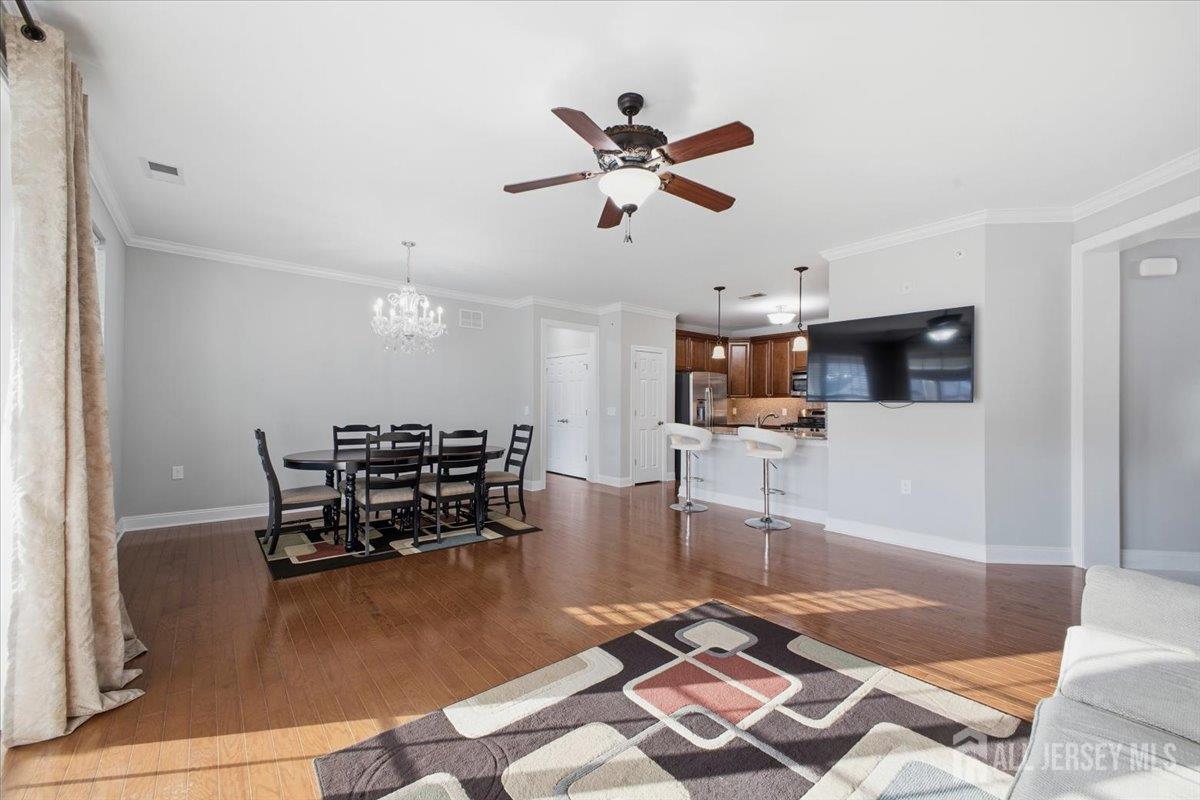 Experience Sophisticated, Low-Maintenance Living in this Beautifully Appointed Andover Model in The Enclave at Canal Walk, One of Central New Jersey's Premier 55+ Active Adult Communities. This Spacious 2 BR, 2 Bath Corner Unit Offers 1,605 Square Feet of Thoughtfully Designed Living Space, with 130 Square Foot Covered Balcony w/ 2 Private Storage Closets, Ideal for Relaxing or Entertaining. New HVAC (2023). New Hot Water Heater (2022). The Southwest Exposure Allows for Abundant Natural Light, While Elevator Access Provides Everyday Ease. The Open-Concept Living Rm, Dining Rm, and Kitchen feature Hardwood Floors and a Breakfast Bar, Creating an Elegant Yet Comfortable Setting for Daily Living and Gatherings. The Primary Suite Serves as a Private Retreat with a W/I Closet and Spa-Style Bath Offering Dual Sinks, Soaking Tub, and Stall Shower. A Laundry Rm off the Foyer Provides Additional Storage. Tile Floors Accent the Foyer, Laundry and Baths, while Wall-Wall Carpeting Adds Warmth to the Bedrooms. All Appliances & Furnishings Included, Allowing for a Seamless Move-In Experience! Two Premium Parking Spaces are Included in the Secure, Climate-Controlled Underground Garage with Elevator Access. Canal Walk offers a Resort-Style Lifestyle with 2 Clubhouses, Indoor & Outdoor Pools, Fitness Center, Sauna and Steam Rms, Walking and Biking Trails, Golf Practice Facilities and an Active Calendar of Clubs and Social Events, all set within Scenic Somerset County with Convenient Access to Shopping, Dining, and Major Travel Routes. Showings begin 12/20. CJMLS 2608602R