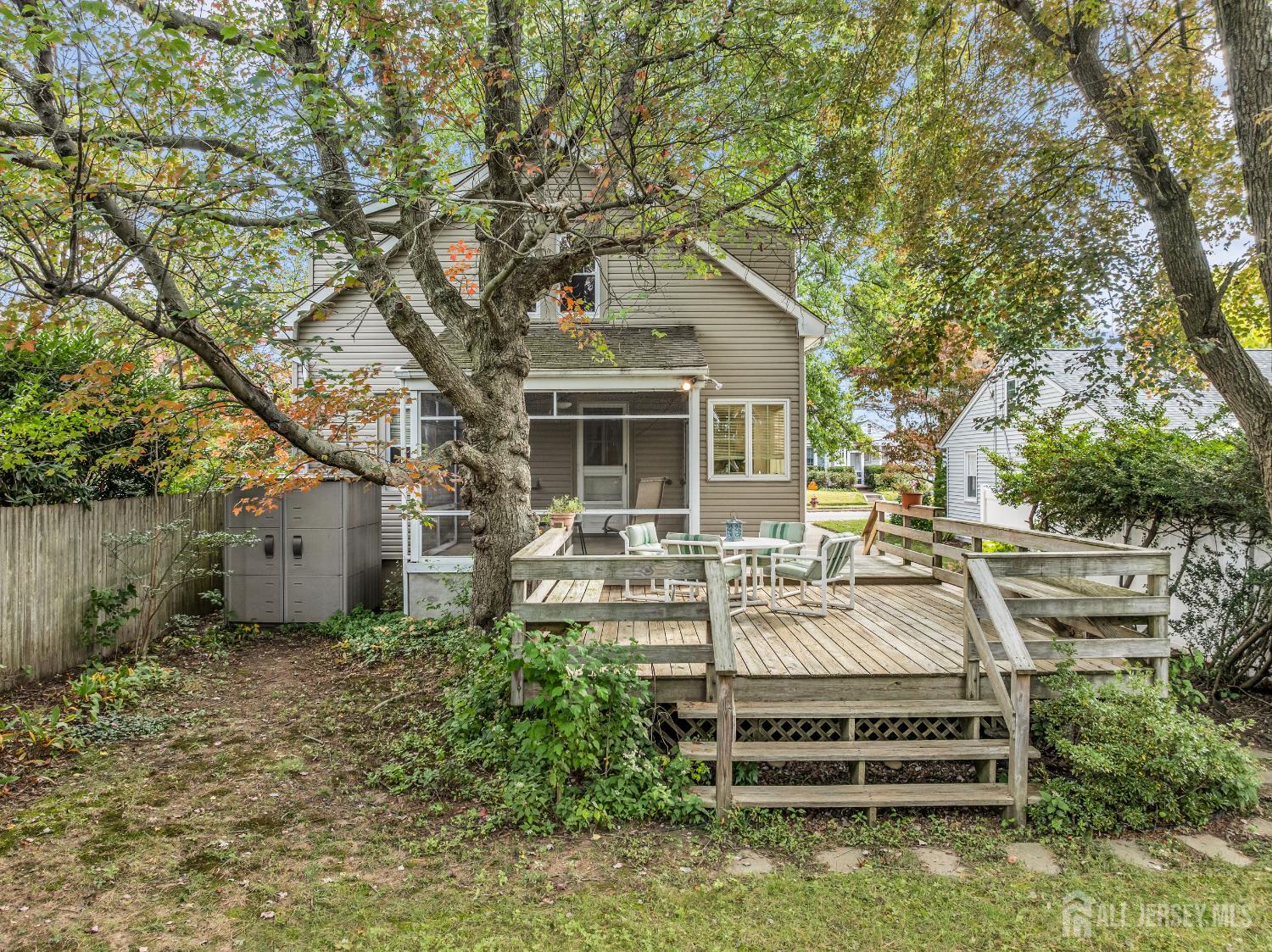 Charming Colonial in Coveted Hamilton Township Welcome to this classic 4-bedroom, 2-bath Colonial nestled in the heart of Hamilton Township! Located in a quiet, well-established neighborhood known for its great schools and exceptional convenience, this home offers the perfect blend of tranquility and accessibility. You're just a short 5-minute drive (1.8 miles) to the Hamilton Train Station for an easy commute to NYC or Philadelphia. A Gardener's Oasis Step outside to a truly serene, secluded setting. The mature landscaping is meticulously maintained, offering year-round beauty. Enjoy the spring blooms of flowering Crape Myrtles and lavender/purple Rhododendrons, and then be swept away by the vibrant Fall colors provided by the red maples, burning bush, and delicate maples. The outdoor entertaining space is a dream: Large Raised Deck: Features built-in bench seating and a perfect overhead canopy of mature red maples, ensuring a cool, shaded spot for summer enjoyment. Screened Porch: Accessible directly off the kitchen, this spacious area provides ample room for a large dining set, making al fresco meals bug-free and breezy. Timeless Quality and Craftsmanship Inside, this home exudes warmth and quality. Enjoy the timeless appeal of solid hardwood oak floors throughout and the striking, unpainted original solid wood chestnut trim that showcases true craftsmanship. The living room custom built-in shelving and a mantle, perfect for cozy evenings. The home has been well-maintained with quality updates, including upgraded windows and a roof of only 9 years. Key interior features include: Large Kitchen: Offers ample cabinet and counter space for the home chef. Window-Lined Breakfast Nook: A bright and cheerful spot with a lovely view of the private backyard. Three Spacious Upstairs Bedrooms: All feature generous closet space, a rare and welcome feature in a home of this style. Don't miss the opportunity to own this Hamilton Township gem! CJMLS 2605487R