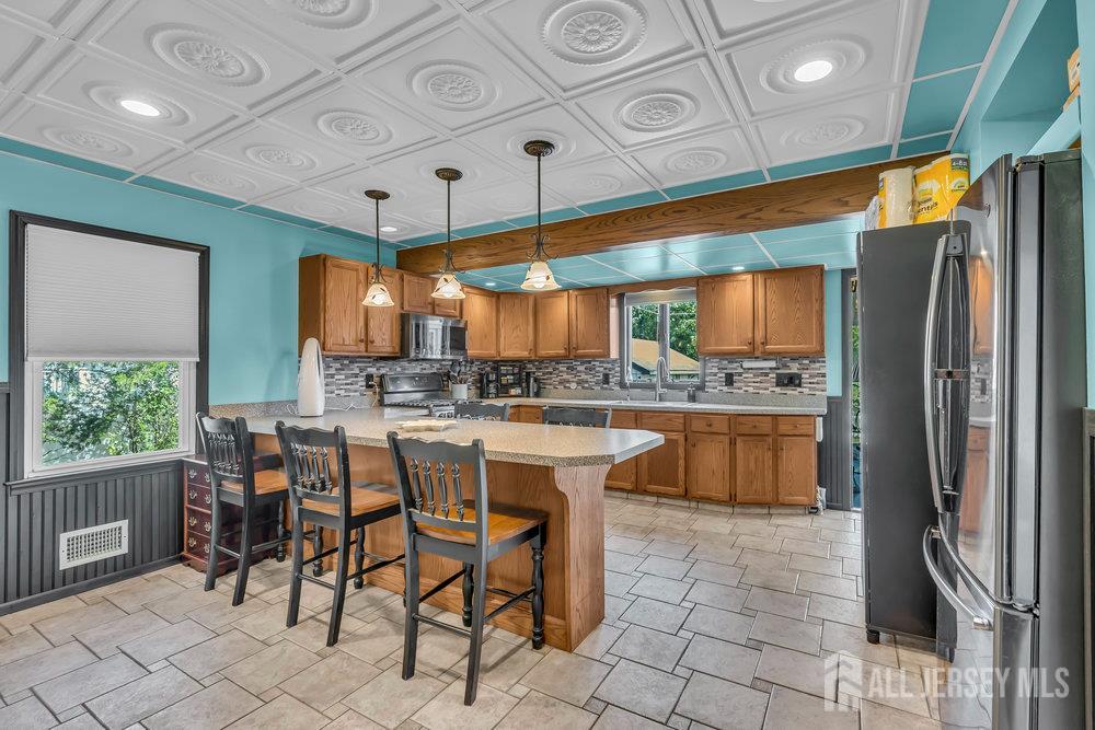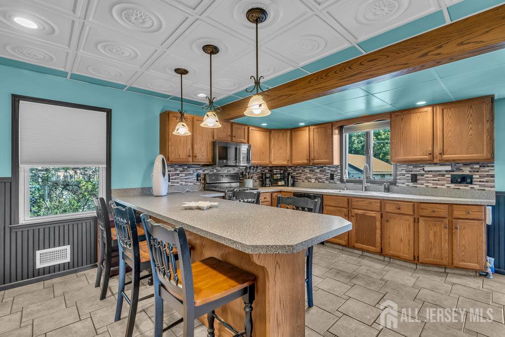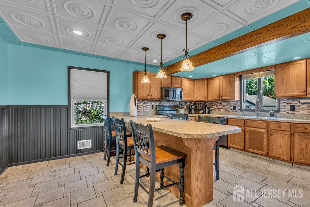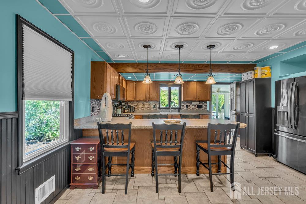 This spacious home offers the perfect opportunity for multi-generational or multi-family living with 4 bedrooms and 2 full baths. A welcoming front deck sets the tone as you step inside to find a blend of hardwood, tile, and plush carpeting that creates a warm yet comfortable atmosphere throughout. The thoughtfully designed main kitchen features rich wooden built-in cabinetry, a breakfast bar, and plenty of space for gathering. A unique highlight is the additional second kitchen, providing exceptional versatility for entertaining or extended living arrangements. The primary suite is a true retreat, complete with a WIC and a private bath featuring a relaxing tub-shower combination. Additional flexible space is available for a home gym, recreation room, or office, catering to a variety of lifestyle needs. Completing this home is a detached 1-car garage, adding both convenience and value. CJMLS 2604691R