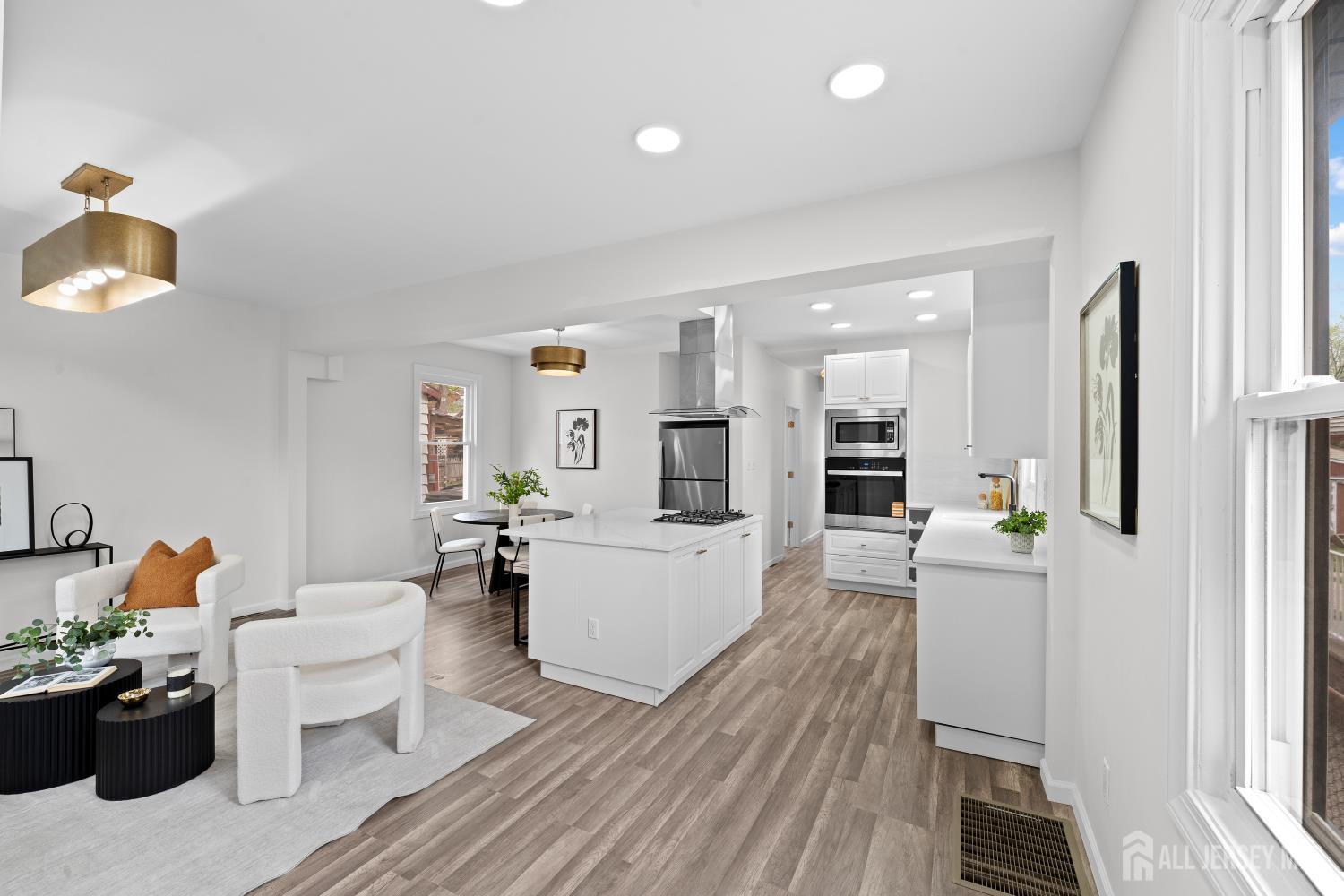 Welcome to this turnkey Highland Park gem where every detail has already been taken care of. This sun-filled 3BR/2BA home blends modern comfort with peace of mind, featuring a new roof, fully updated electrical, new plumbing, multi-zone high-efficiency HVAC, and a high-efficiency water heater. A complete interior renovation, modern lighting, and fresh paint create a clean, polished, move-in-ready feel. The main level offers an open and inviting living and dining area that flows seamlessly into a beautifully updated kitchen with contemporary finishes, sleek fixtures,a built-in dishwasher and and a center island ideal for both everyday living and entertaining. A first-floor bedroom and full bathroom add valuable flexibility for guests, a home office, or multigenerational living. Upstairs, you'll find a spacious primary bedroom, an additional bedroom, and a tastefully renovated full bath. The basement provides versatile bonus space along with the convenience of in-home laundry. Enjoy outdoor living in the fenced yard, perfect for relaxing and entertaining. Ideally located near parks, schools, shopping, dining, Rutgers University, and major commuting routes, this home offers the rare combination of style, function, and convenience. Just unpack and enjoy! CJMLS 2614036R