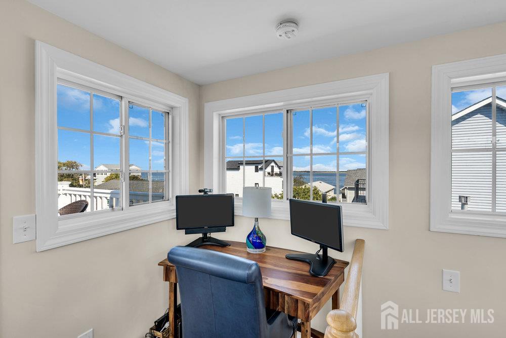 Welcome to your perfect Coastal Escape! This stunning custom-built home boasts breathtaking views of both the Bay and the Ocean. Thoughtfully crafted with luxury and serenity in mind, this three-bedroom home is perfect for commuters, weekenders, or anyone dreaming of life by the water. The open-concept layout features a spacious living area with a custom stone fireplace and large windows that flood the space with natural light. The gourmet kitchen boasts custom cabinetry, SS appliances and a large island perfect for entertaining. Enjoy seamless indoor-outdoor living with three decks, including one on the rooftop, with a loft that offers Panoramic Views of the water. Ideally located just minutes from the Ferry, this property offers the perfect blend of location, design, and Coastal charm. CJMLS 2605644R