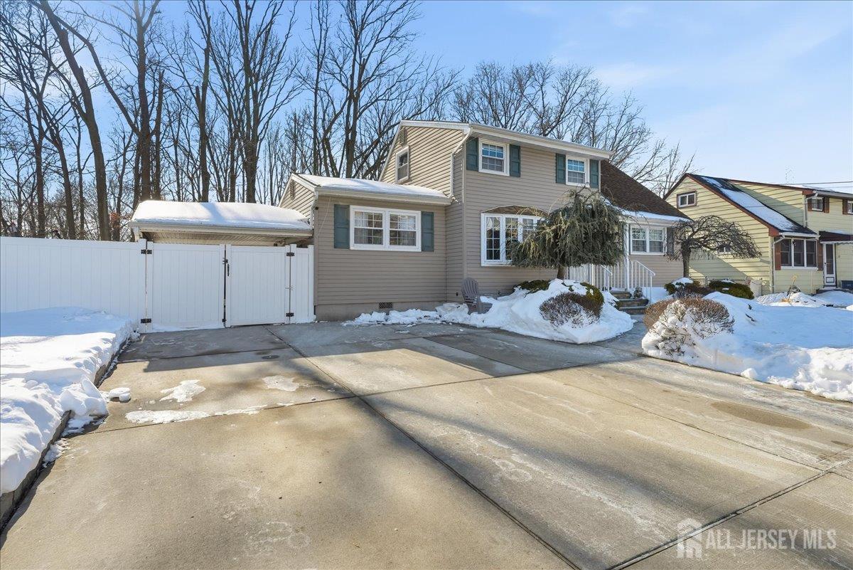 Beautifully maintained expanded Cape located on a quiet cul-de-sac with a rare triple-wide driveway and carport. This home offers 3 bedrooms and 2 full bathrooms. The first level features a bright living room, formal dining room, two bedrooms, and a full bathroom. The second floor includes an additional bedroom, full bathroom, and versatile loft area. The partially finished basement provides ample storage, laundry, and utility space. Enjoy outdoor living in the private, fenced-in backyard with an oversized wooden deck and concrete patio backing to wooded privacy. Conveniently located near shopping, transportation, and major highways with an easy commute to NYC in under 45 minutes. CJMLS 2610565R