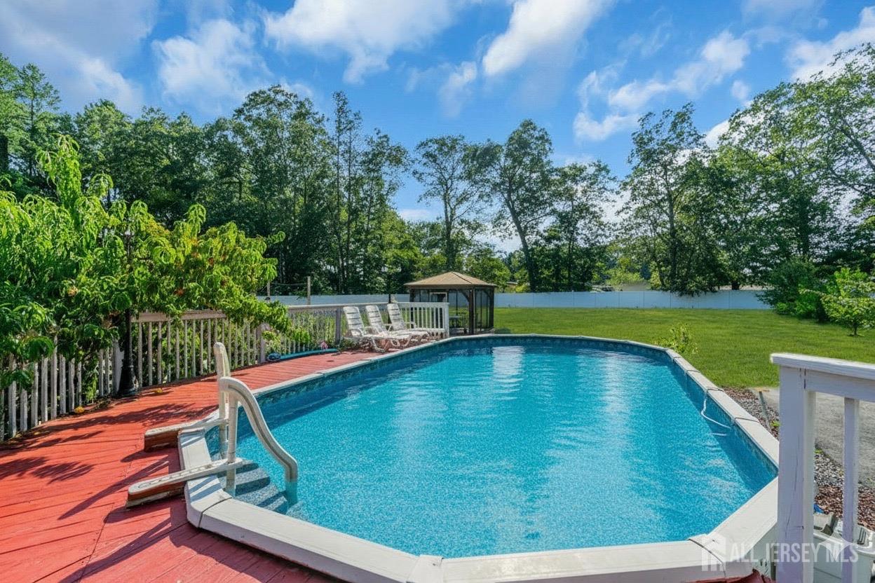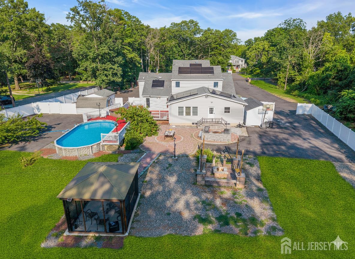 Now available in Jackson, this exceptional home sits on 1.25 acres of tranquil, private land, offering the ideal balance of modern comfort and serene surroundings. The open floor plan is bright and inviting, creating a seamless flow from room to room and extending into a finished daylight basement that's perfect for entertaining or relaxing. A first-floor master suite with an en-suite closet and bath adds convenience and luxury, while a flexible office space can easily serve as an additional bedroom. Designed with today's lifestyle in mind, the home features solar panels, an electric vehicle charging station, and thoughtful upgrades such as a newer roof, custom entry door, and handcrafted railings. Outside, a sunken deck with a pool, hot tub, gazebo, built-in grill, and fire pit provides a true backyard retreat for gatherings or quiet evenings. Every detail has been carefully considered, making this property as functional as it is beautiful. Don't miss the opportunity to see it schedule your private showing today. CJMLS 2602868R