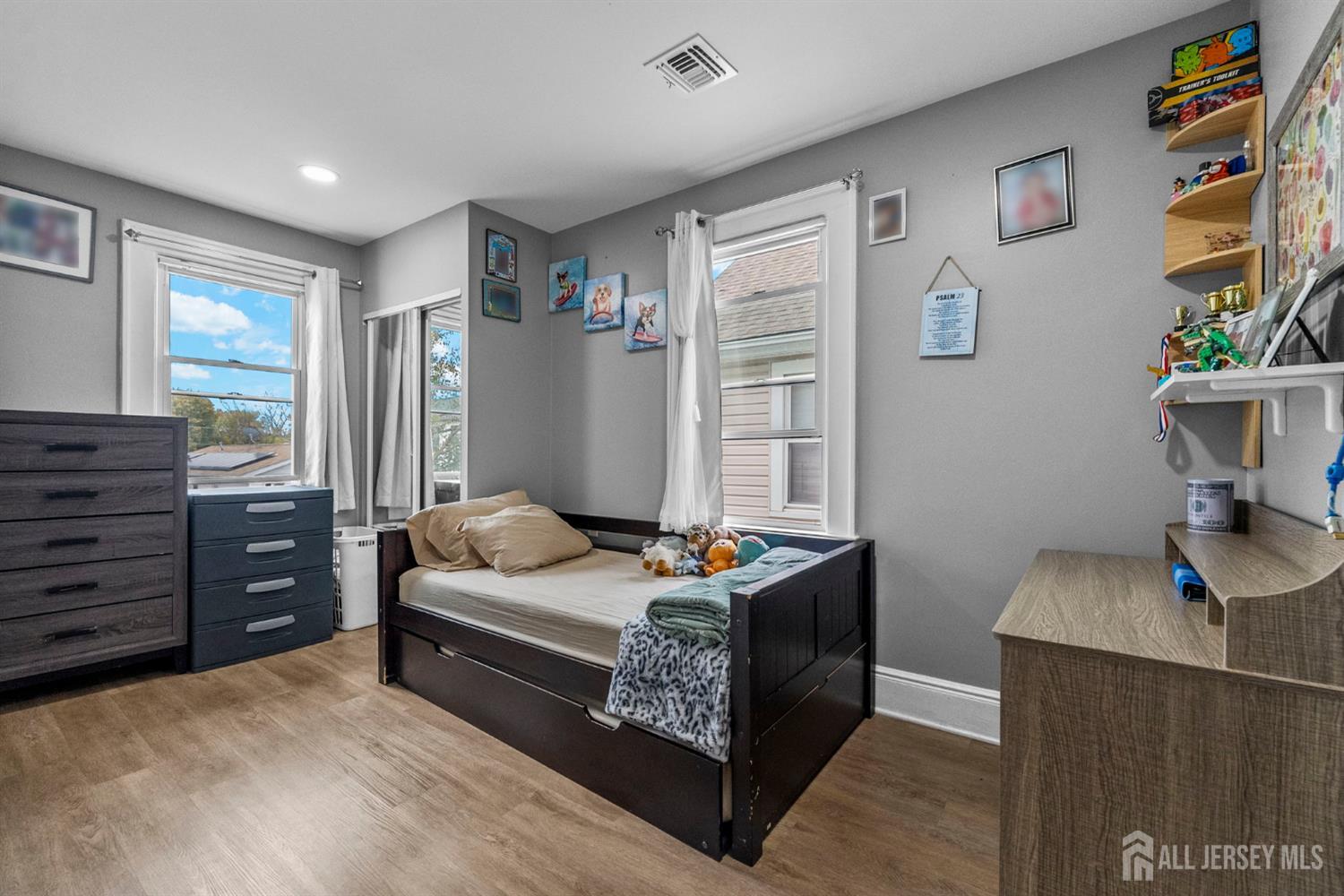 Welcome to 343 Dewitt St A beautifully updated Colonial with a finished walk up attic and basement! This move-in ready home is packed with upgrades that make life easier and more efficient. The first floor features a bright open layout with a large living room, dining area, and an eat-in kitchen with stainless steel appliances. The second floor has 3 bedrooms and a full bath. There is also a finished walk up attic that can be used as an office, playroom, or extra bedrooms. The fully finished basement is a showstopper, complete with a summer kitchen, family room, office space, and a modern bath, perfect for guests or multi-generational living. It even includes a split AC unit that keeps you cool in the summer and provides additional heat during the winter months. Every detail of this home has been thoughtfully updated for modern living, including central AC and heating throughout, luxury vinyl plank flooring, recessed lighting, upgraded plumbing and electric, and fully paid-off solar panels that bring energy efficiency and long-term savings. Outside, enjoy a private driveway, a two-car garage, and a prime location near public transportation, major highways, shopping, and dining. Move right in and start enjoying this beautifully updated home in one of Linden's most convenient and desirable neighborhoods! CJMLS 2606965R