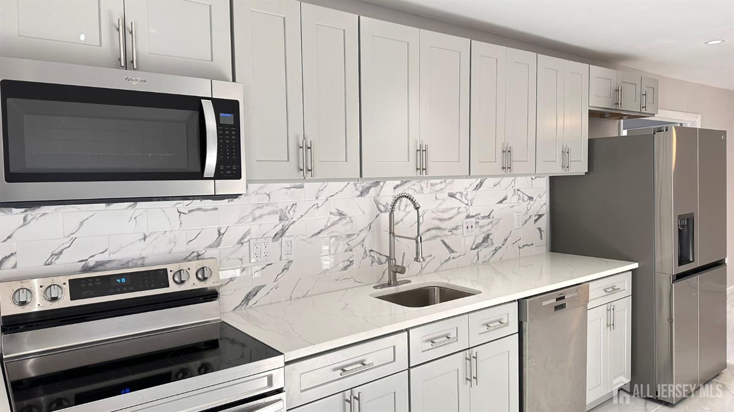 Great recently renovated ranch in Little Egg Harbor featuring 3 bedrooms and 2 full baths. Master Bedroom features en-suite bathroom tiled to the ceiling. New Eat in galley kitchen with Stainless Steel appliances and large fridge, Quartz countertop and tile Backsplash. Central A/C. Large closets. Ceiling fans in bedrooms. Nice backyard features a shed and a brick patio. The backyard is fenced. 2 car width driveway with converted garage. Easy to show. CJMLS 2605456R