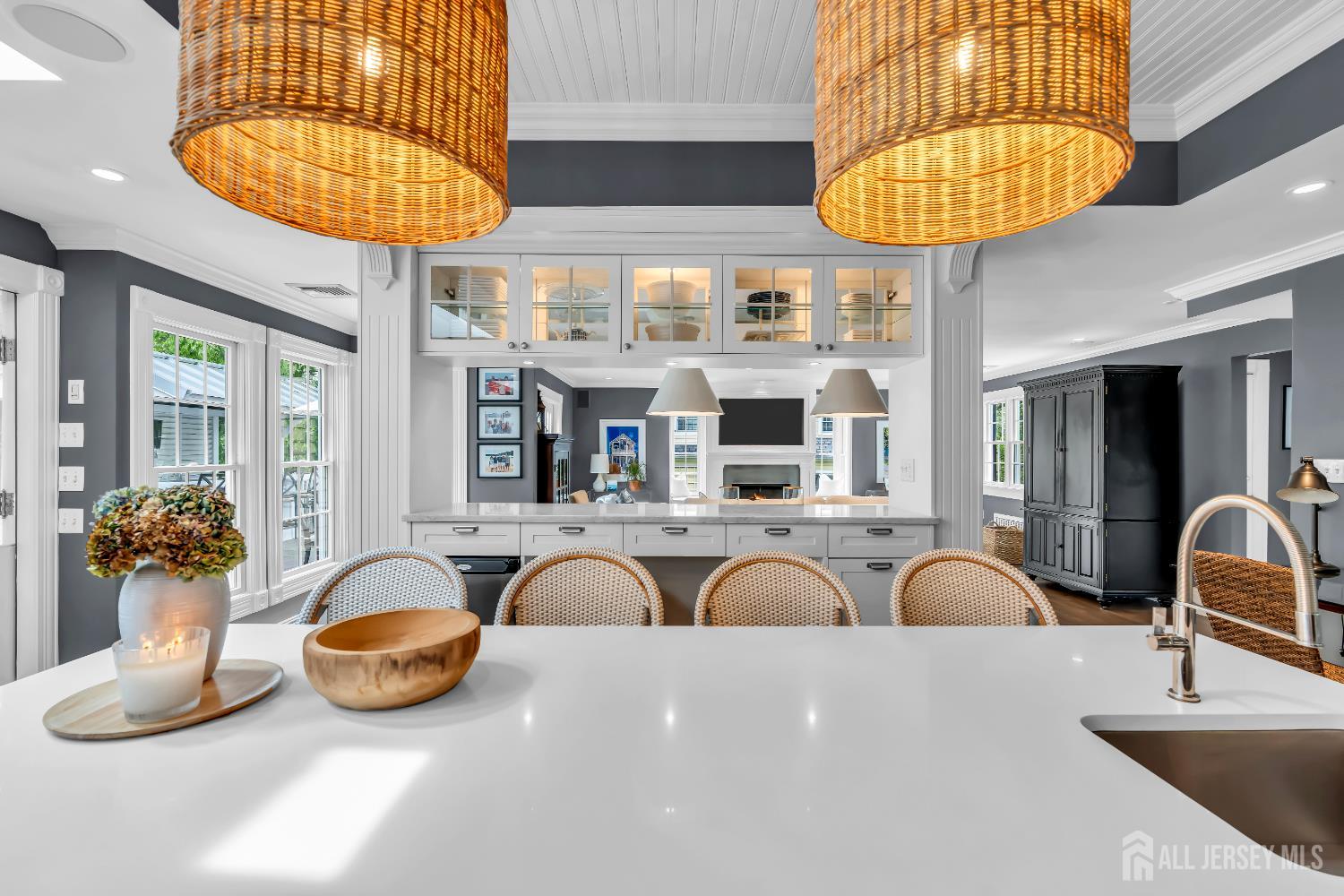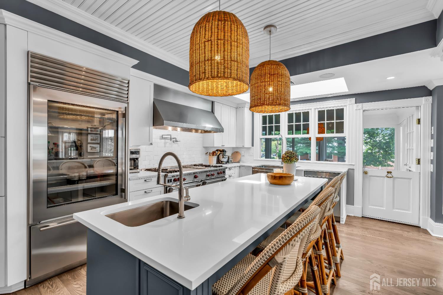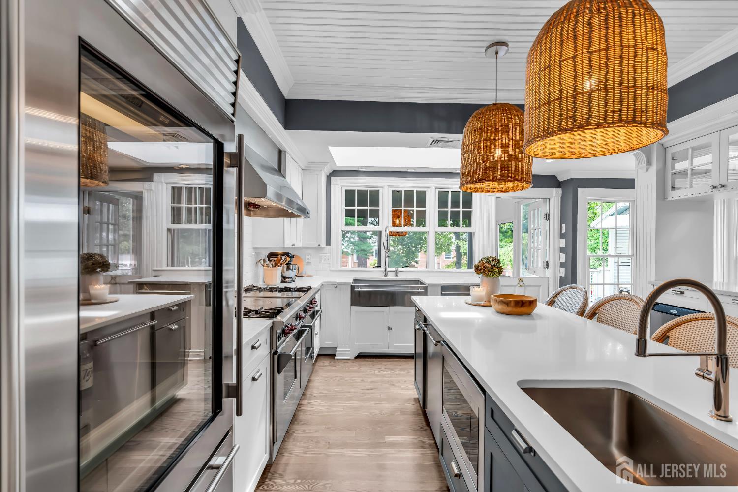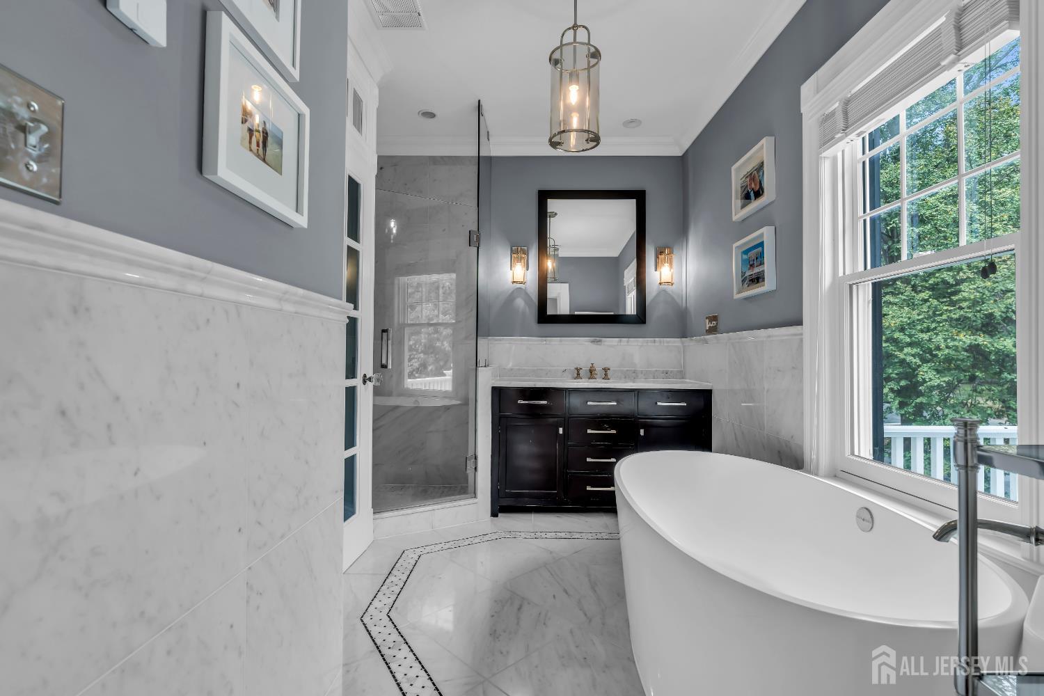 A Historic Gem in Metuchen - Elegance, Character, and Modern Luxury For the first time in 25 years, one of Metuchen's most iconic and desirable homes is available. This beautifully restored historic residence blends timeless architectural elegance with high-end modern updates, offering a rare opportunity to own a piece of the town's rich heritage. Set on professionally landscaped grounds with a charming separate carriage house, the home's stately exterior welcomes you with classic curb appeal. Inside, every detail has been thoughtfully curated to preserve its historic character while embracing contemporary luxury. The Exterior Amenities include carefully replacing the exterior wood with modern James Hardie Board siding and AZEK trim. The Impressive Interior features include 6 Spacious bedrooms, a luxurious primary bedroom with en-suite marble bath and soaking tub Wide plank hardwood floors throughout. Pella windows for energy efficiency and timeless style. Chef's kitchen featuring 60 in Wolf range and Sub-Zero appliances, two sinks, two dishwashers, and two refrigerators. Dutch door in the kitchen, leading to 3 season screened porch adds vintage charm. A Butler's pantry with antique tile, marble surfaces, and custom-built wine fridge. Original linen room on the second floor fully restored Custom remote shades in primary bedroom and custom plantation shutters in second and third floor bedrooms and baths. Two fireplaces for cozy ambiance.Billiard room for entertainment Finished basement with a dedicated wine cellar room Full Dolby THX 5.1 surround sound system for immersive audio Crown moulding throughout adds elegance to every room Carriage House In addition to the stately main house this property includes a separate fully serviced carriage house boasting potential for an 1,100 square foot guest house/home office above multi car garage space Location Highlights Nestled in the heart of Metuchen, this home offers easy access to local parks, shops, dining, and transportation to NY all while maintaining the quaint, community-focused charm that makes Metuchen so beloved. This is more than a home it's a legacy of craftsmanship, comfort, and character. Carriage house photos are digitally enhanced CJMLS 2605321R