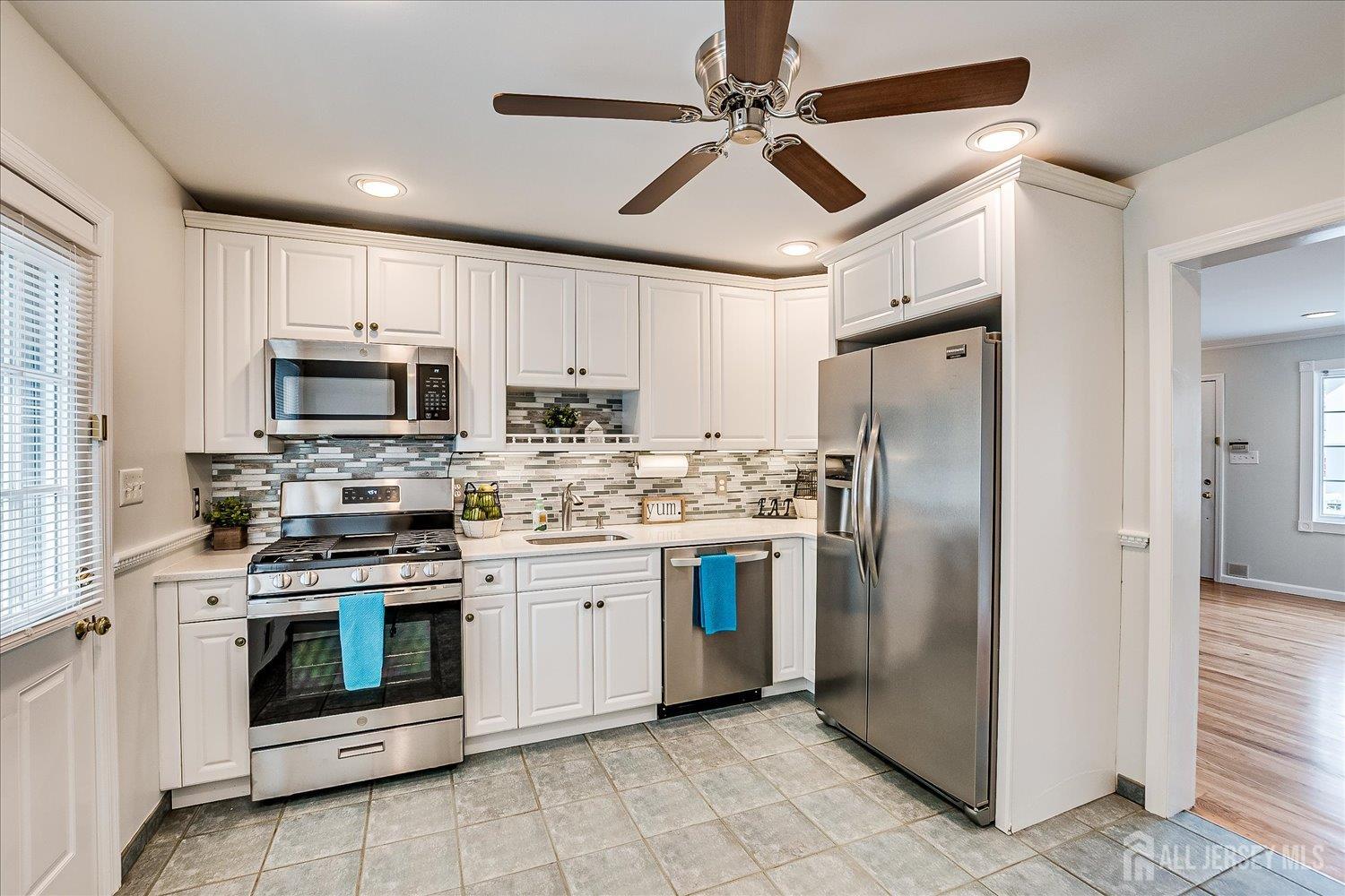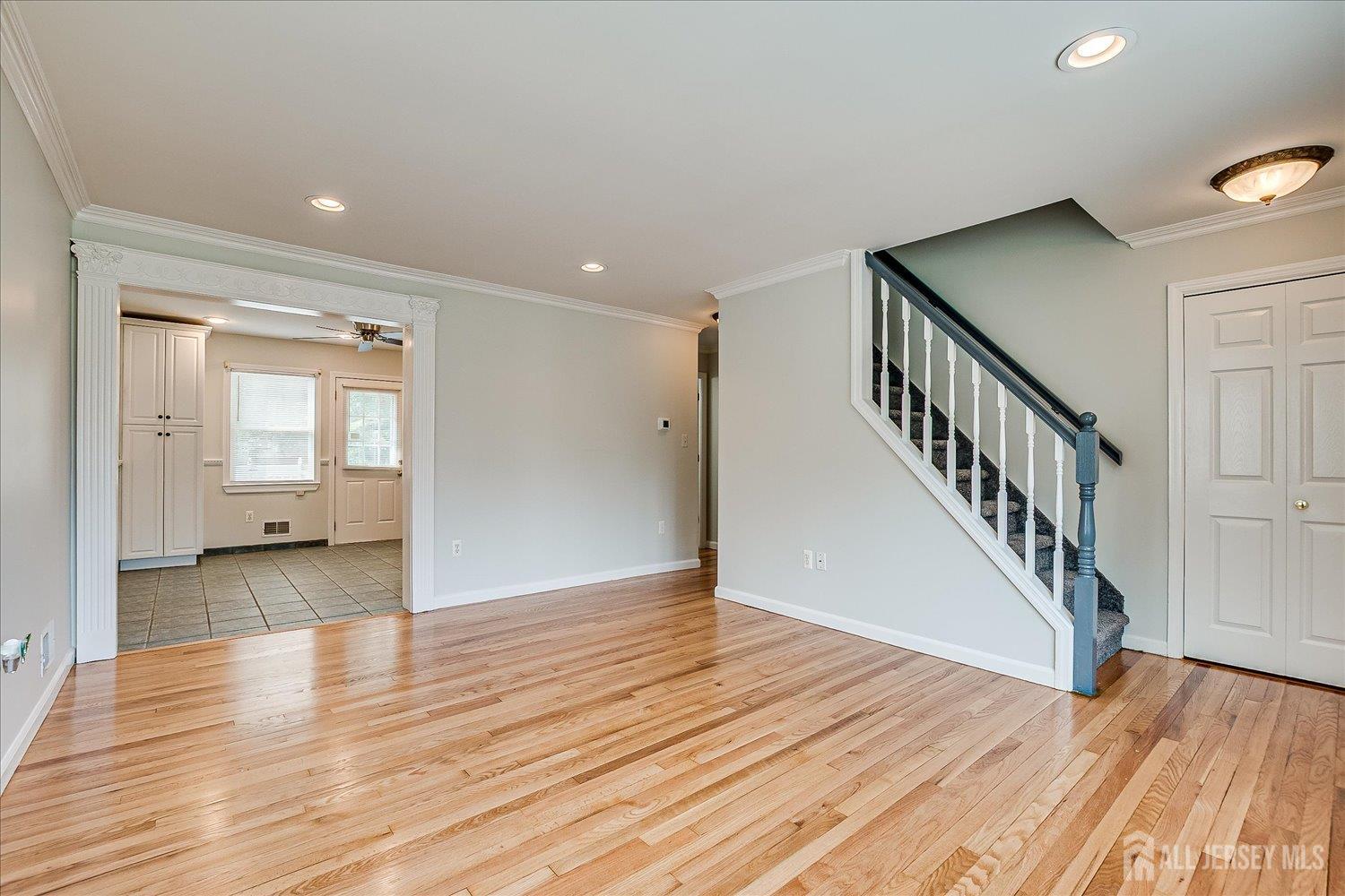 Renovated 3 bedroom, 2 full bath single family home located on a culdesac available September 1. Eat in kitchen with granite counters, new appliances, recessed lights and door that leads to large deck and patio. Newly refinished hardwood floors, first floor primary bedroom, full basement and 1 car attached garage. Fenced yard, storage shed and new high efficiency heating and air system. Owner is a licensed real estate agent. Minutes to NYC train, award winning downtown, bus, shopping and dining. This is a winner!!! CJMLS 2606606R