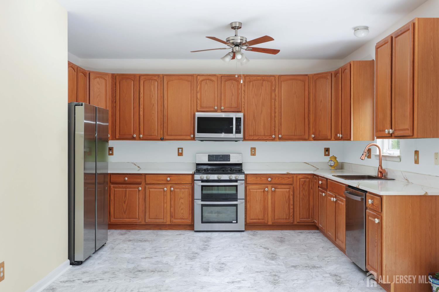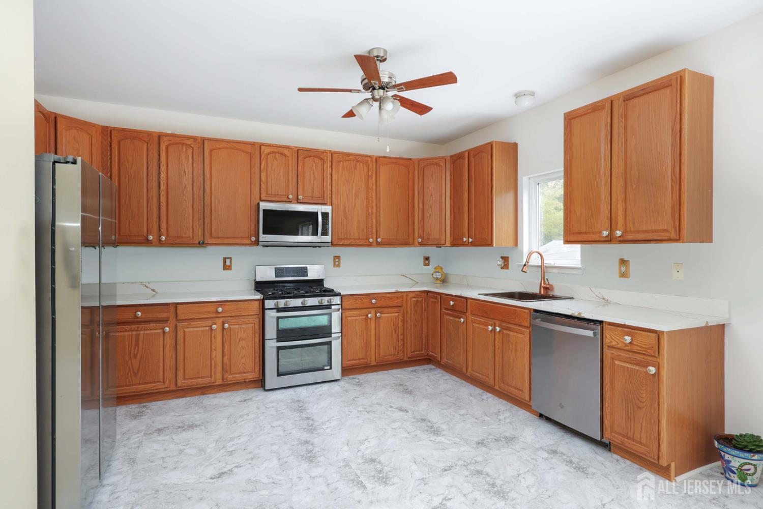 Showings begin Thursday October 30th Welcome Home! Step into this beautifully maintained 4-bedroom, 2.5-bath Coloniala modern gem that's not yet 25 years old! Recently refreshed with new paint, brand-new carpet, and updated flooring throughout the second floor and most of the first, this home feels like new construction. Enjoy the spacious eat-in kitchen featuring stainless steel appliances and a cozy gas fireplace that adds both warmth and charm to the main living area. Every bedroom offers generous space and comfort, giving everyone room to unwind. Need more living space? The full, unfinished basement is huge and ready for your personal touchperfect for a home theater, gym, or playroom. Outside is designed for entertaining with a deck, lower patio area, and plenty of grassy space for gatherings or play. Located in a prime commuter spot, you can reach NYC or Philadelphia in about an hour by train. Plus, you're just minutes from major highways, trains, and commuter busesmaking travel in any direction a breeze. This home truly checks every boxcomfort, convenience, and style. Schedule your visit today and see it for yourself! CJMLS 2605147R