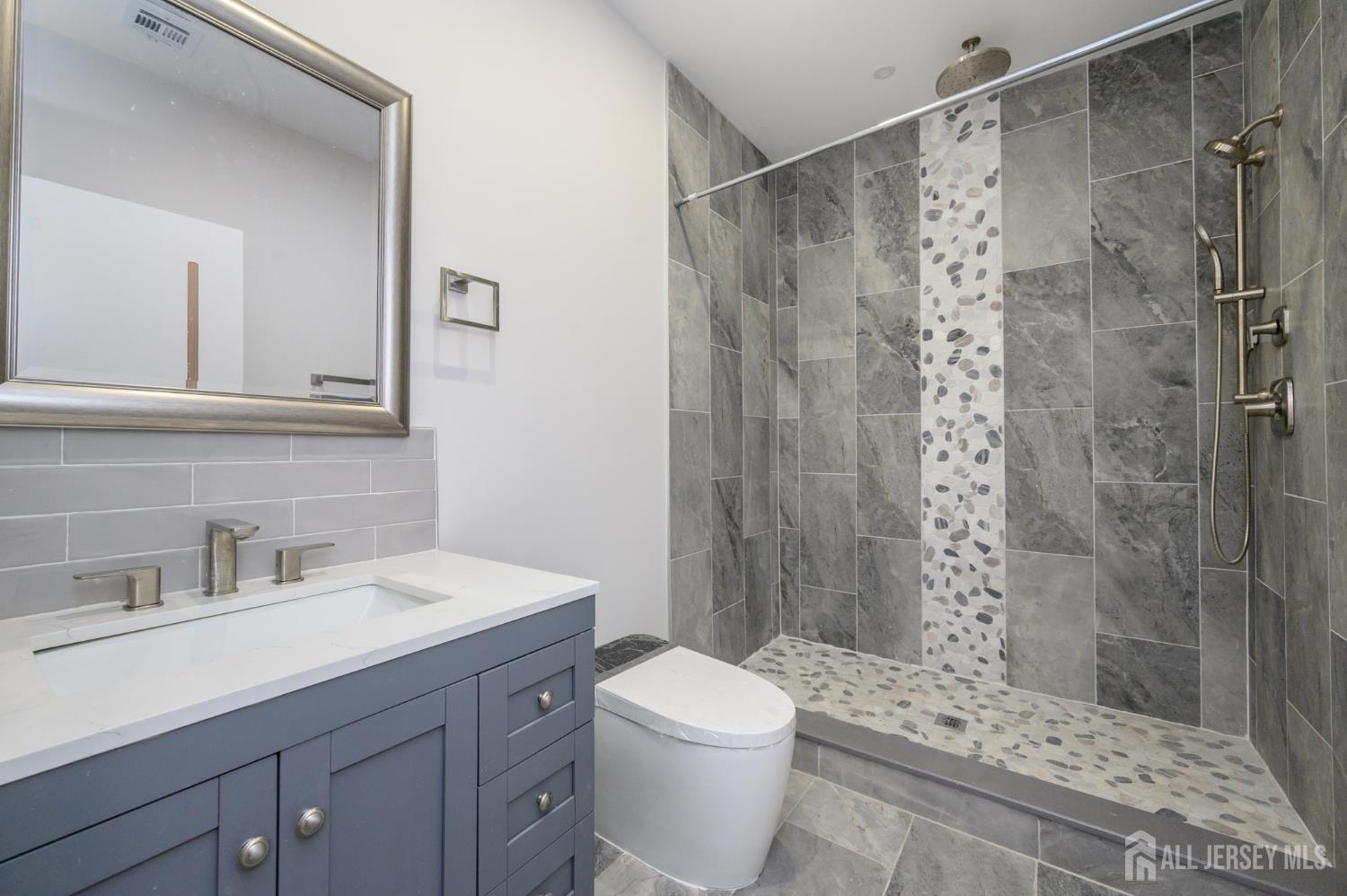 Dream Homes DO Exist! Experience modern, luxury living in this stunning, newly built custom Colonial offering ~5000 sq ft of finished, refined living, boasting 5 bedrooms, 6 full baths, a finished walk-out basement, and big ticket upgrades all through. Thoughtfully designed with comfort, elegance, and functionality in a prime location with plenty of nearby conveniences to indulge. Perfectly appointed on a 1/2 acre lot with curb appeal, this home offers a harmonious blend of contemporary architecture and premium finishes all through. Circular Cambridge paver driveway, stunning stone front, and impressive 8 foot entry door give way to a spacious, sophisticated interior with a dramatic high ceiling foyer, gorgeous marble flooring, generous room sizes, tons of natural light, Andersen windows, gleaming wood flooring, and LED lighting. Expansive, open sun-filled living spaces are enhanced by soaring raised ceilings. The heart of the home is the open gourmet chef's eat-in-kitchen, featuring quartz counters, top of the line luxury SS appliances inc a CAFE fridge, dishwasher, and THOR 6-burner professional stove, pantry, center island, and a sun soaked dinette space with slider to the deck for easy al fresco dining. The home offers 5 generous bedrooms with ample closets, along with 6 full baths, inc a blissful Primary Suite with tray ceiling, dual walk-in closets, and a spa-like bath. Every room is enhanced with European interior doors, elegant European tile finishes, and refined detailing. A convenient 2nd floor laundry room adds everyday ease. Finished third level boasts a versatile home office, private bedroom, and full bath. The huge finished walk-out basement holds a multi-use bonus room, large rec/family room, full bath, and ample storage. Park-like backyard with deck and patio is fenced-in for your privacy and comfort. Plenty of parking here with an attached 2 car garage w/EV charger, detached 2 car garage, and addtl on-site parking for 8+. This home also inc dual high output tankless HWH's, multi-zone heating +cooling, auto irrigation system & premium construction materials. Ideally located close to major highways, shopping, dining, area entertainment, and more! Don't miss out on this exceptional, one of a kind home, blending luxury, comfort, and convenience in a sought after location. Truly, a Turn-Key MUST SEE!! CJMLS 2611256R
