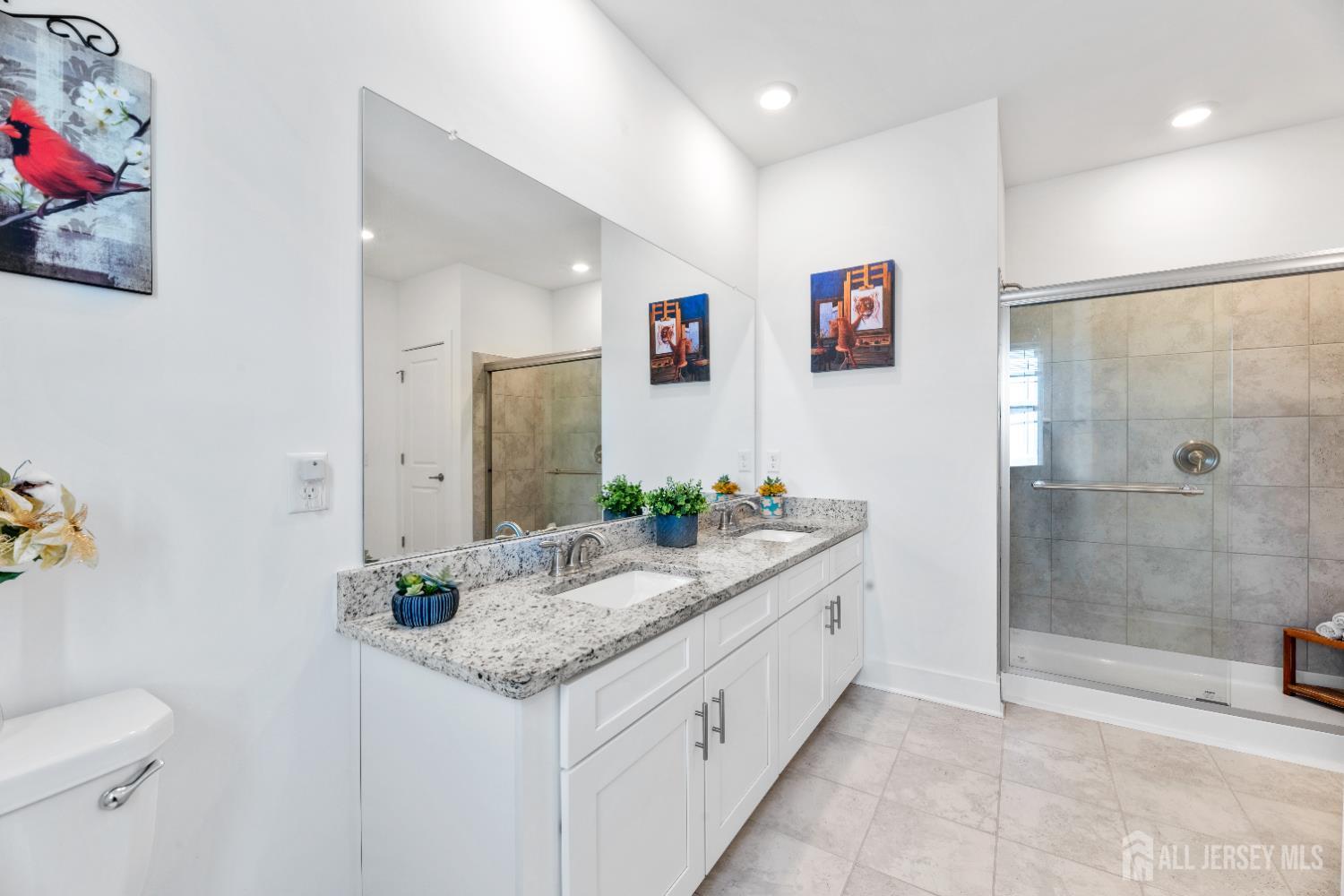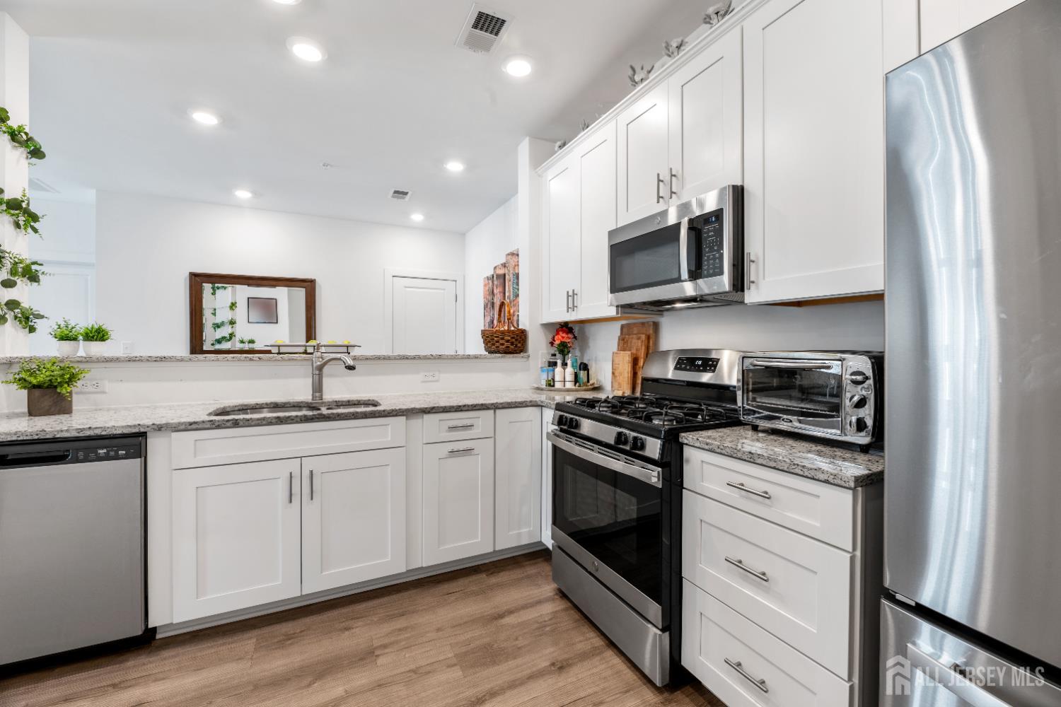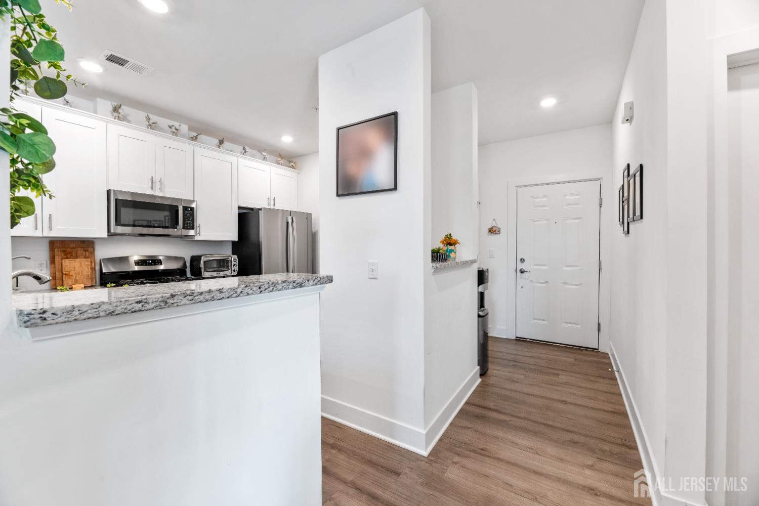Step into this east-facing, beautifully designed condo located on the 2nd floor with elevator access in the desirable Monroe Parke community! This end-unit home is move-in ready, showcasing modern finishes, an open floor plan, and an abundance of natural light. Enjoy a spacious, sunlit living and dining area that flows seamlessly onto your private balcony. The sleek kitchen comes equipped with stainless steel appliances, granite countertops, and generous cabinet space, making it ideal for both daily use and entertaining. Primary Suite: Large and inviting, featuring a custom closet and a spa-like en-suite, bidet toilet seats. Second Bedroom & Bath: Perfect for guests, a home office, or additional living space. Close proximity to shopping, dining, and everyday conveniences, this home offers the perfect mix of comfort, style, and accessibility. Includes clubhouse access with a gym, pool, event space, yoga, and billiard room. CJMLS 2605316R