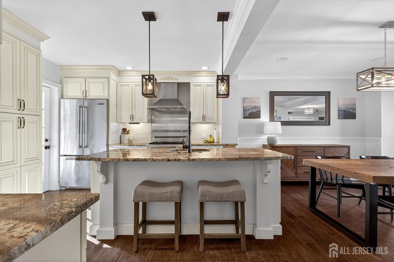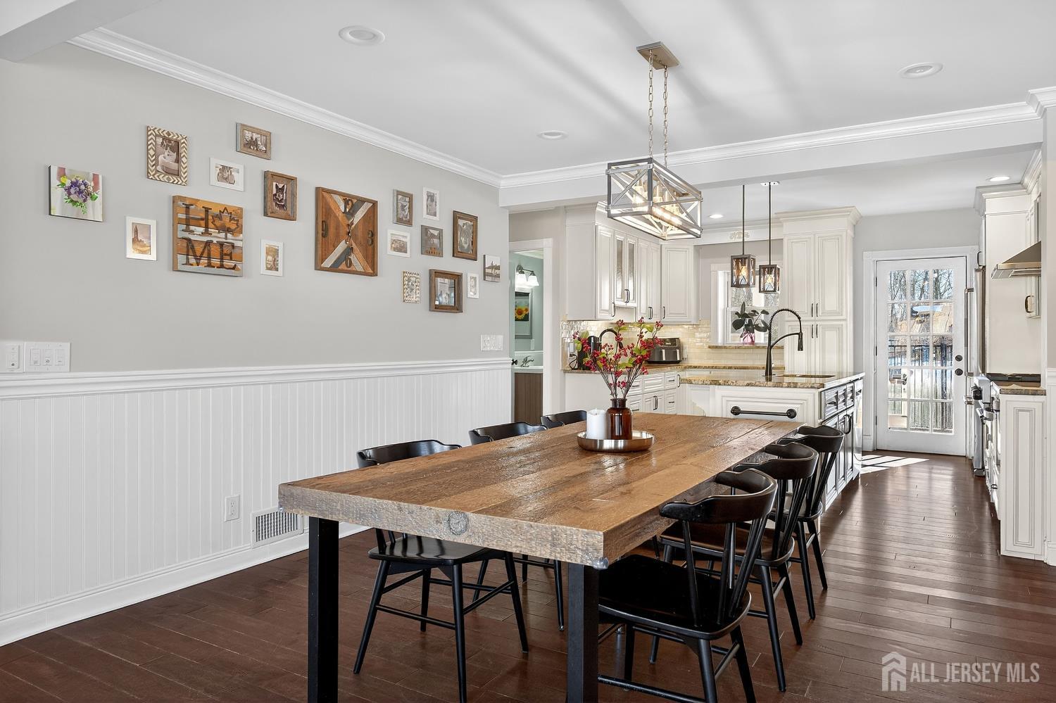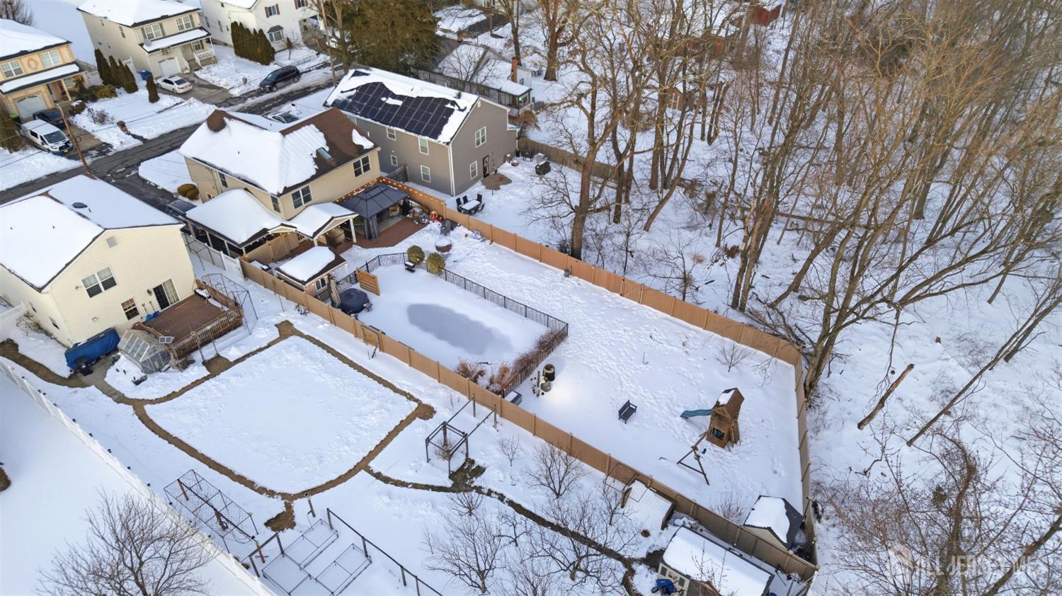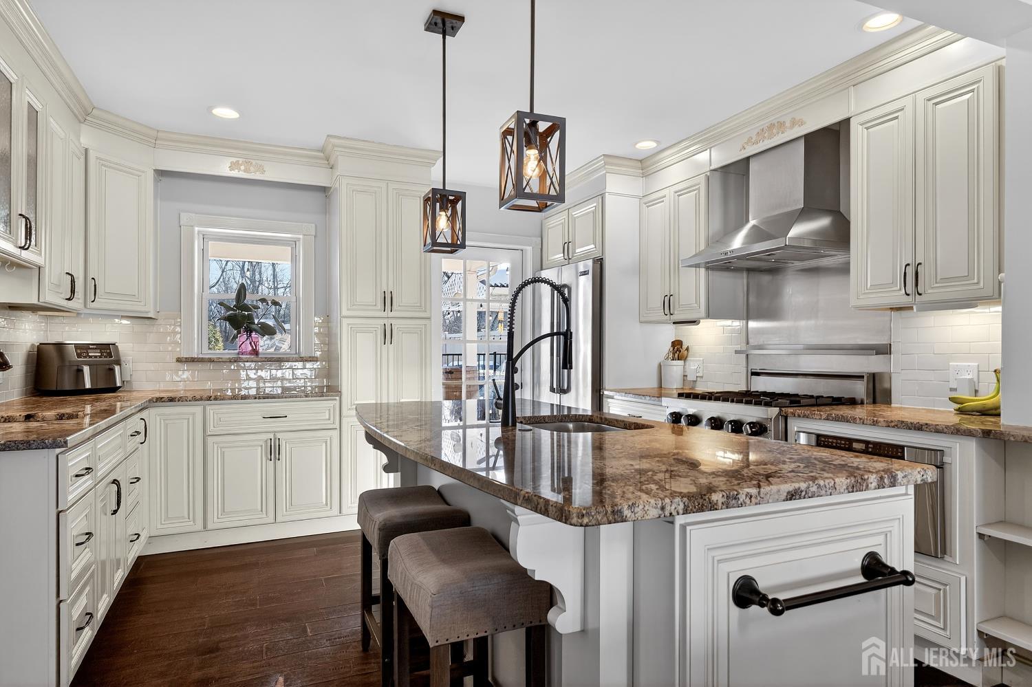 Welcome to this exceptional, move-in-ready home where luxury, technology, and resort-style living come together.Basement was fully renovated in 2008. Including a gracious foyer that opens to a formal living room featuring engineered hardwood floors, crown molding, picture windows, and a vaulted ceiling with fanperfectly staged for elegant entertaining. The open floor plan flows seamlessly into a beautifully appointed dining room with wainscoting, recessed lighting, and crown molding, setting the stage for memorable gatherings. The heart of the home is the chef's kitchen, showcasing antiqued cabinetry with decorative molding, granite countertops, a center island with undermount sink, breakfast bar, tile backsplash, under-cabinet lighting, and a fully upgraded appliance package including a Viking range, Bosch dishwasher, Jenn-Air refrigerator, Zephyr vent hood, and built-in microwave drawer. A walk-in pantry, additional prep area with vegetable sink, and direct backyard access complete this thoughtfully designed space. The adjoining family room offers recessed lighting, crown molding, custom storage, and smart shades, creating a warm yet modern atmosphere. Upstairs, vinyl plank flooring continues throughout. The spacious primary suite features crown molding, recessed lighting, multiple windows, a walk-in organized closet, and two-zone heating and cooling. The fully renovated spa-like primary bath boasts double vanities with granite countertops, an oversized tiled shower with rain and handheld sprayers, soaking tub, water closet, and elegant finishes throughout. Additional bedrooms are generously sized with ample closets, while the updated hall bath includes a skylight, bidet, and tiled tub/shower. Convenient second-floor laundry completes this level. The finished basement offers a recreation room with luxury vinyl flooring, crown molding, half bath, and abundant storage, plus French drains, sump pump, and newer HVAC systems (2023). Step outside to your private backyard oasis featuring a covered veranda, composite decking, paver patios, gazebo with electric and heaters, outdoor movie setup, tiki bar, fire pits, and a heated saltwater pool with waterfallsfully fenced and backing to a serene wooded area. Perfect for entertaining or relaxing year-round. Additional highlights include smart home features throughout, Nest thermostat, smart switches and shades, security cameras, updated windows and doors, newer pool equipment, carport with recessed lighting, and meticulous attention to detail at every turn. This home offers the ultimate blend of comfort, style, and outdoor livingtruly one you don't want to miss. CJMLS 2609952R
