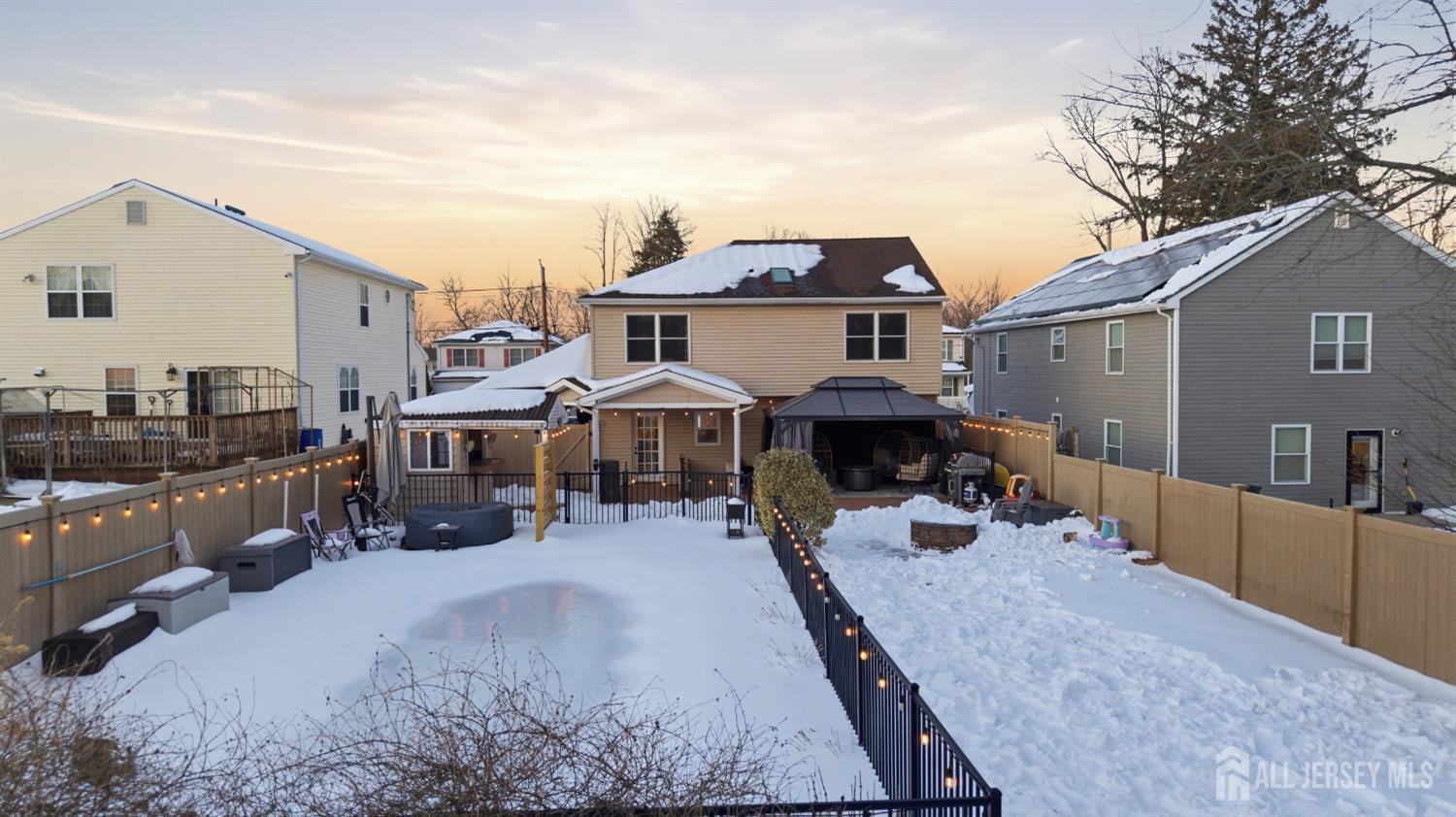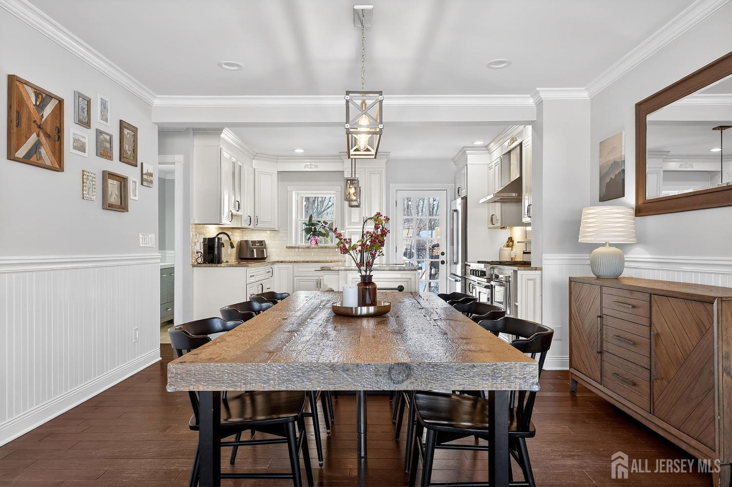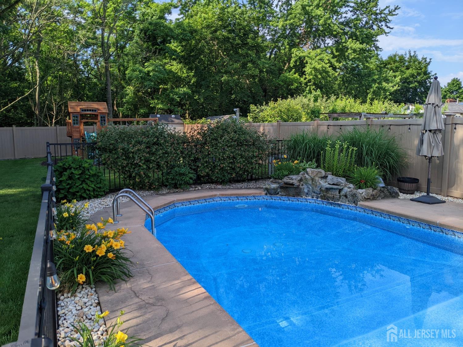 Welcome to this exceptional, move-in-ready home where luxury, technology, and resort-style living come together.Basement was fully renovated in 2008. Including a gracious foyer that opens to a formal living room featuring engineered hardwood floors, crown molding, picture windows, and a vaulted ceiling with fanperfectly staged for elegant entertaining. The open floor plan flows seamlessly into a beautifully appointed dining room with wainscoting, recessed lighting, and crown molding, setting the stage for memorable gatherings. The heart of the home is the chef's kitchen, showcasing antiqued cabinetry with decorative molding, granite countertops, a center island with undermount sink, breakfast bar, tile backsplash, under-cabinet lighting, and a fully upgraded appliance package including a Viking range, Bosch dishwasher, Jenn-Air refrigerator, Zephyr vent hood, and built-in microwave drawer. A walk-in pantry, additional prep area with vegetable sink, and direct backyard access complete this thoughtfully designed space. The adjoining family room offers recessed lighting, crown molding, custom storage, and smart shades, creating a warm yet modern atmosphere. Upstairs, vinyl plank flooring continues throughout. The spacious primary suite features crown molding, recessed lighting, multiple windows, a walk-in organized closet, and two-zone heating and cooling. The fully renovated spa-like primary bath boasts double vanities with granite countertops, an oversized tiled shower with rain and handheld sprayers, soaking tub, water closet, and elegant finishes throughout. Additional bedrooms are generously sized with ample closets, while the updated hall bath includes a skylight, bidet, and tiled tub/shower. Convenient second-floor laundry completes this level. The finished basement offers a recreation room with luxury vinyl flooring, crown molding, half bath, and abundant storage, plus French drains, sump pump, and newer HVAC systems (2023). Step outside to your private backyard oasis featuring a covered veranda, composite decking, paver patios, gazebo with electric and heaters, outdoor movie setup, tiki bar, fire pits, and a heated saltwater pool with waterfallsfully fenced and backing to a serene wooded area. Perfect for entertaining or relaxing year-round. Additional highlights include smart home features throughout, Nest thermostat, smart switches and shades, security cameras, updated windows and doors, newer pool equipment, carport with recessed lighting, and meticulous attention to detail at every turn. This home offers the ultimate blend of comfort, style, and outdoor livingtruly one you don't want to miss. CJMLS 2609952R