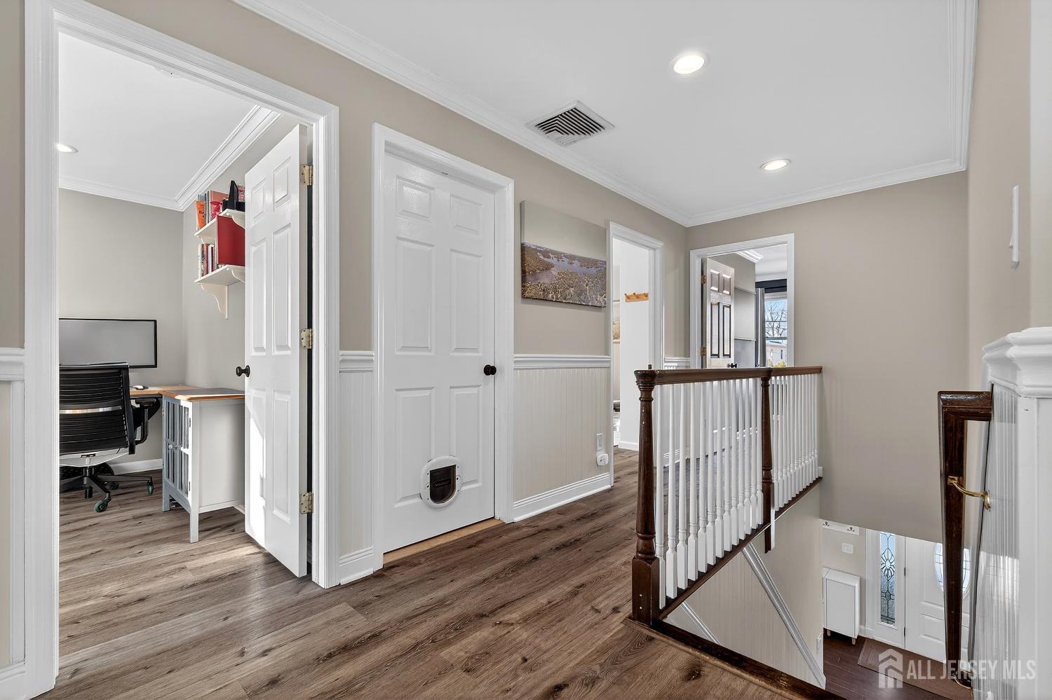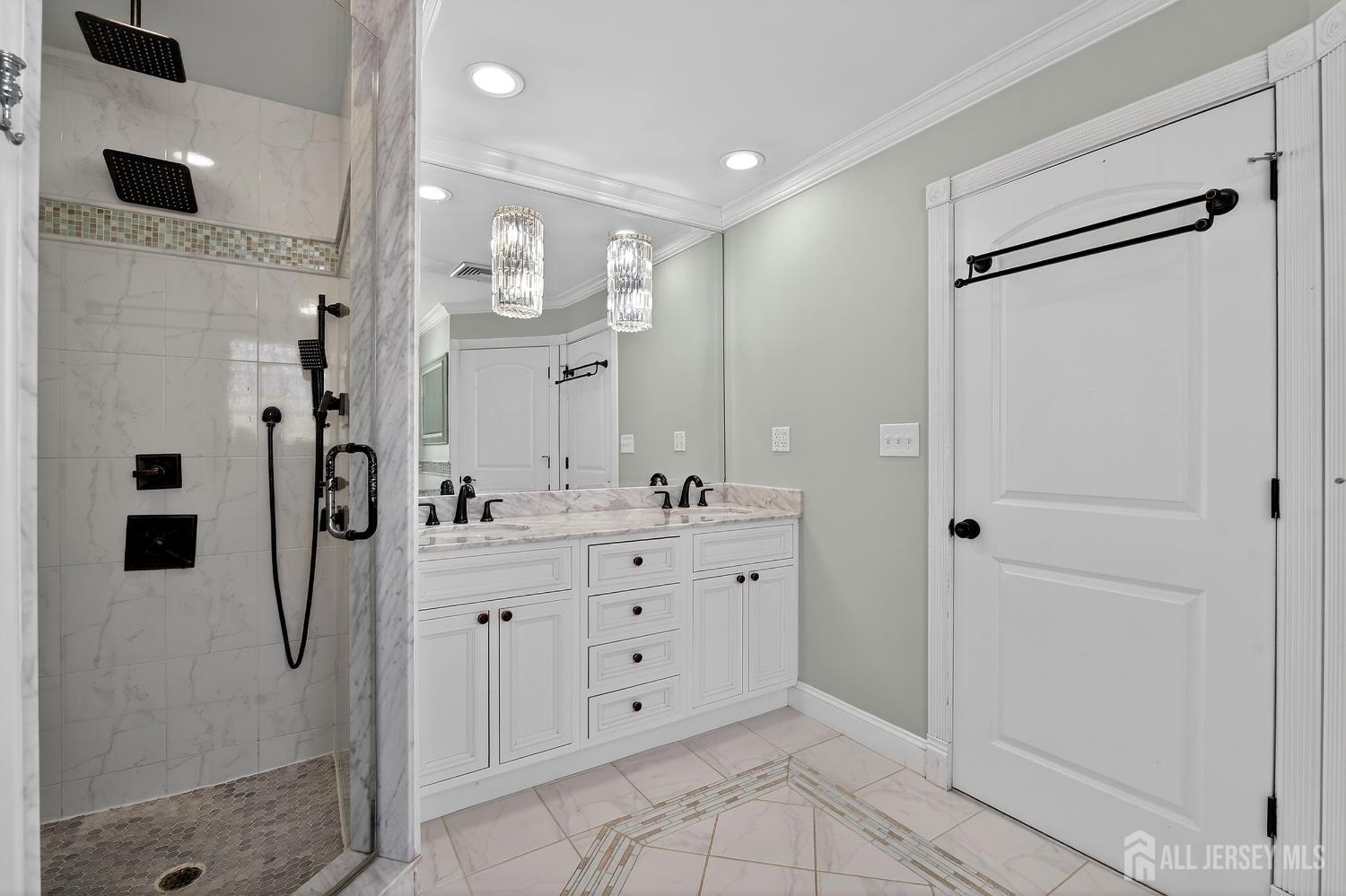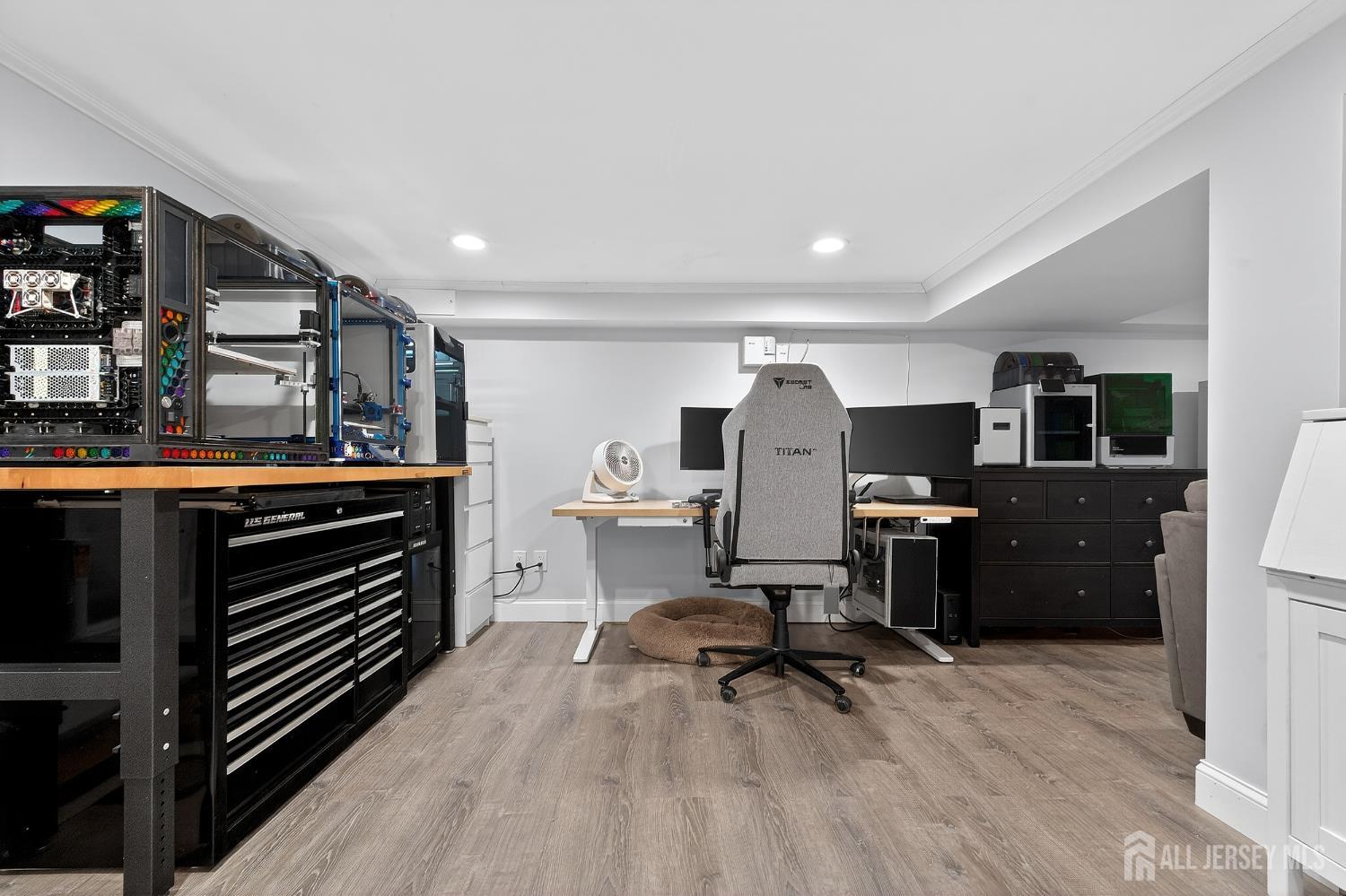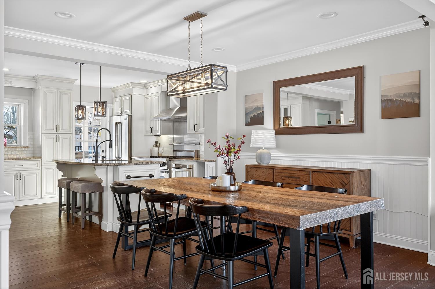 Welcome to this exceptional, move-in-ready home where luxury, technology, and resort-style living come together.Basement was fully renovated in 2008. Including a gracious foyer that opens to a formal living room featuring engineered hardwood floors, crown molding, picture windows, and a vaulted ceiling with fanperfectly staged for elegant entertaining. The open floor plan flows seamlessly into a beautifully appointed dining room with wainscoting, recessed lighting, and crown molding, setting the stage for memorable gatherings. The heart of the home is the chef's kitchen, showcasing antiqued cabinetry with decorative molding, granite countertops, a center island with undermount sink, breakfast bar, tile backsplash, under-cabinet lighting, and a fully upgraded appliance package including a Viking range, Bosch dishwasher, Jenn-Air refrigerator, Zephyr vent hood, and built-in microwave drawer. A walk-in pantry, additional prep area with vegetable sink, and direct backyard access complete this thoughtfully designed space. The adjoining family room offers recessed lighting, crown molding, custom storage, and smart shades, creating a warm yet modern atmosphere. Upstairs, vinyl plank flooring continues throughout. The spacious primary suite features crown molding, recessed lighting, multiple windows, a walk-in organized closet, and two-zone heating and cooling. The fully renovated spa-like primary bath boasts double vanities with granite countertops, an oversized tiled shower with rain and handheld sprayers, soaking tub, water closet, and elegant finishes throughout. Additional bedrooms are generously sized with ample closets, while the updated hall bath includes a skylight, bidet, and tiled tub/shower. Convenient second-floor laundry completes this level. The finished basement offers a recreation room with luxury vinyl flooring, crown molding, half bath, and abundant storage, plus French drains, sump pump, and newer HVAC systems (2023). Step outside to your private backyard oasis featuring a covered veranda, composite decking, paver patios, gazebo with electric and heaters, outdoor movie setup, tiki bar, fire pits, and a heated saltwater pool with waterfallsfully fenced and backing to a serene wooded area. Perfect for entertaining or relaxing year-round. Additional highlights include smart home features throughout, Nest thermostat, smart switches and shades, security cameras, updated windows and doors, newer pool equipment, carport with recessed lighting, and meticulous attention to detail at every turn. This home offers the ultimate blend of comfort, style, and outdoor livingtruly one you don't want to miss. CJMLS 2609952R