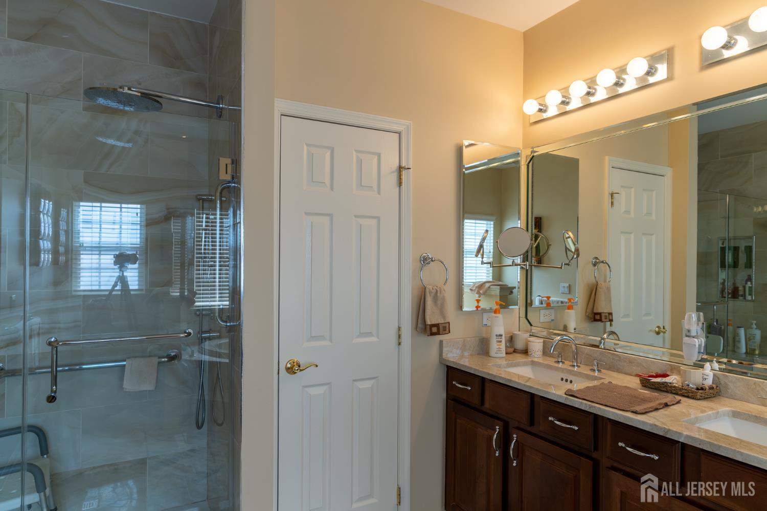 Interior photos to come. Renaissance at Monroe is a very popular community where residents are very friendly and welcoming. This is an expanded Wellington model offering a very open diversified floor plan. Emter into the foyer where the library/den and laundry room are situated. the library/den features built-in furniture and a storage bench. Continue into the open area which is the formal dining room and formal living room. Continue into the wonderful, upgraded kitchen/breakfast area with a cathedral ceiling shared with the family room. The master bedroom suite consists of a large bright room with an expanded closet and a full upgraded bathroom. The bathroom upgrades include a double vanity with upgraded sinks, upgraded stall shower with frameless doors, rain and handheld shower heads, and a bench, also in this bathroom are heat lamps, a linen closet and soaking tub which will make you feel like you are in your own private spa. The 2nd bedroom and 2nd upgraded bathroom, a 2-car attached garage, an expanded paver patio with a built-in gas grill, the cul-de-sac location backing to trees complete this package. This home recently installed a beautiful luxury vinyl flooring (resembling hardwood) throughout the entire home. Recessed lighting, some artwork will be included, a safe bolted to the floor, and blinds throughout are some of the wonderful features. The clubhouse offers great activities, clubs, a fitness center, indoor/outdoor pools, a ballroom, meeting room, game rooms. Meet new friends for lunch in the clubhouse luncheonette. Play tennis, pickleball, bocci and so many other things to do. Welcome! CJMLS 2610079R