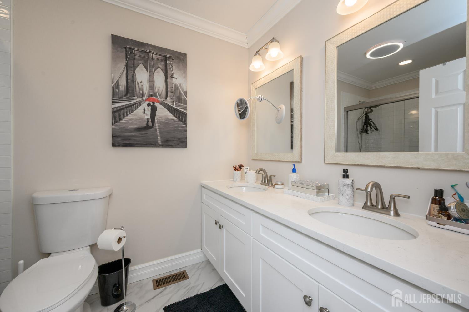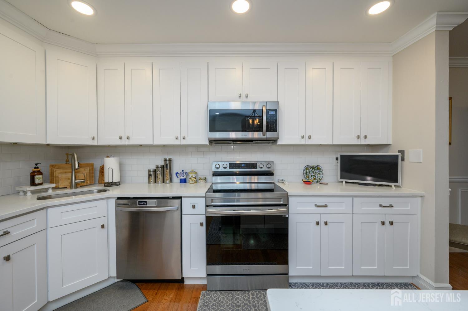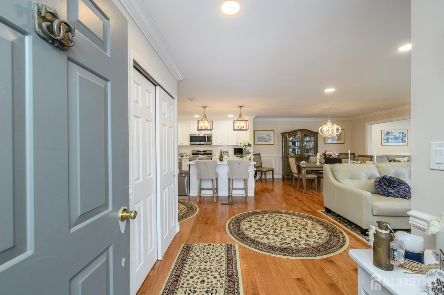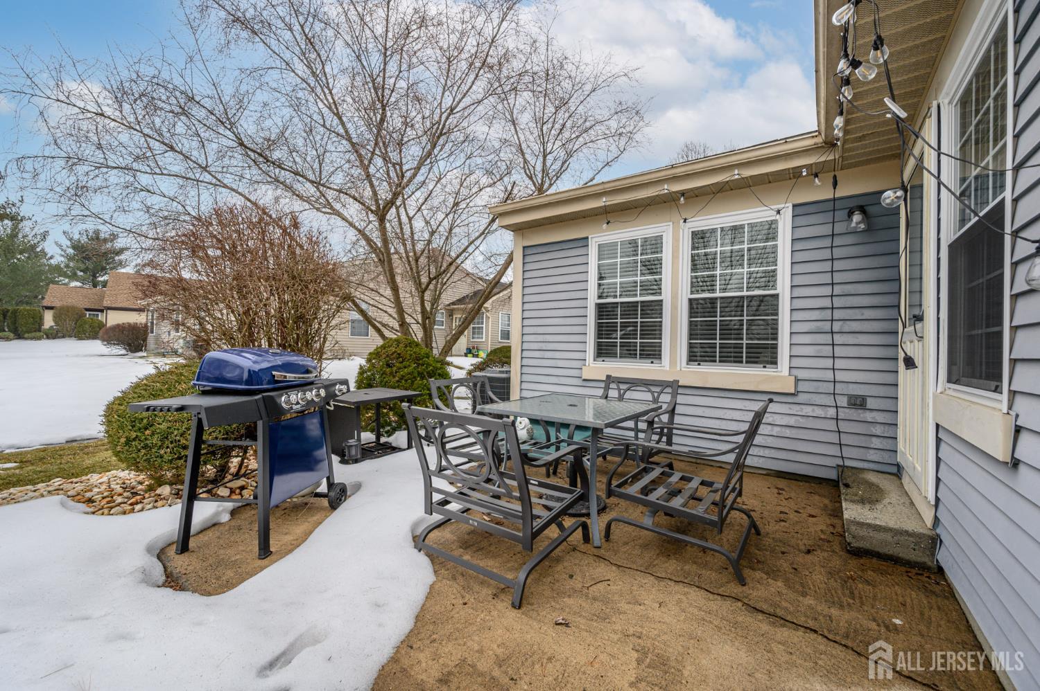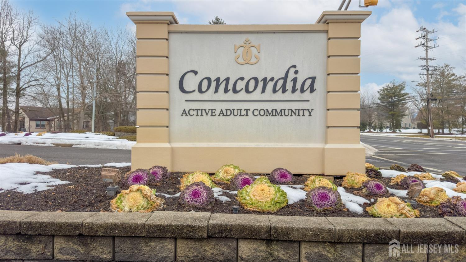 Concordia at Monroe's highly sought after 55+ Community premieres this beautiful 2 Bed 2 Bath Brandon model with bonus Den, Master Suite, and 1 Car Garage, sure to impress! Newly, fully renovated in 2023, this turn-key home offers the perfect blend of luxurious, comfortable living with modern conveniences, meticulously maintained and waiting for you. Step in to find a spacious and sophisticated interior with generous room sizes, gleaming hardwood flooring, tons of natural light along with LED recessed lighting, elegant custom moldings, and an open concept layout for seamless living and entertaining. The sizable formal living room flows right into the elegant dining room, making dinner parties a breeze. Gorgeous open eat-in-kitchen will delight any home chef, offering energy efficient state of the art SS appliances, quartz counters that shine, and a center island that is ideal for gathering. Each bedroom is generous in size, adorned with lighted ceiling fans, inc the spacious Master Suite, offering its own bay window with seating, and private full ensuite bath with dual sinks and accessible stall shower with seating, equipped with bluetooth speaker and lighting. The 2nd full bath features a blissful soaking tub. Convenient laundry room and versatile den with lighted ceiling fan, which makes a great home office, rounds out the interior of this gem. Quaint rear patio is perfect for enjoying your morning coffee or summer grilling. 1 car garage with plenty of parking, and expertly landscaped stone front and side boasts curb appeal. HOA covers the cable, wi-fi-, and security system. Oversized heat pump handles harsh winters and keeps costs down! All in a desirable, gated community with plenty of amenities to indulge, like the Clubhouse with fitness center, indoor & outdoor pools, 18 hole golf course, billiards, a ballroom, pickleball, and much, much, more! Don't miss out! Truly, a Move-in-Ready MUST SEE!! CJMLS 2611091R