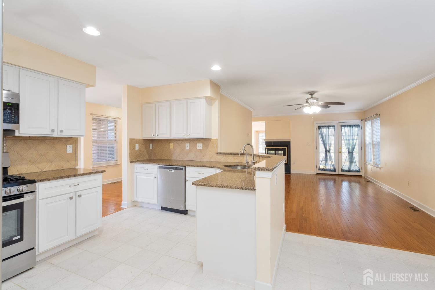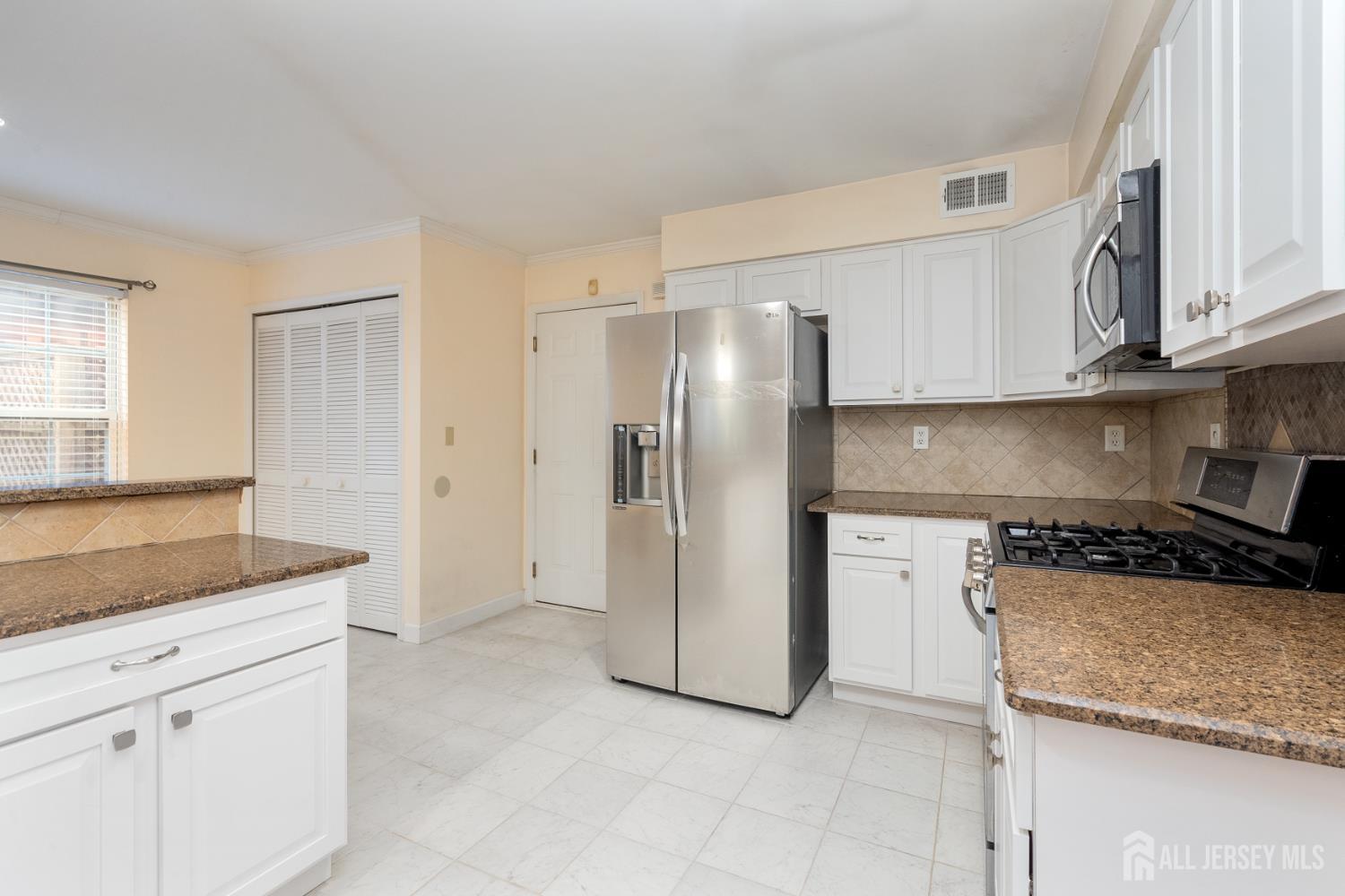 Experience Luxury & Tranquility in the Gated Greens at Forsgate Welcome to this impeccably upgraded 3-bedroom, 2.5-bath home where modern elegance meets resort-style living. From the moment you enter the foyer, you are greeted by soaring ceilings in the light-filled living room and an elegant formal dining room, all featuring stunning hardwood flooring that extends throughout both levels of the home. The Heart of the Home The gourmet kitchen is a chef's delight, boasting granite countertops, stainless steel appliances, and a seamless flow into the spacious family roomperfect for hosting. For those needing flexibility, the main floor features a rare office/den with double doors that can easily serve as a fourth bedroom. This space opens directly to a private patio, offering serene water views and a peaceful backyard retreat. Private Quarters & Entertainment Upstairs, the primary suite is a true sanctuary. The spa-like ensuite bath features a dual-sink granite vanity, custom tile work, a modern standing shower, and a relaxing jacuzzi tub. Two additional oversized bedrooms share a beautifully renovated hallway bath. Looking for more space? The fully finished basement offers a massive footprint for a home theater or gym, plus an additional private office area. Prime Location & Amenities Enjoy a low-maintenance lifestyle! Newly replaced roof and driveway. The HOA covers exterior painting, landscaping, sprinklers, and access to the community pool, gym, and 24/7 gated security. Ideally situated just seconds from the NYC bus, NJ Turnpike Exit 8A, shopping, and dining. CJMLS 2611937R