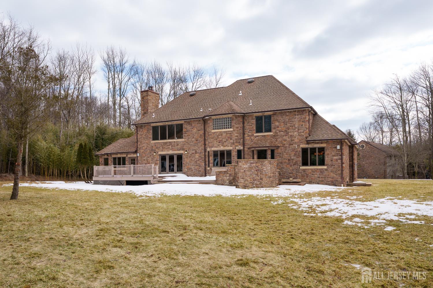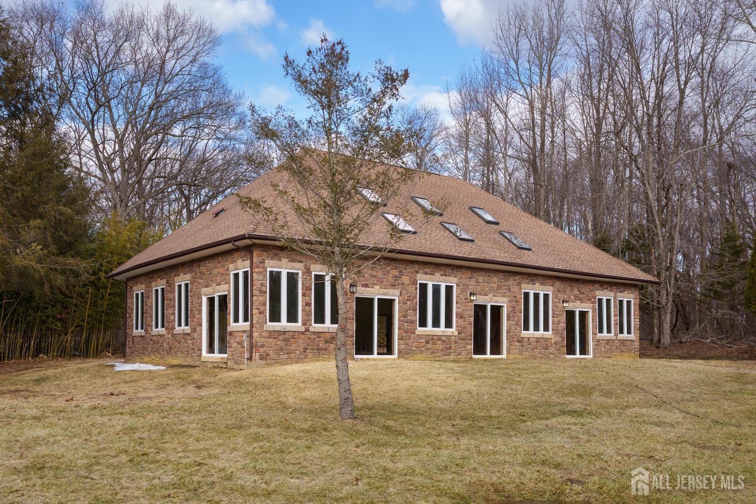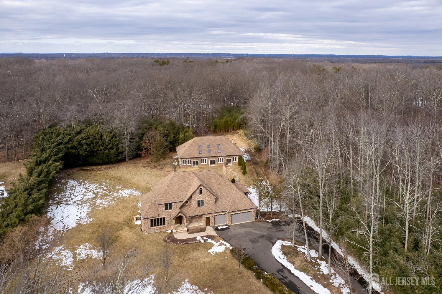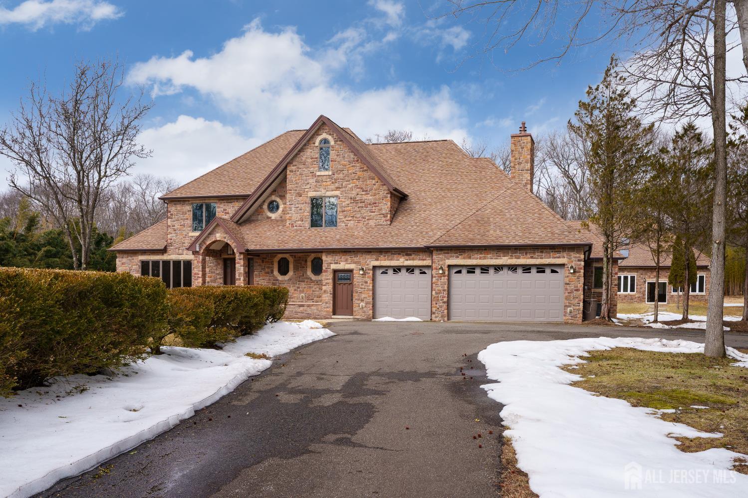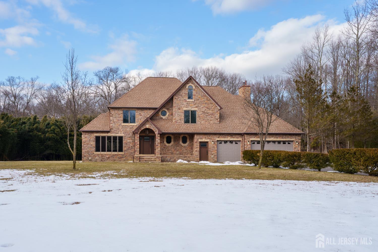 If incredible craftsmanship, amenities beyond compare and versatile space for hobbies or work are non-negotiable, this gated 2.77-acre private estate, complete with an indoor pool and separate multi-car garage, leaves nothing to want! The main house features a stone exterior, setting the stage for extraordinary finishes within. Hardwood flooring spans the living and dining rooms, both infused with sunlight. The custom cherry-wood kitchen comes equipped with chef-level appliances by Sub-Zero, Wolf, Miele and Gaggeneau, including an integrated air fryer and steamer. Oversized porcelain flooring extends into the adjoining family room and serves as a bright contrast to more warm cherry walls, as well as a wood-burning fireplace. The main floor also has a tiled sunroom with a spa alcove and access to the deck. Three and a half bathrooms are each distinctly tiled and the primary bath also has a sauna and big tub that fills from above via a ceiling spout. A study leads to a freshly carpeted loft, while the basement offers a trio of finished spaces. Follow the stone path to a magnificent pool house with soaring skylights above a spectacular indoor gunite pool with spa, full bath and kitchenette, encouraging you to stay fit and have fun all year round! In addition to the attached three-car garage, a third stone-clad building on the property accommodates up to 6 vehicles with ease. Car enthusiasts might add a lift for even more functionality, while boat or RV owners can finally store their prized toys with space to spare. Above, a sprawling loft is partially finished, presenting the possibility of even more future living space. Treat yourself to a tour of this one-of-a-kind property to fully appreciate the vast amount of space and unheard-of versatility. CJMLS 2611957R