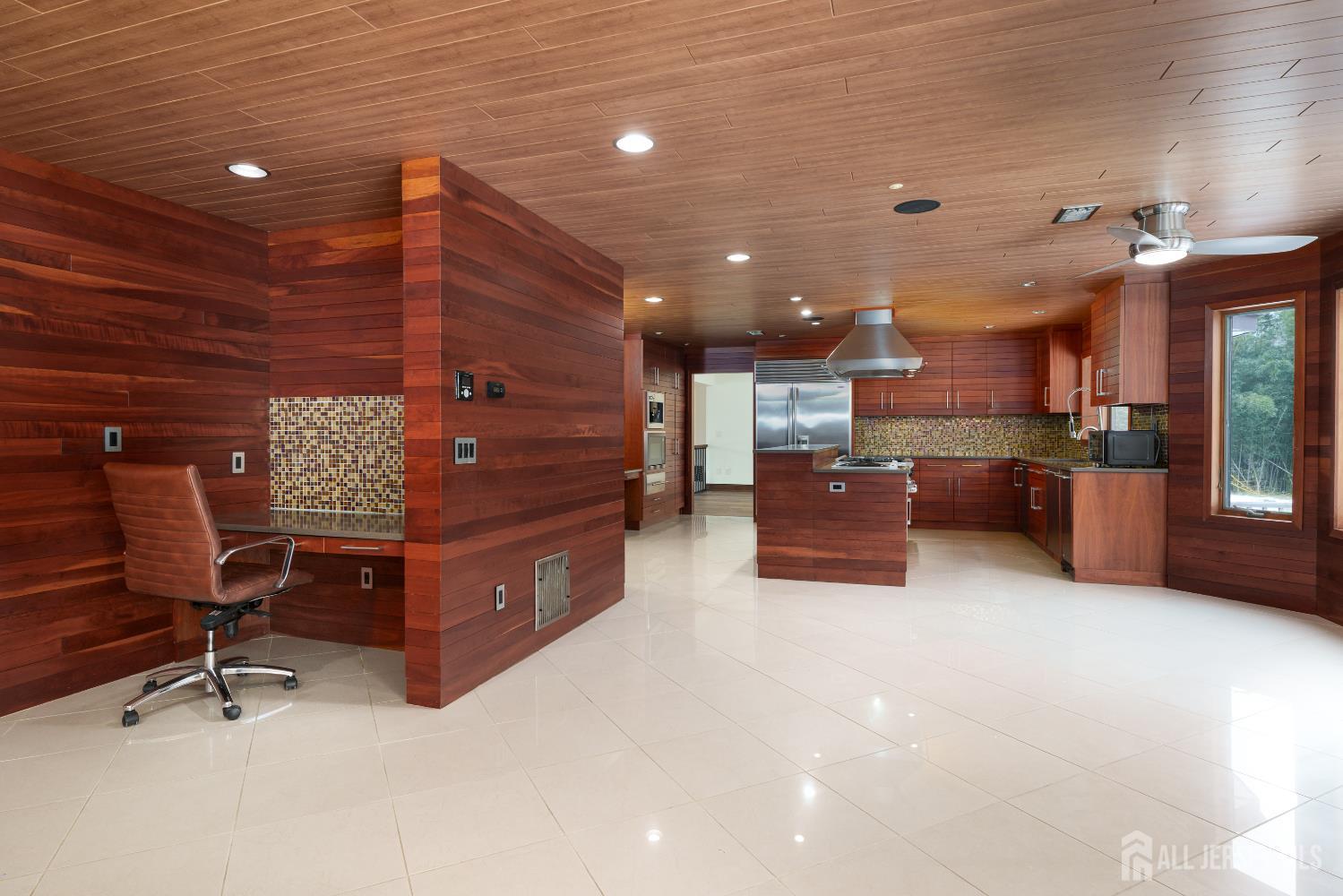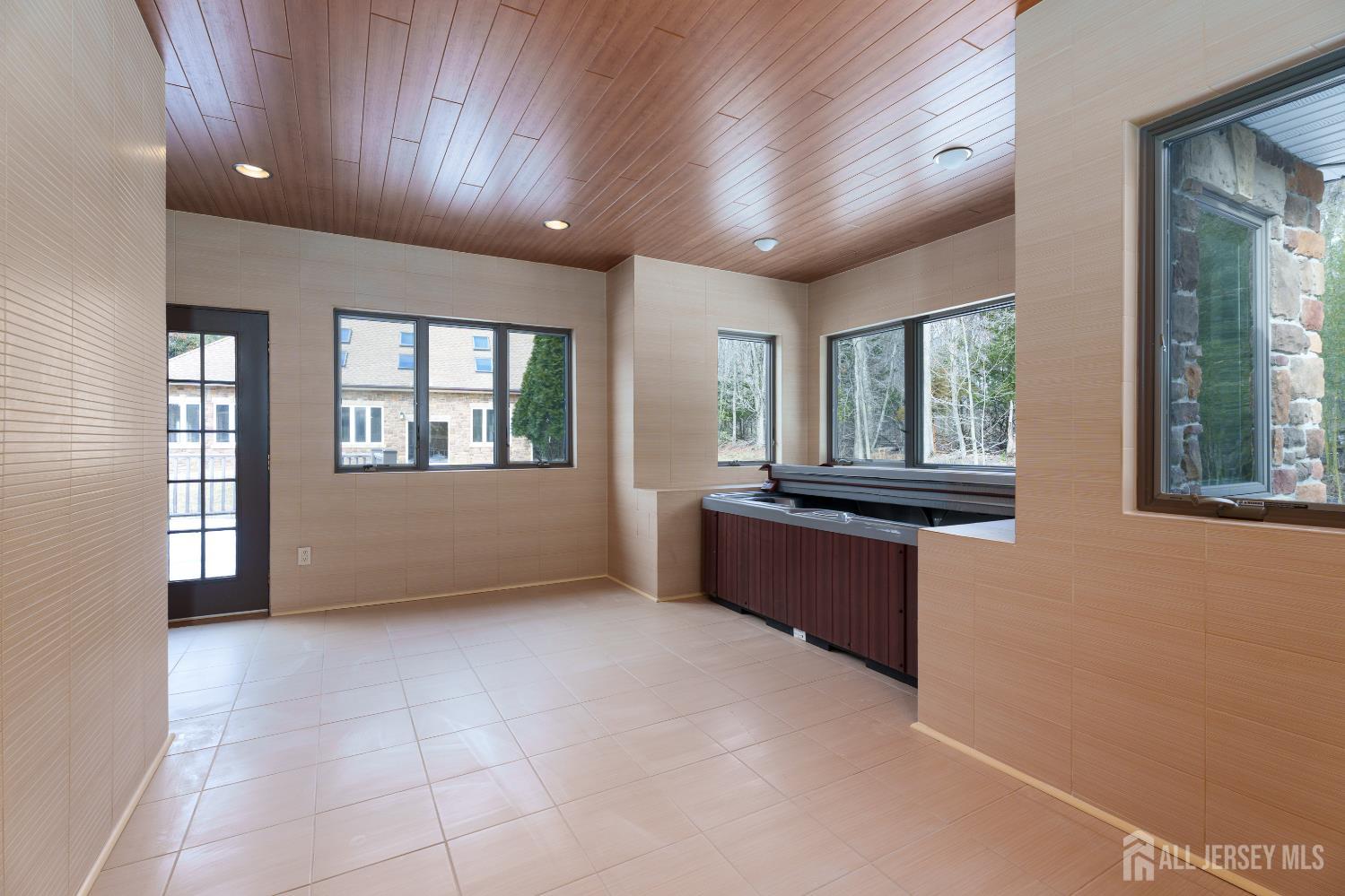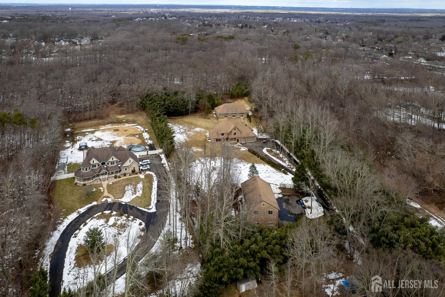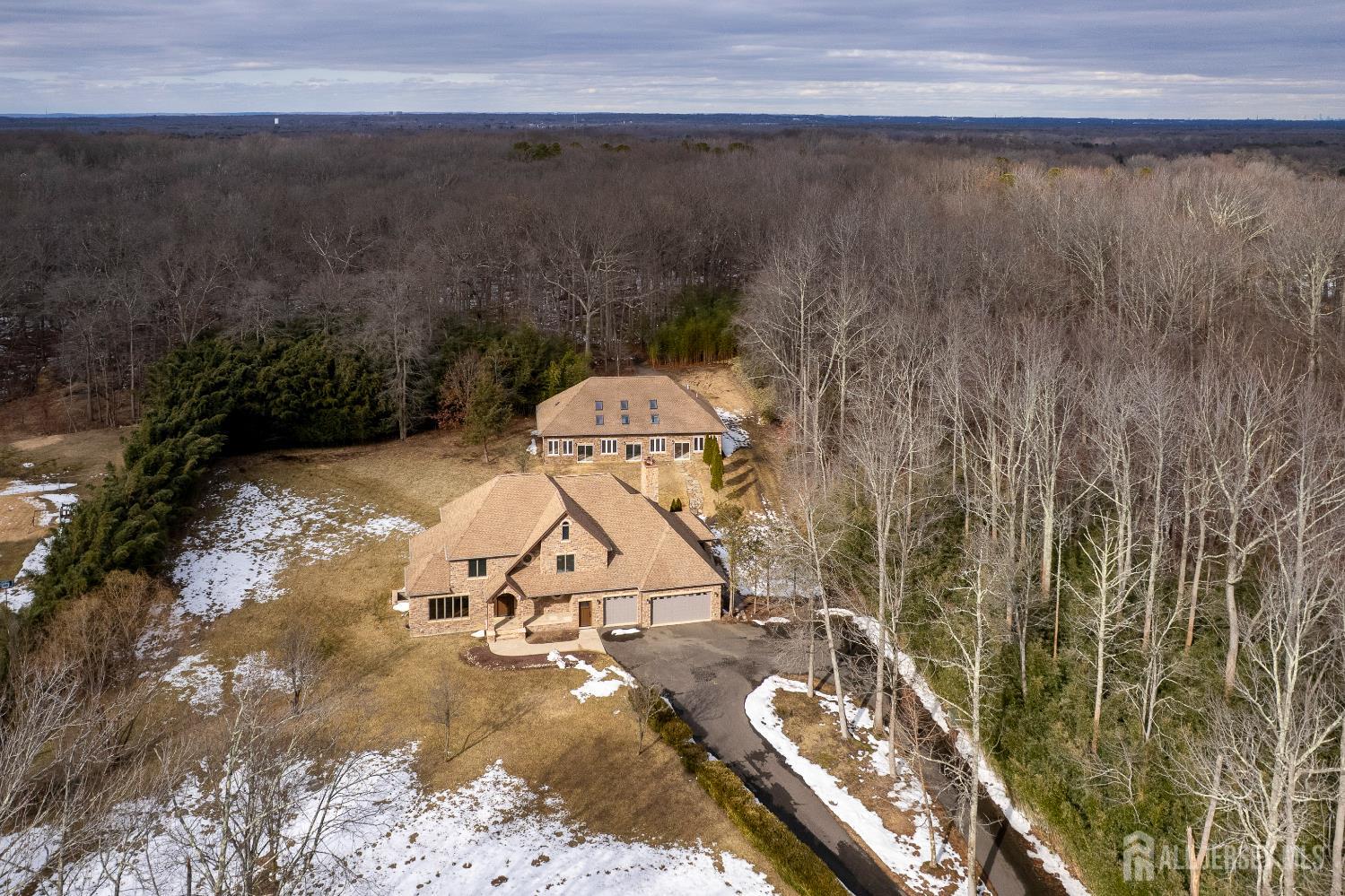 If incredible craftsmanship, amenities beyond compare and versatile space for hobbies or work are non-negotiable, this gated 2.77-acre private estate, complete with an indoor pool and separate multi-car garage, leaves nothing to want! The main house features a stone exterior, setting the stage for extraordinary finishes within. Hardwood flooring spans the living and dining rooms, both infused with sunlight. The custom cherry-wood kitchen comes equipped with chef-level appliances by Sub-Zero, Wolf, Miele and Gaggeneau, including an integrated air fryer and steamer. Oversized porcelain flooring extends into the adjoining family room and serves as a bright contrast to more warm cherry walls, as well as a wood-burning fireplace. The main floor also has a tiled sunroom with a spa alcove and access to the deck. Three and a half bathrooms are each distinctly tiled and the primary bath also has a sauna and big tub that fills from above via a ceiling spout. A study leads to a freshly carpeted loft, while the basement offers a trio of finished spaces. Follow the stone path to a magnificent pool house with soaring skylights above a spectacular indoor gunite pool with spa, full bath and kitchenette, encouraging you to stay fit and have fun all year round! In addition to the attached three-car garage, a third stone-clad building on the property accommodates up to 6 vehicles with ease. Car enthusiasts might add a lift for even more functionality, while boat or RV owners can finally store their prized toys with space to spare. Above, a sprawling loft is partially finished, presenting the possibility of even more future living space. Treat yourself to a tour of this one-of-a-kind property to fully appreciate the vast amount of space and unheard-of versatility. CJMLS 2611957R