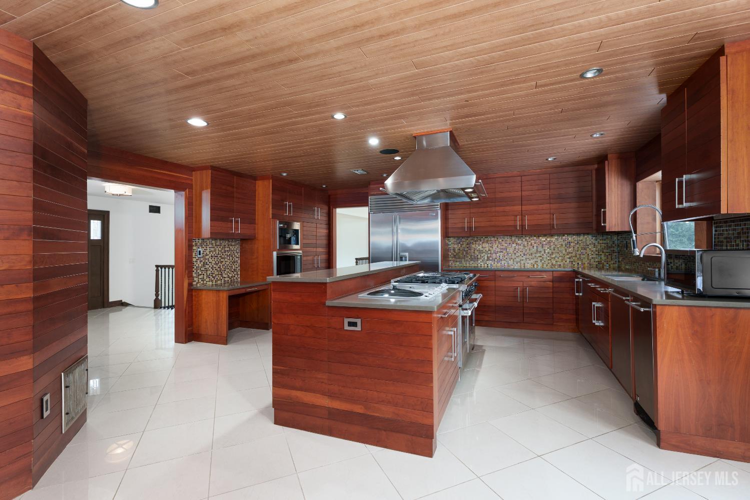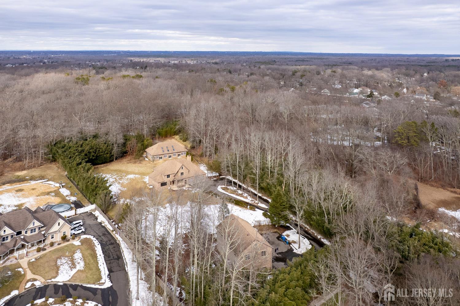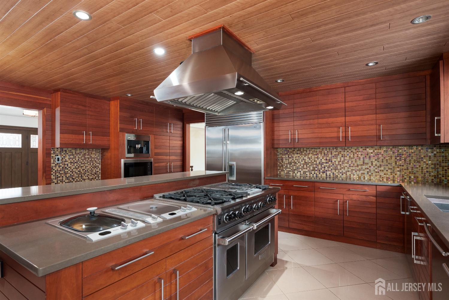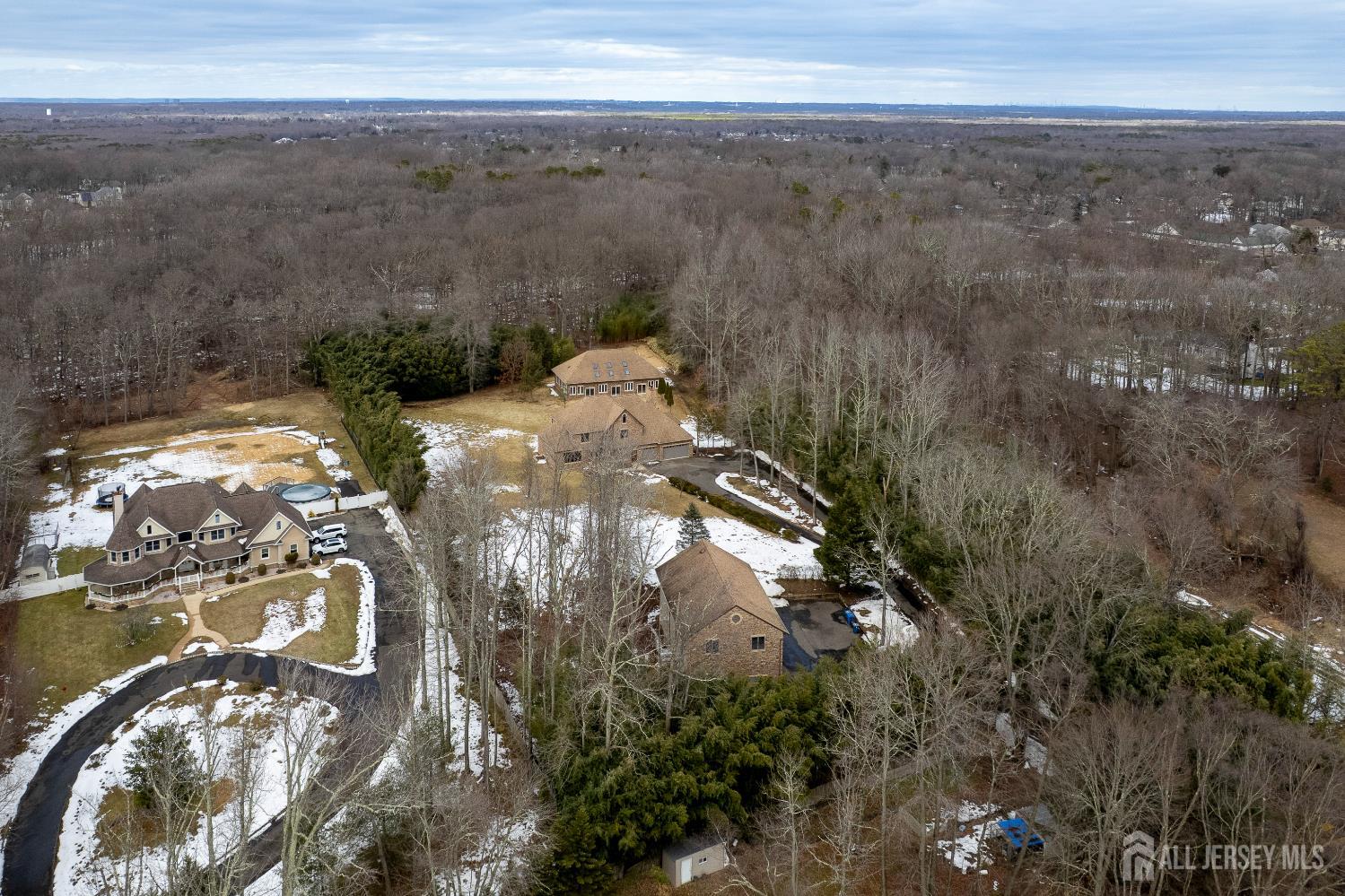 If incredible craftsmanship, amenities beyond compare and versatile space for hobbies or work are non-negotiable, this gated 2.77-acre private estate, complete with an indoor pool and separate multi-car garage, leaves nothing to want! The main house features a stone exterior, setting the stage for extraordinary finishes within. Hardwood flooring spans the living and dining rooms, both infused with sunlight. The custom cherry-wood kitchen comes equipped with chef-level appliances by Sub-Zero, Wolf, Miele and Gaggeneau, including an integrated air fryer and steamer. Oversized porcelain flooring extends into the adjoining family room and serves as a bright contrast to more warm cherry walls, as well as a wood-burning fireplace. The main floor also has a tiled sunroom with a spa alcove and access to the deck. Three and a half bathrooms are each distinctly tiled and the primary bath also has a sauna and big tub that fills from above via a ceiling spout. A study leads to a freshly carpeted loft, while the basement offers a trio of finished spaces. Follow the stone path to a magnificent pool house with soaring skylights above a spectacular indoor gunite pool with spa, full bath and kitchenette, encouraging you to stay fit and have fun all year round! In addition to the attached three-car garage, a third stone-clad building on the property accommodates up to 6 vehicles with ease. Car enthusiasts might add a lift for even more functionality, while boat or RV owners can finally store their prized toys with space to spare. Above, a sprawling loft is partially finished, presenting the possibility of even more future living space. Treat yourself to a tour of this one-of-a-kind property to fully appreciate the vast amount of space and unheard-of versatility. CJMLS 2611957R
